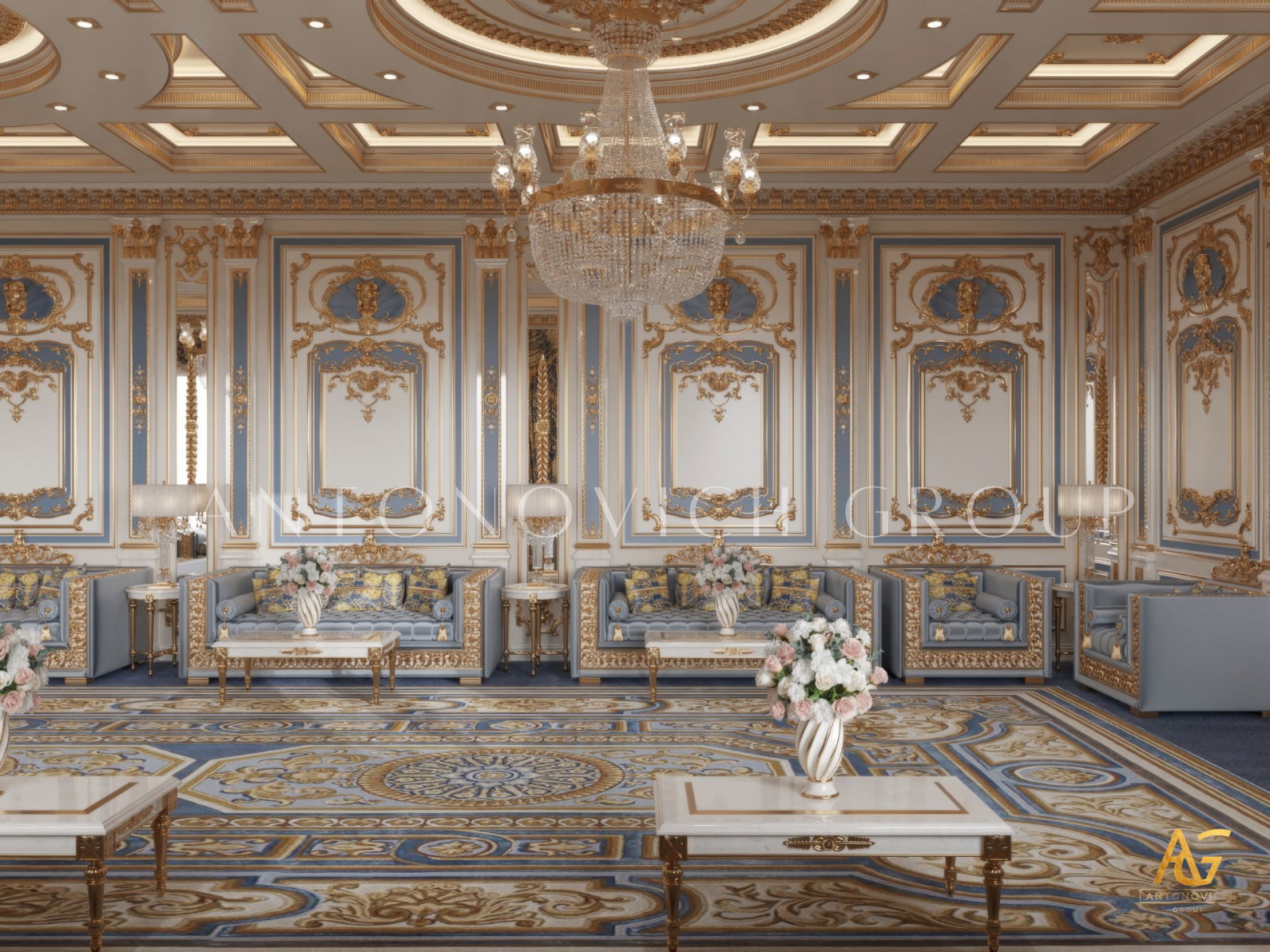 Антонович Дизайн (Antonovich Design) создаёт дворцовые гостевые пространства, где каждая деталь служит сценой для общения. В наших проектах дизайн маджлиса подчёркивает представительность и комфорт.