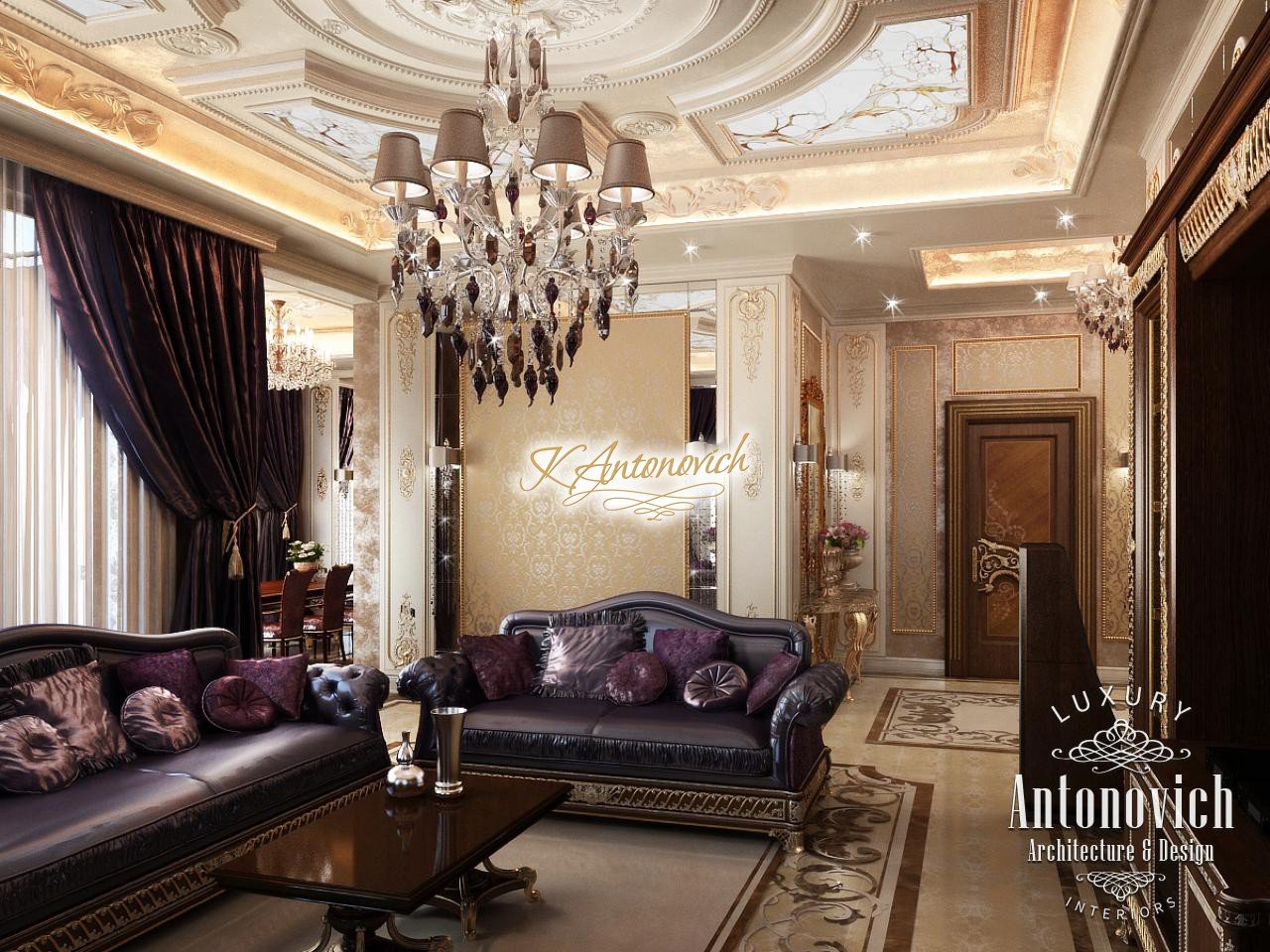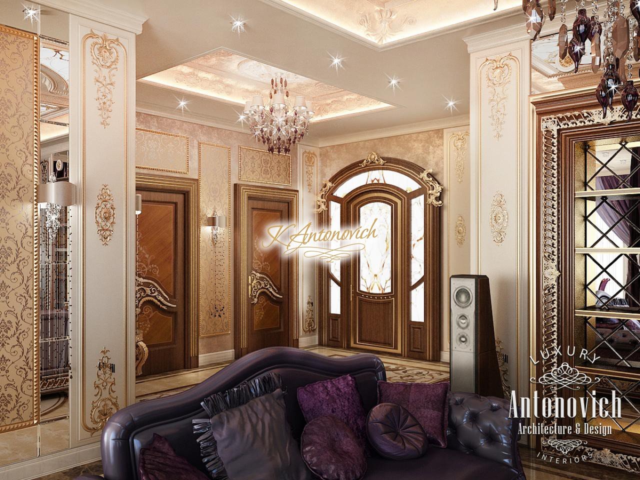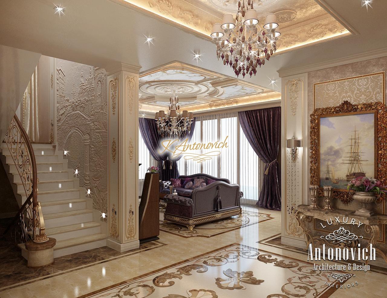 Дизайн пола в Дубае в авторских проектах элитной студии Антонович Дизайн (Antonovich Design) стал визитной карточкой студии. Используя возможности современных технологий обработки материалов, интерьерные дизайнеры в Дубае создают уникальные напольные покрытия из мрамора и ценных пород дерева — резной мрамор для пола и деревянные полы премиум-класса подчеркнут роскошь жилого пространства. Классический дизайн квартиры выглядит особенно роскошно благодаря превосходным резным мраморным полам в интерьере холла и гостиной — мрамор теплых оттенков в интерьере задаёт тёплое настроение, а орнамент на потолке и стенах и узоры повторяют мотивы пола. Резные узоры на поверхности мрамора позволили авторам проекта выполнить зонирование пространства резным узором, а узор на мраморном полу 2D эффект создаёт выразительную визуальную глубину. В результате интерьер холла и гостиной с мрамором приобретает безупречную красоту и эстетическое совершенство.