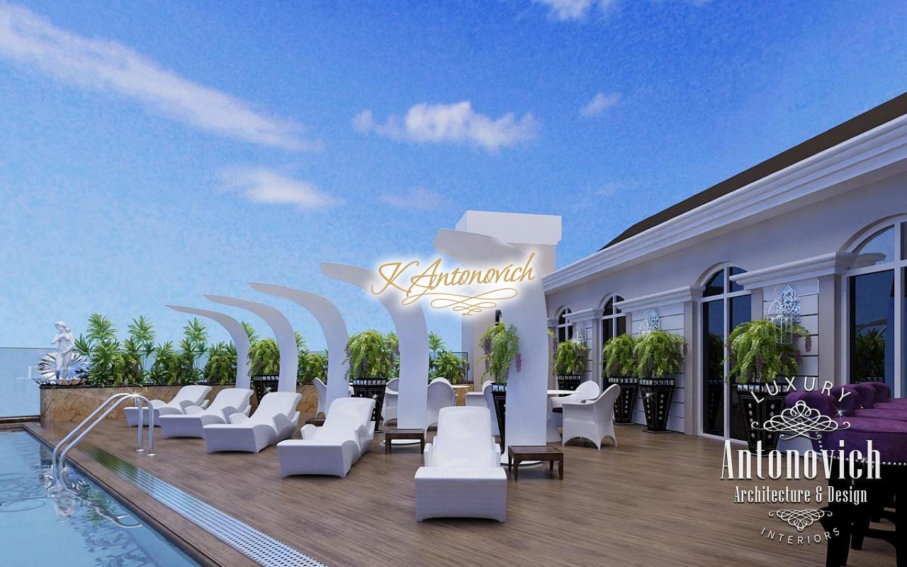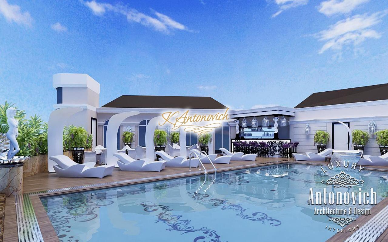 Дизайн и инженерия бассейна — столь же многогранные и глубокие области, как и любые другие направления дизайна. Это может быть дизайн бассейна в частном доме, дизайн бассейна для апартаментов, дизайн бассейна в отеле. Особое внимание уделено проектированию бассейнов в отеле с учётом комфорта гостей. Проект этого бассейна был разработан для одного из элитных жилых комплексов; это пример дизайн бассейна для жилого комплекса премиум‑класса. Роскошный дизайн интерьеров в Дубае отражает будущее комфорта и утончённой роскоши, интерьер бассейна в Дубае демонстрирует высокий уровень исполнения. В бассейне предусмотрено пространство для отдыха и релаксации владельцев люксовых апартаментов и их гостей. Довольно большая чаша бассейна украшена изящными мозаичными орнаментами; мозаичный декор бассейна подчёркивает его художественный характер. Дизайнеры интерьеров тщательно организовали пространство: множество удобных шезлонгов, изысканный бар и обильное озеленение — зона отдыха у бассейна дизайн продумана до мелочей, а бар у бассейна дизайн гармонично вписан в общую концепцию; роскошный дизайн бассейна создаёт атмосферу уюта и эксклюзива. озеленение у бассейна дизайн интегрировано в композицию, и панорамный вид из бассейна усиливает ощущение простора.