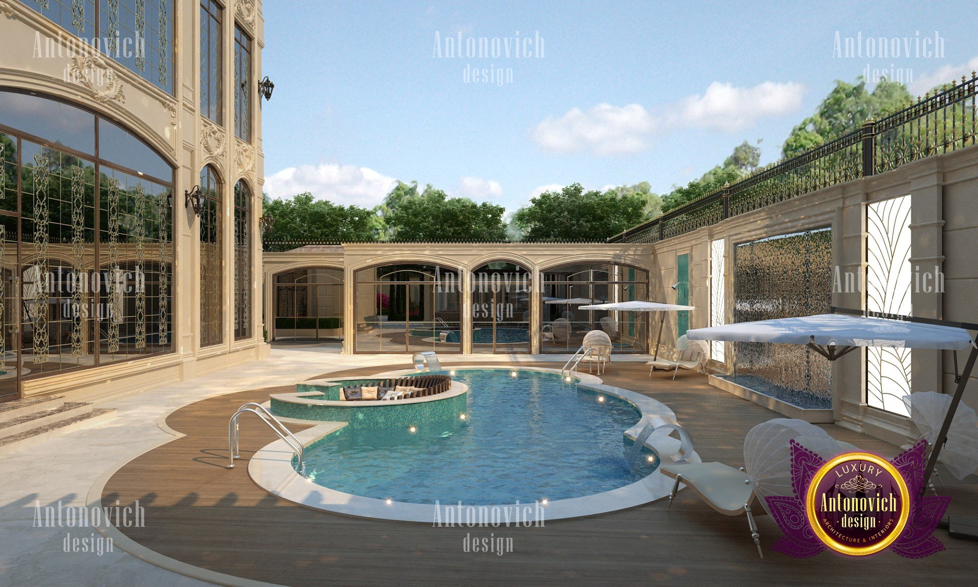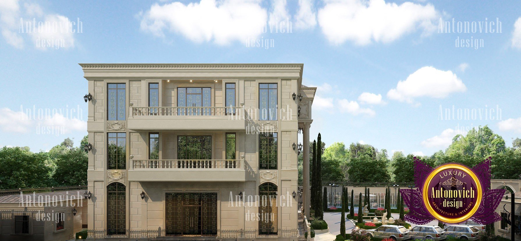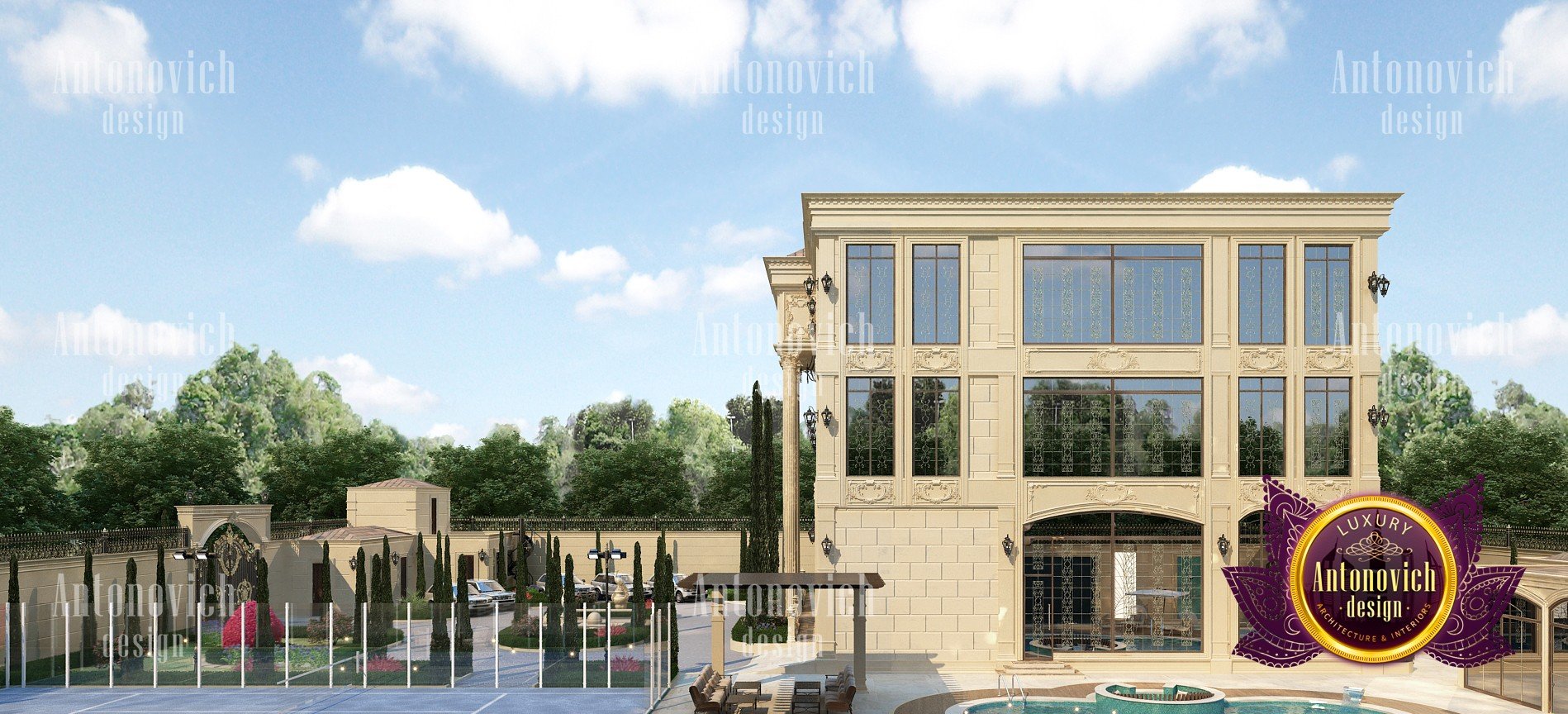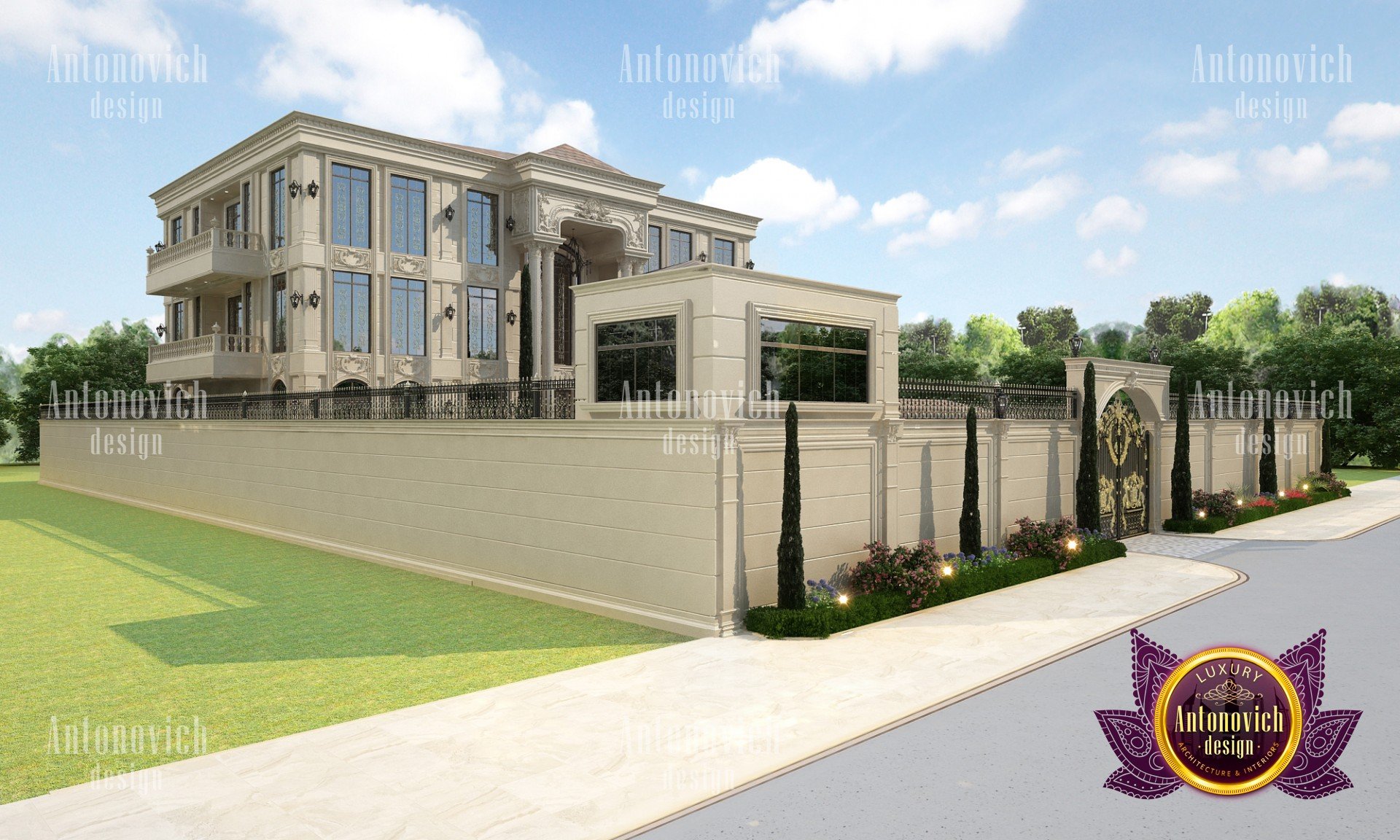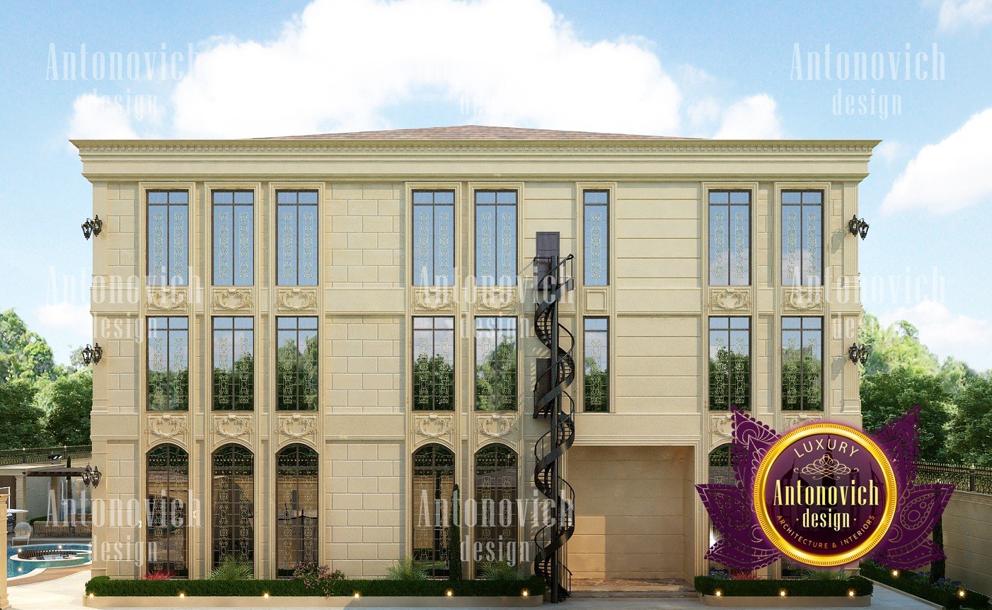 Экстерьер виллы придаёт зданию эстетически совершенный и выразительный облик. Дизайнеры интерьеров из Дубая студии Антонович Дизайн (Antonovich Design) гармонично сочетают силуэт здания, его общую форму, текстуру стен, архитектурные элементы и цветовую палитру. Каждый элемент и каждая деталь наружного оформления несут смысл и материальную эстетику. В первую очередь дизайн экстерьера виллы подчёркивает респектабельность владельцев и их безупречный вкус. При этом ландшафтный дизайн и экстерьер планируются совместно, чтобы создать цельную композицию. Профессиональная отделка создаёт фасад виллы в роскошном стиле, подчёркивающий статус и характер дома. В основе образа лежат трехмерные пространственные формы фасада и точные грани, которые позволяют ясно определить форму и плавную линию, по которой взгляд скользит, формируя архитектурный облик виллы. Многоскатная крыша светлых тонов придаёт зданию лёгкость, а высокие окна и светлые стены визуально удлиняют объём, усиливая визуальная легкость архитектурного образа. Тщательно продуманное оформление фасада частного дома создаёт элегантный фасад частного дома, отражающий современные тренды и остающийся классикой. Подходы к экстерьер частного дома, в том числе дизайн вилл в Дубае, позволяют создавать образы, которые будут радовать не одно поколение семьи. Архитекторы и дизайнеры экстерьера вкладывают в проект правильное эмоциональное воздействие и выверенную пластику формы.
