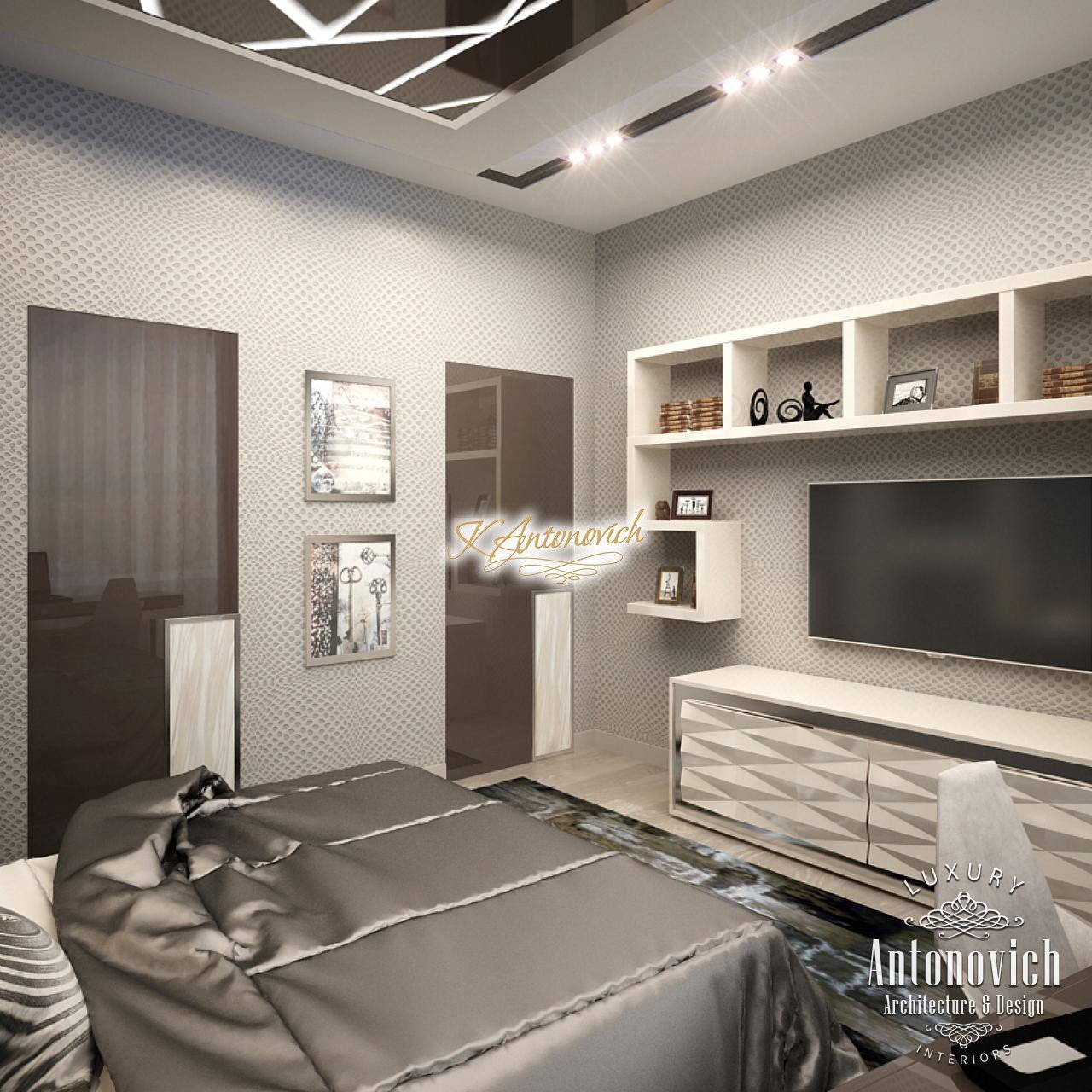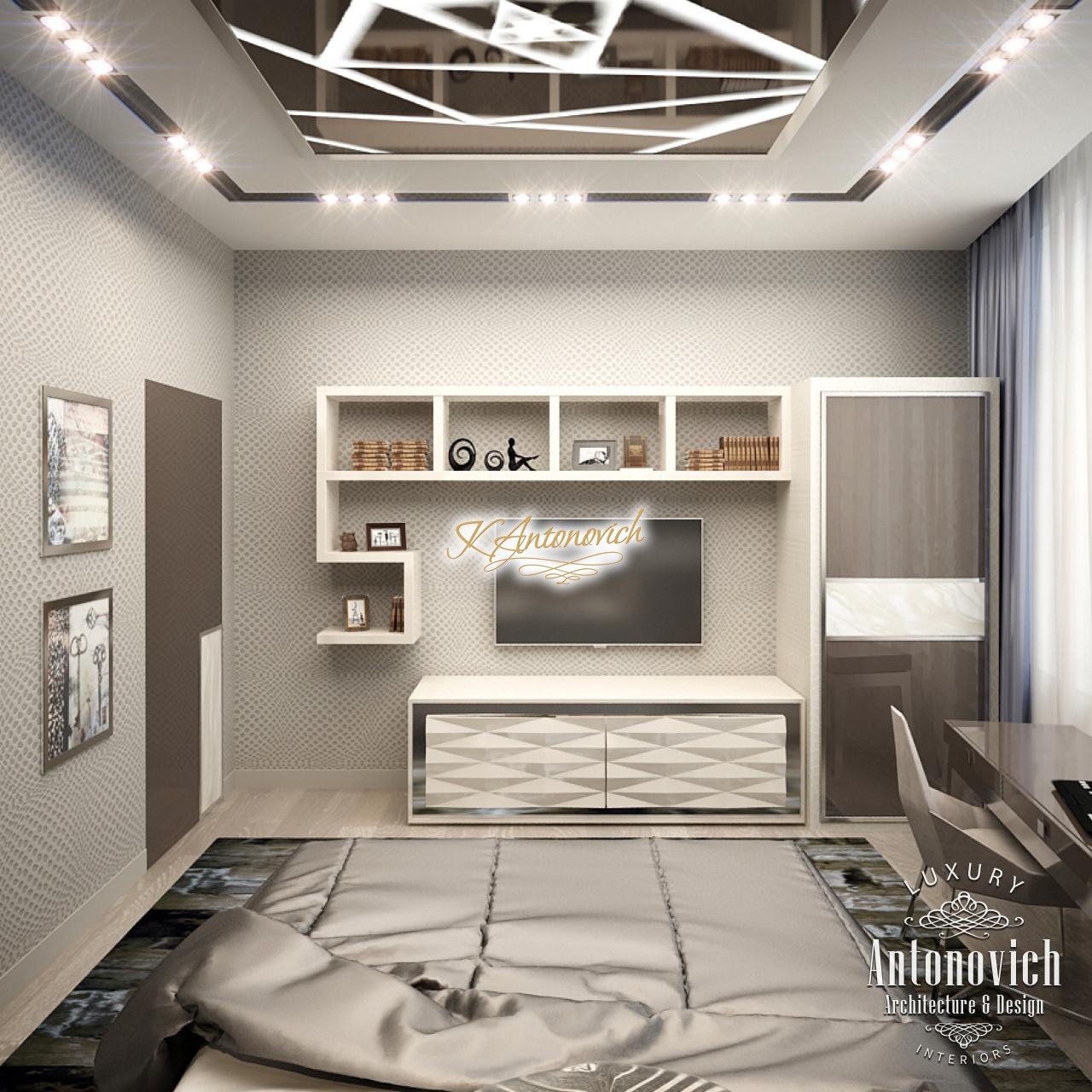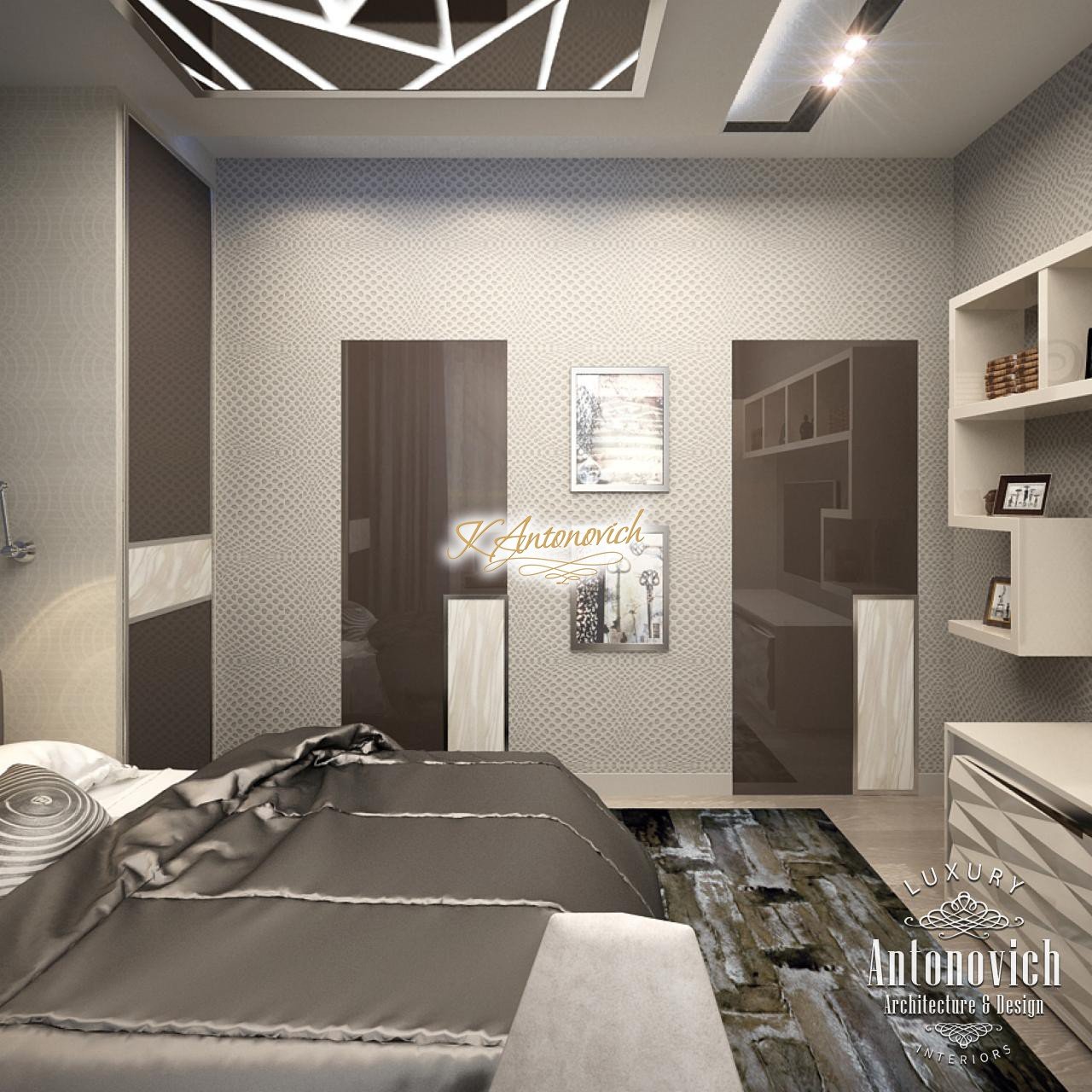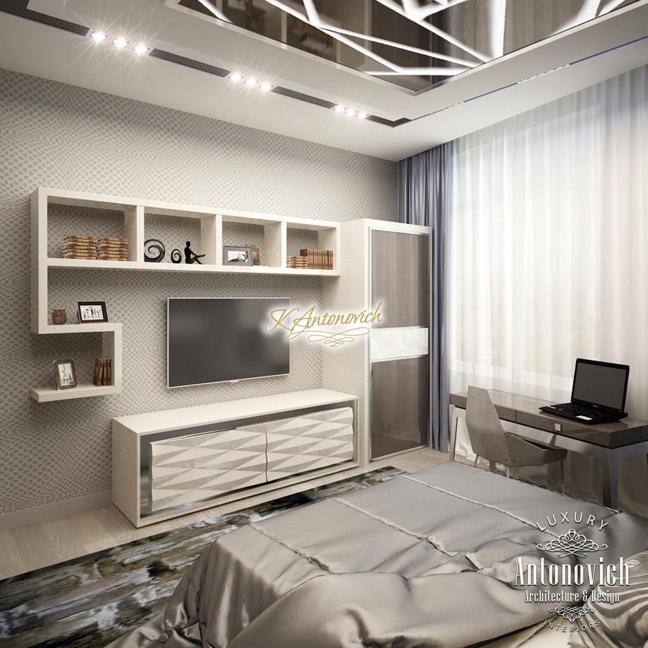 Современный стиль с ноткой хай-тек идеально подошёл для реализации этого проекта: спальня для подростка. Комната создана для старшего сына владельцев квартиры. Если весь интерьер квартиры выполнен в роскошной и изящной манере ар-деко, то в спальне для подростка в современном стиле дизайнеры предложили полностью отойти от общей концепции и учесть мечты и желания владельца комнаты. Интерьер получился выразительным и динамичным — динамичный интерьер подростковой спальни задаётся оригинальным дизайном потолка. В проекте показана спальня в стиле хай-тек для подростка. Потолок с оригинальным дизайном спальни представляет собой глянцевую панель с абстрактным рисунком, окружённую дополнительной подсветкой. Очертания декоративного элемента визуально повторяют периметр зоны сна. Удобная кровать в оттенке шёлкового стального цвета выглядит стильно на фоне художественной росписи со стилизованным изображением корабля через звёздную карту. В интерьере доминирует приятная гамма холодных тонов. Чтобы смягчить ощущение прохлады и добавить тепла, для отделки выбран натуральный деревянный пол в спальне подростка и большой пушистый ковёр, что формирует уютная спальня для подростка с ковром. Эти утончённые детали авторского проекта подчёркивают респектабельность квартиры, сохраняя стилистическую направленность. В проекте — дизайн спальни для подростка сочетает отличную функциональность и эргономику: функциональная мебель для спальни подростка в кремовых оттенках с глянцевыми и объёмными фасадами дополняет интерьер яркими акцентами. Яркие цвета в отделке стен обеспечивают визуальное расширение пространства в спальне, создавая ощущение лёгкости и простора. В проекте отражён также интерьер спальни для мальчика подростка — сбалансированный, комфортный и современный.