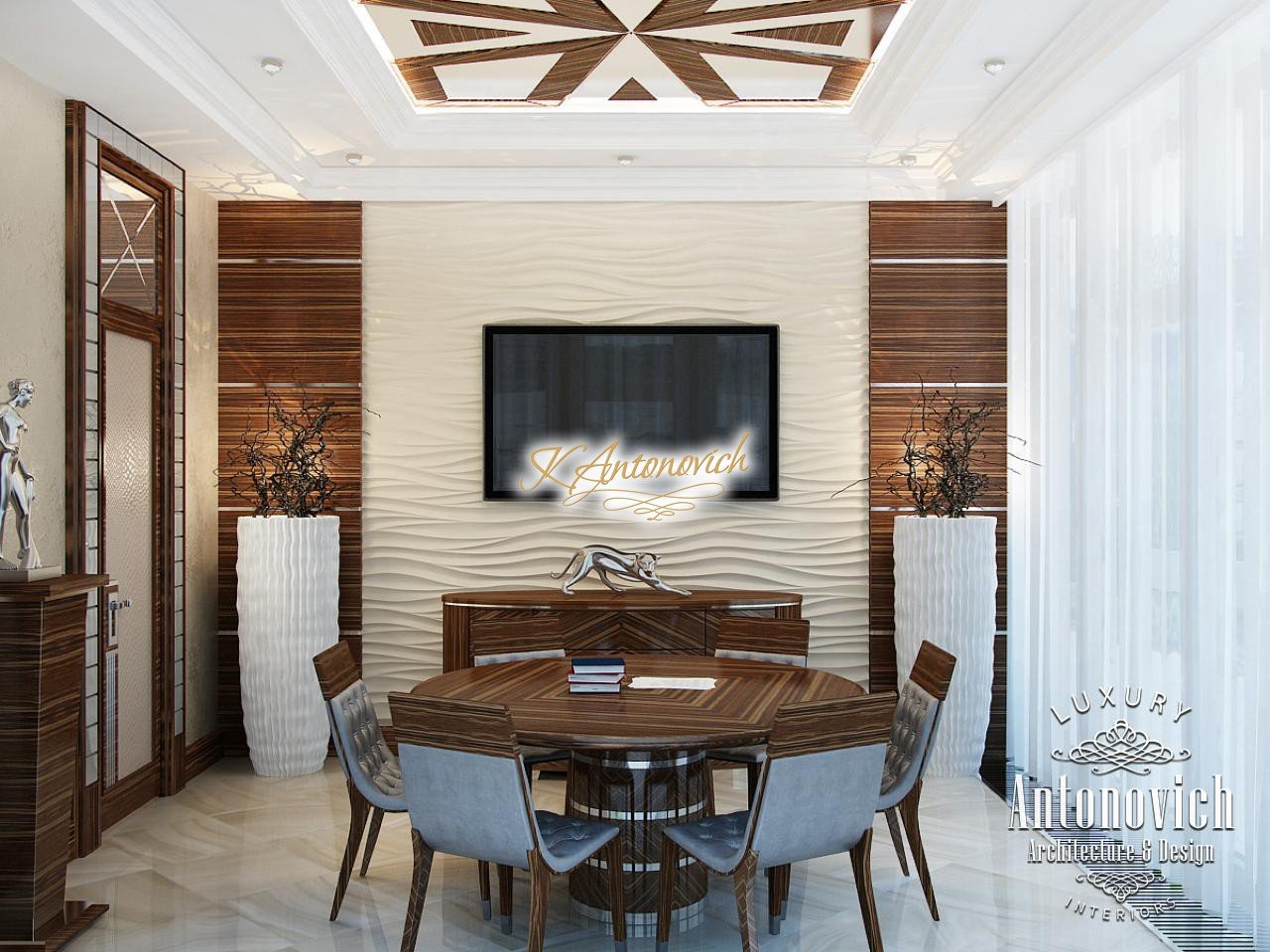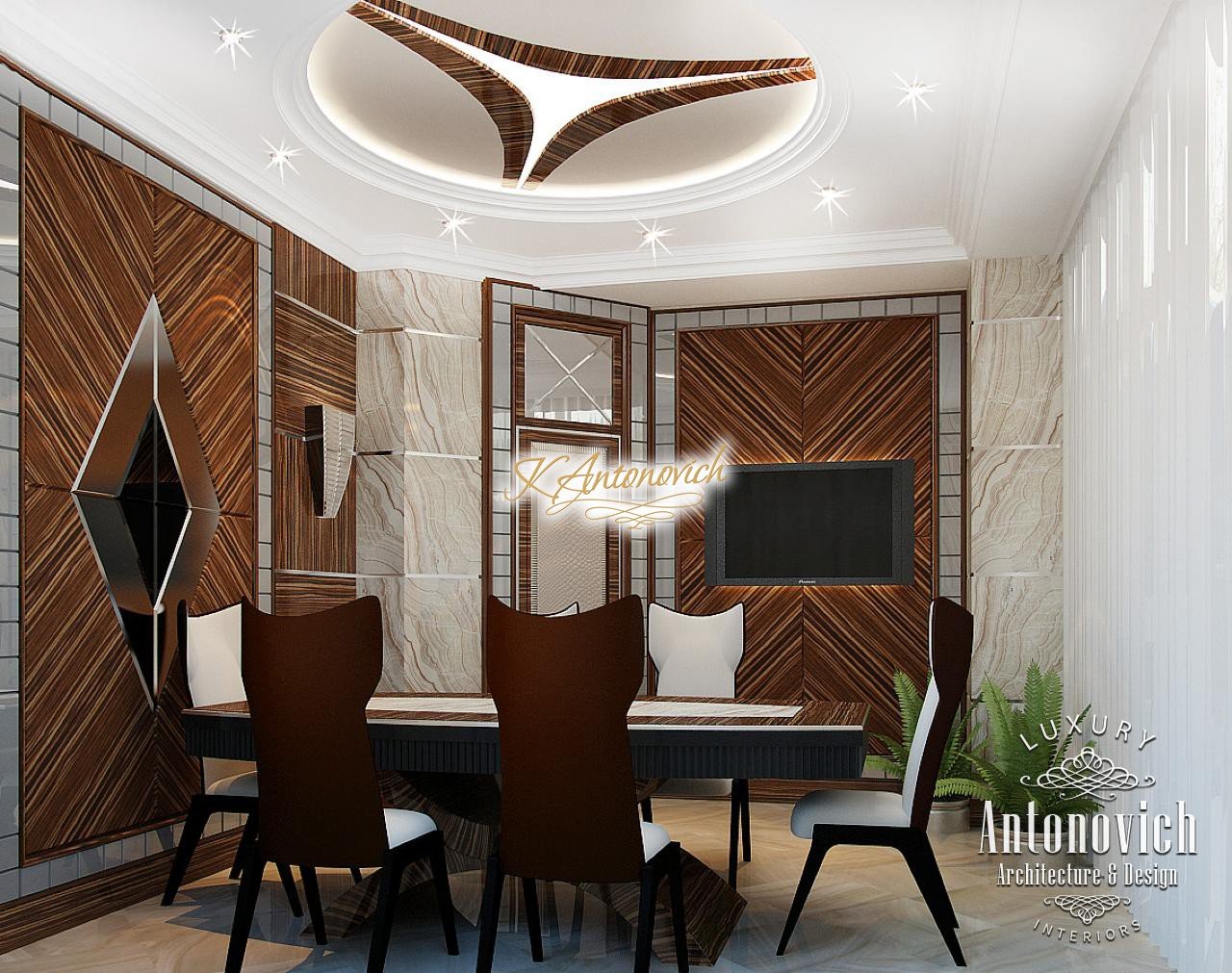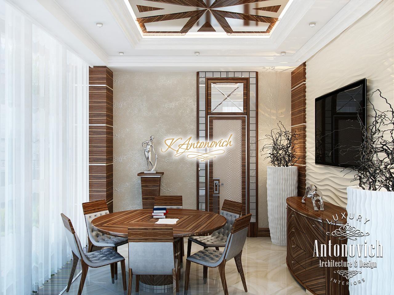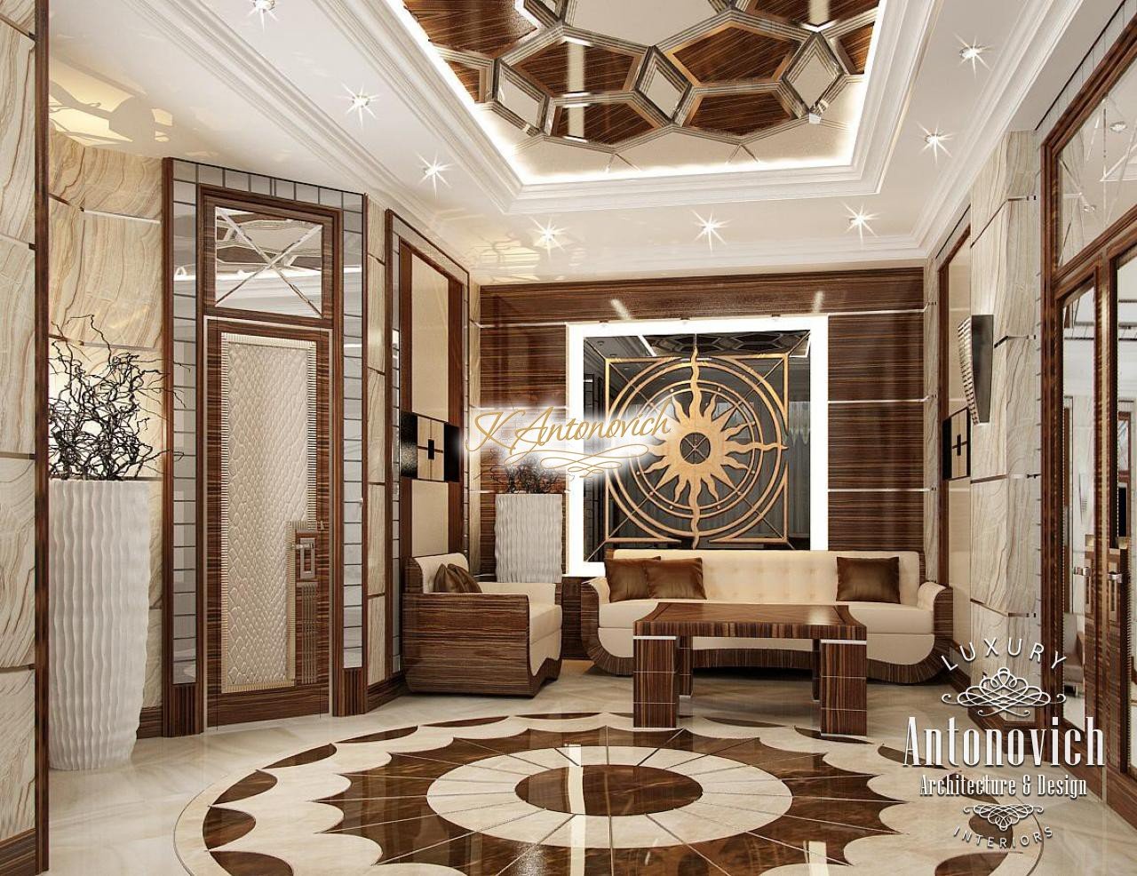 Для офиса крупной строительной компании в Дубае дизайнеры элитной студии «Антонович Дизайн (Antonovich Design)» предложили современный стиль. Этот дизайн офиса в Дубае подчёркивает успех компании, её статус и стремление предлагать клиентам лучшее, что есть сегодня. Мы реализовали современный дизайн офиса для строительной компании, который точно выражает назначение помещений. Наш дизайн общественных пространств Дубая от нашей студии идеально отражает миссию помещений: всё продумано для эффективной работы и комфортной, уютной атмосферы. Представленный интерьер офиса премиум класса отличается динамикой и подчёркивает рост успешной дубайской строительной компании. Образ интерьера остаётся элегантным с оттенком респектабельности. При входе вас встречает изысканный ресепшн — оформление ресепшн с лаконичной отделкой, декорированный лакированной древесиной ценных пород. В авторском офисном проекте дизайнеры активно использовали интерьер с деревянной облицовкой стен, что подчёркивает статус и создаёт тёплую атмосферу; пол из светлого натурального мрамора и геометрический узор из темного камня повторяют мотивы декора потолка. Интерьер полон гармонии и элегантности: элитная студия предлагает уникальные решения, придающие интерьеру эксклюзивность. Лаконичную образность дополняют зеркальные панели для визуального расширения пространства. В декоре потолка дизайнеры применили современные методы освещения — подсветка потолка светодиодными светильниками и потолочные светильники.