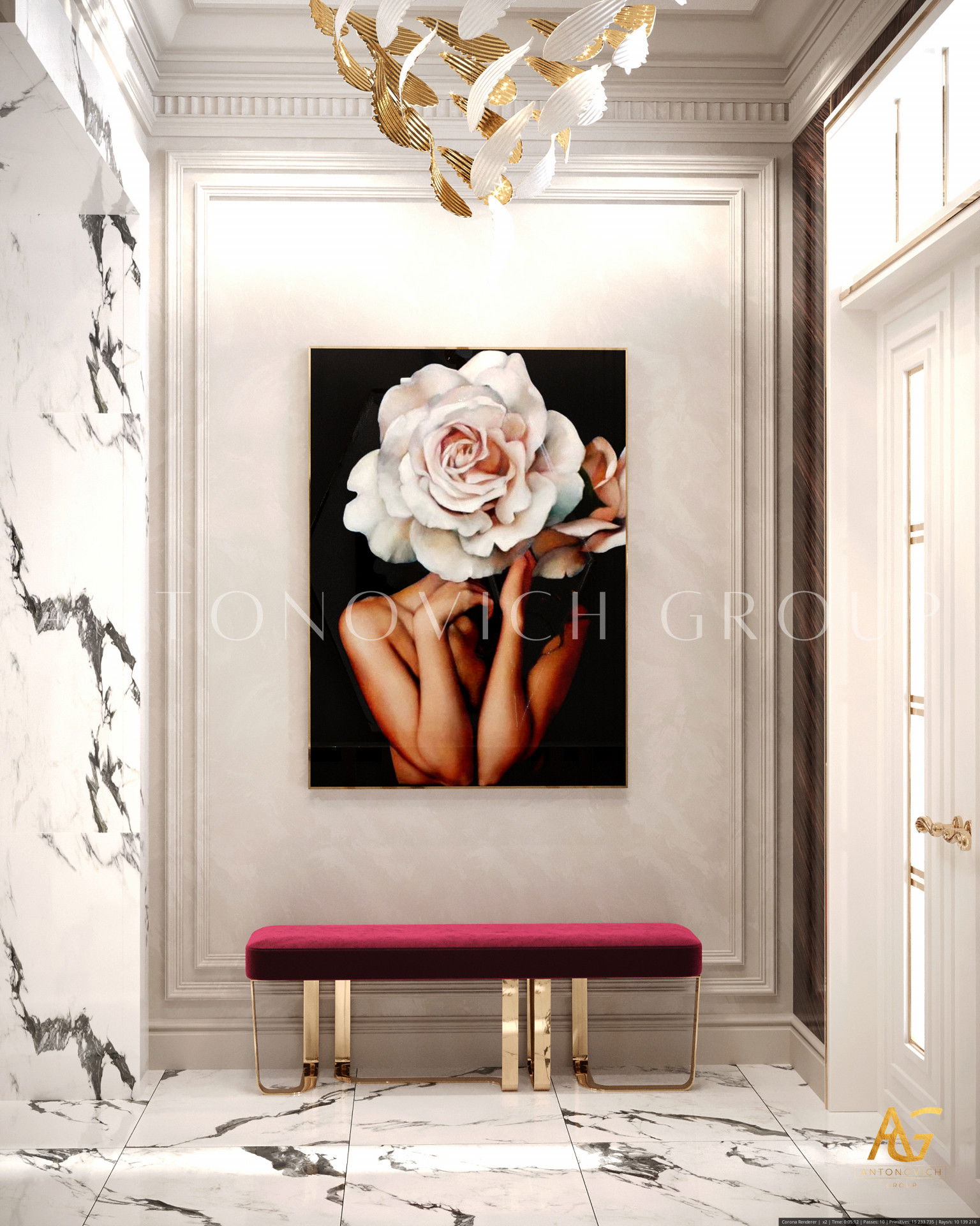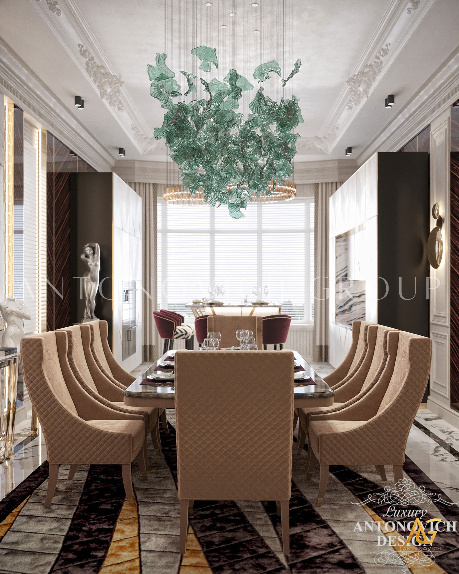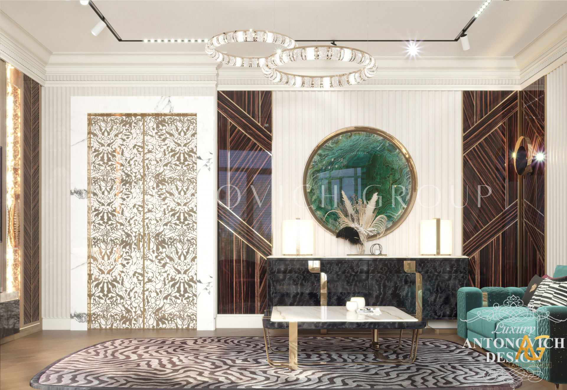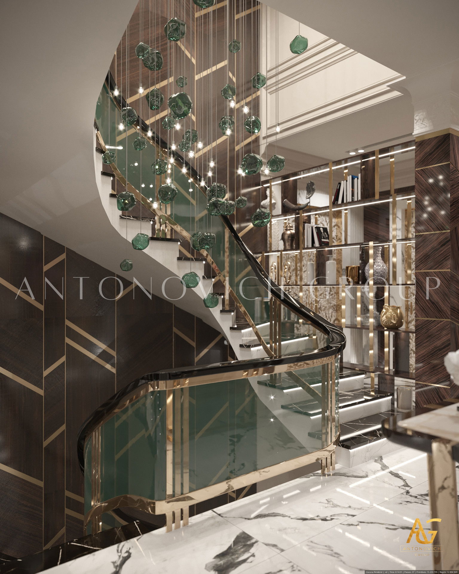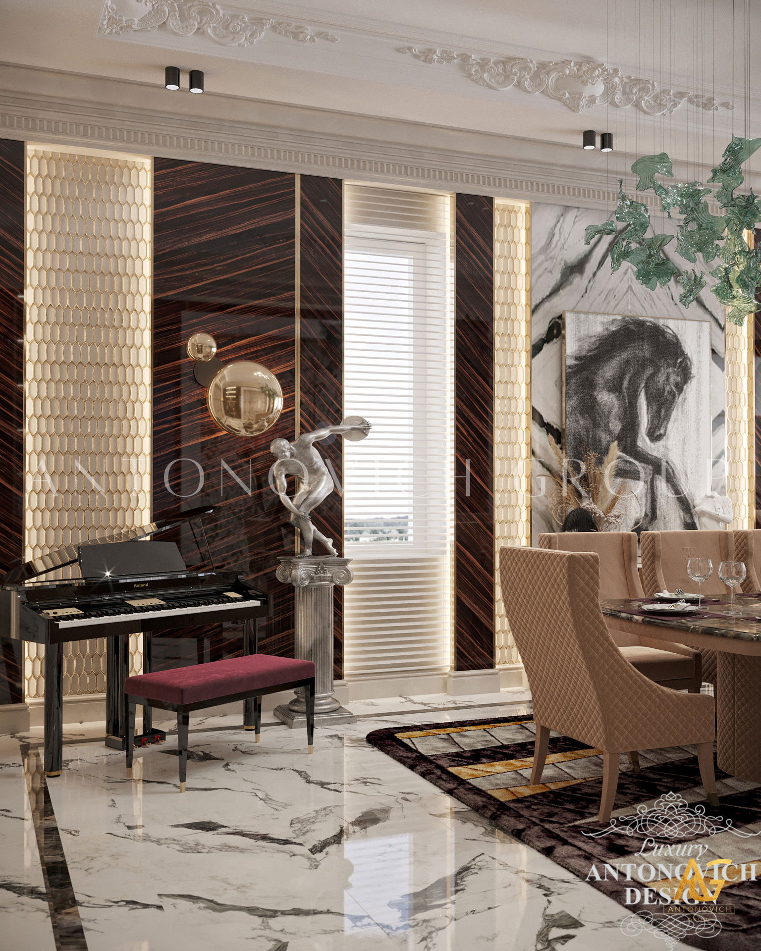 Комнаты подчеркивают тропические мотивы и мягкую палитру, создавая дружелюбную атмосферу: от зелёных растений с яркими акцентами до лаконичных деталей с выразительными узорами. Это пример тропического интерьера виллы. Антонович Дизайн (Antonovich Design) выбрал сочетание коричневого с тропическими акцентами, чтобы сохранить современность и теплоту. С этими тропическими деталями, придающими помещению ощущение уюта, Антонович Дизайн преобразовал дизайн интерьера виллы в выразительные композиции. Для создания приятной внешности и атмосферы команда тщательно отбирала мебель и декоративные материалы для интерьера.