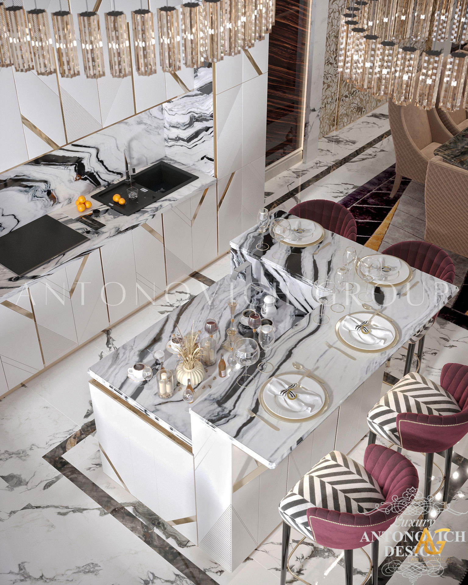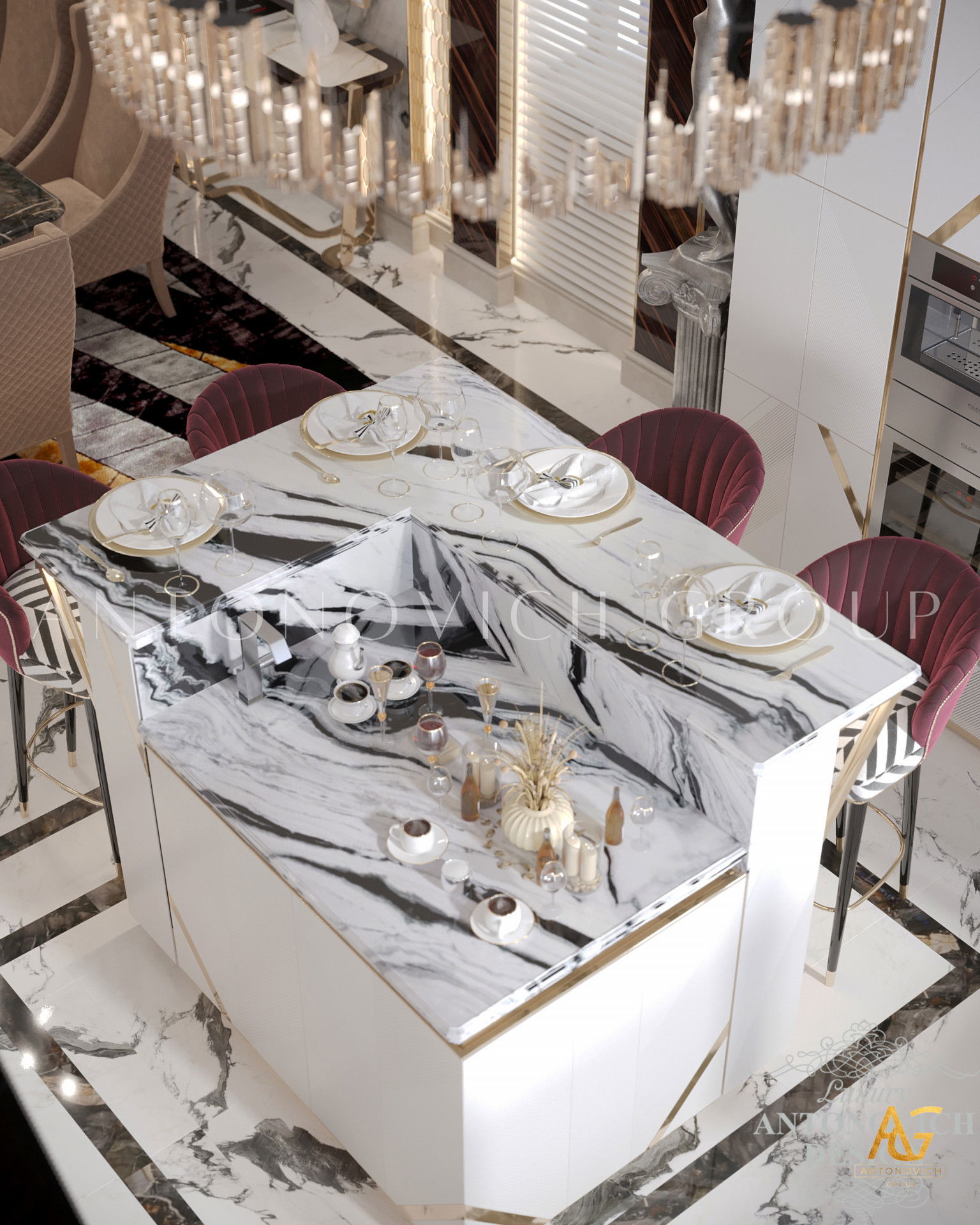 Согласованность оформления также необходима для достижения элегантности и современности. Основные зоны дома — гостиные, зоны отдыха, кухня и столовые — получили продуманное оформление гостиной виллы и комплект мебели от известных производителей, которые объединяют весь интерьер. Гостиные разработаны и декорированы с идеальным уровнем уюта, обеспечивая комфорт и полноценный отдых. Проект демонстрирует роскошный дизайн интерьера и современный дизайн виллы, который легко превращается в интерьер виллы под ключ. В проекте особое внимание уделяется подбор мебели для виллы и декору с тропическими акцентами. Внимание к деталям обеспечивает гармония цвета и фактуры в интерьере, делая проект подходящим для клиентов, ищущих дизайн виллы в России и других регионах.