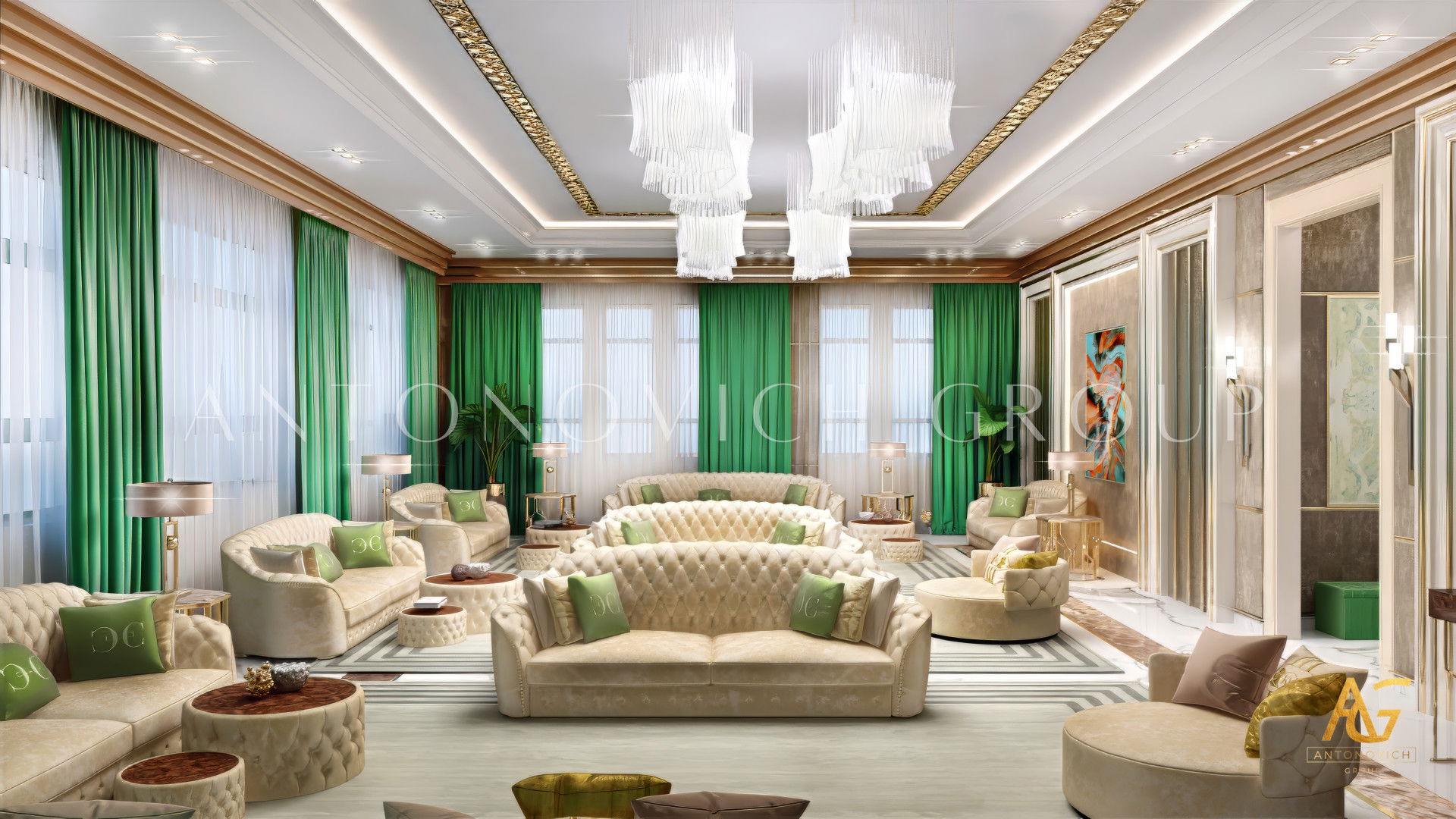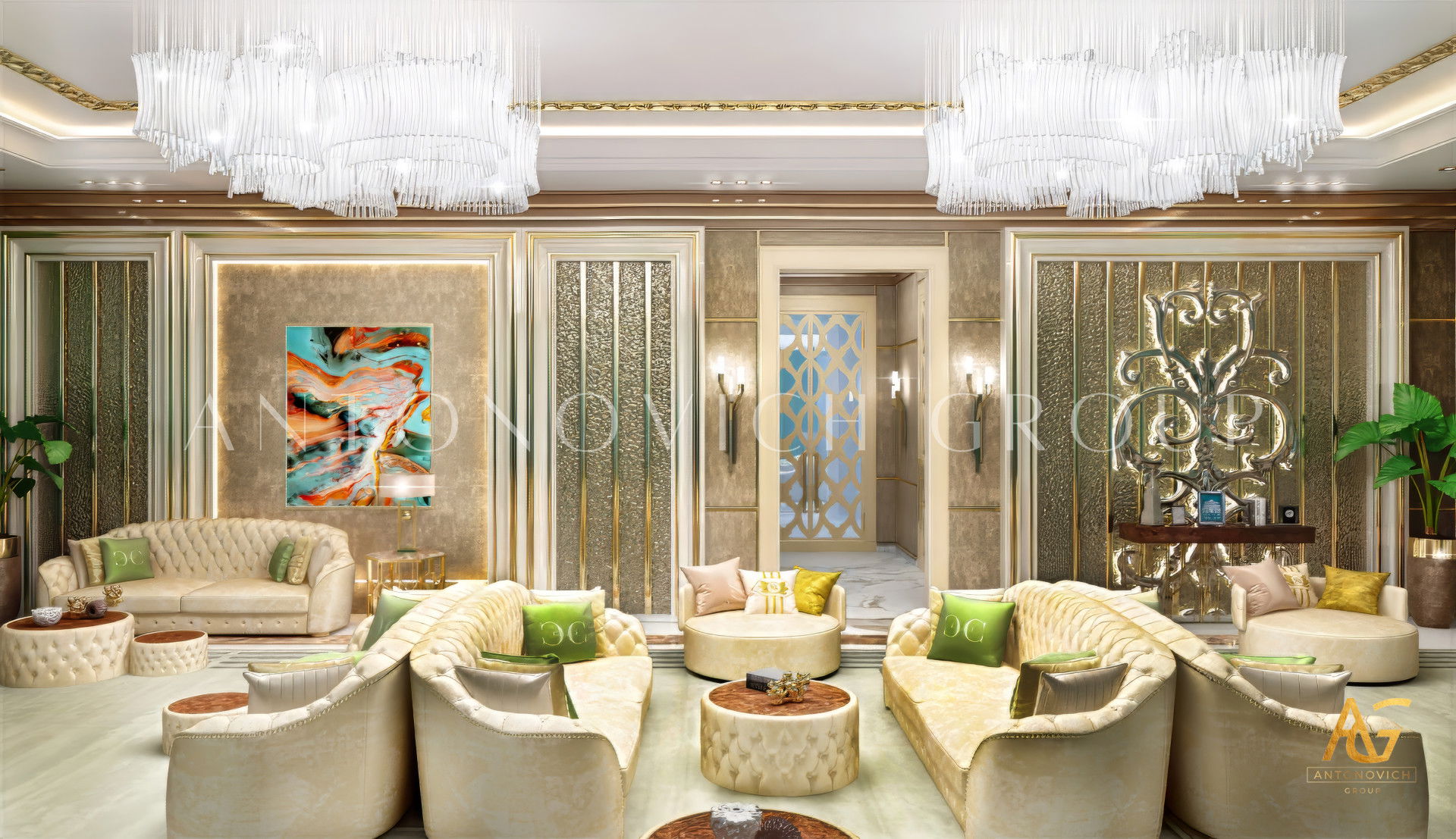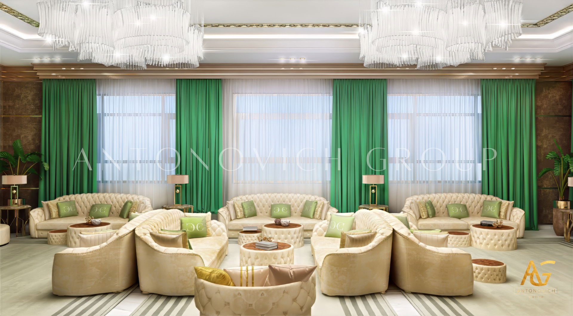 Выбор правильного классический интерьер мажлиса — ключевой этап. Друзья, семья и соседи составят мнение о вашем доме по первой встрече, и именно интерьер делает дом вашим личным пространством. В Саудовской Аравии спокойная и энергизирующая золотая отделка — естественное дополнение к классическому интерьеру мажлиса. Этот стиль был особенно популярен в 1940‑1960‑е годы: многие дома получили европейские мотивы при последующих обновлениях. Нежная золотая гамма и элементы, вдохновлённые европейским стилем, — одни из главных особенностей таких интерьеров. Из‑за престижного места и высокого спроса такие дома и проекты часто имеют высокую стоимость. В этом проекте реализован дизайн мажлиса в Саудовской Аравии с учётом всех пожеланий владельцев: от выбора материалов до оптимизации пространства. Для нас роскошь — не мимолётный тренд, а базовая задача: великолепные особняки демонстрируют чистую и лаконичную эстетику без ничего лишнего. Проект выполнен в неоклассическом интерьер виллы, где преобладают элегантные линии и сдержанные формы. Антонович Дизайн (Antonovich Design) применяет передовые технологии при создании впечатляющего дизайна мажлиса для роскошного дома в Саудовской Аравии. Наше подразделение премиального интерьерного дизайна и консультаций собрал разнообразную коллекцию: дизайн мажлиса с европейскими мотивами и решения в разных материалах, чтобы выбор подходящего варианта был простым и приятным.