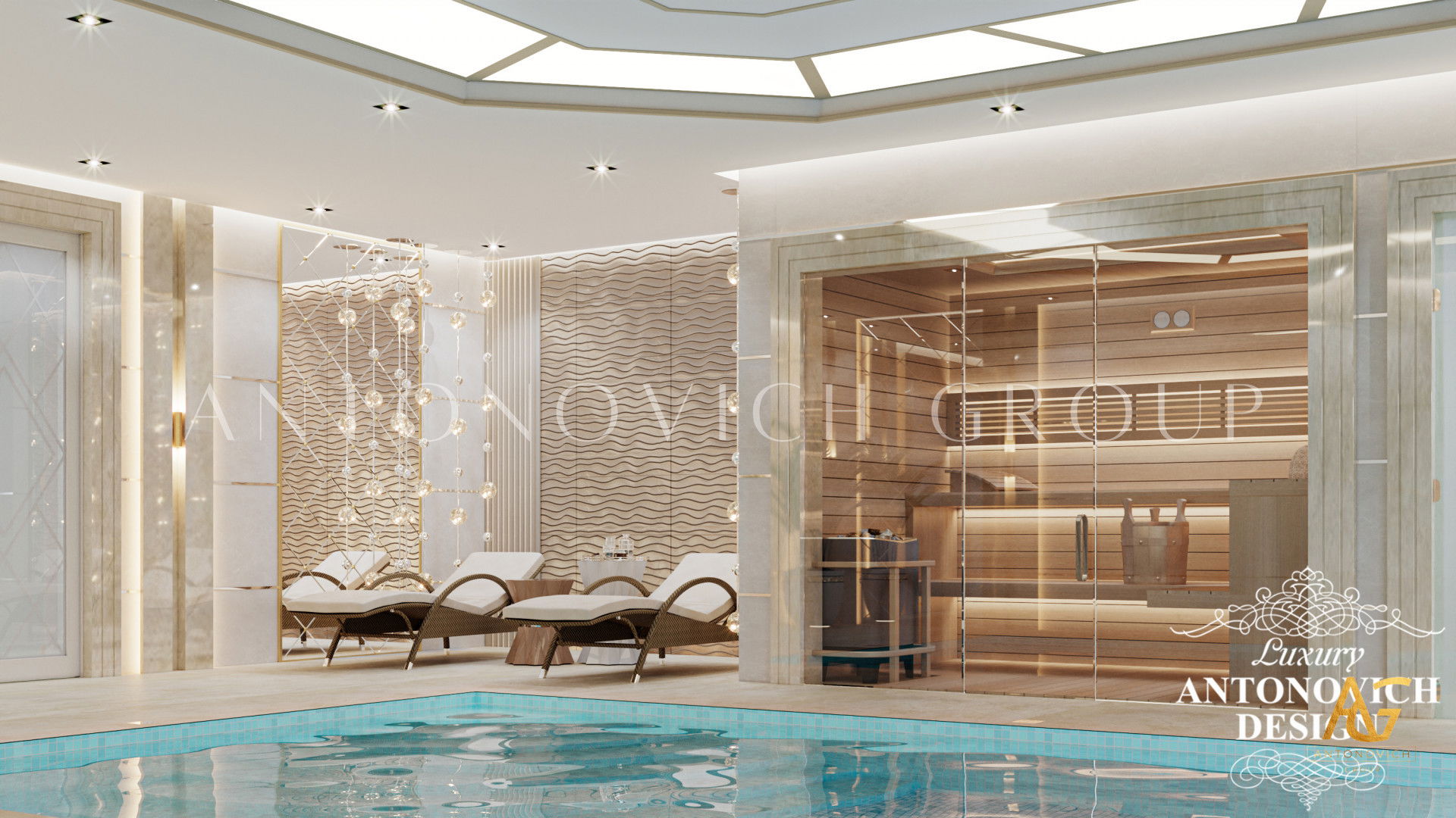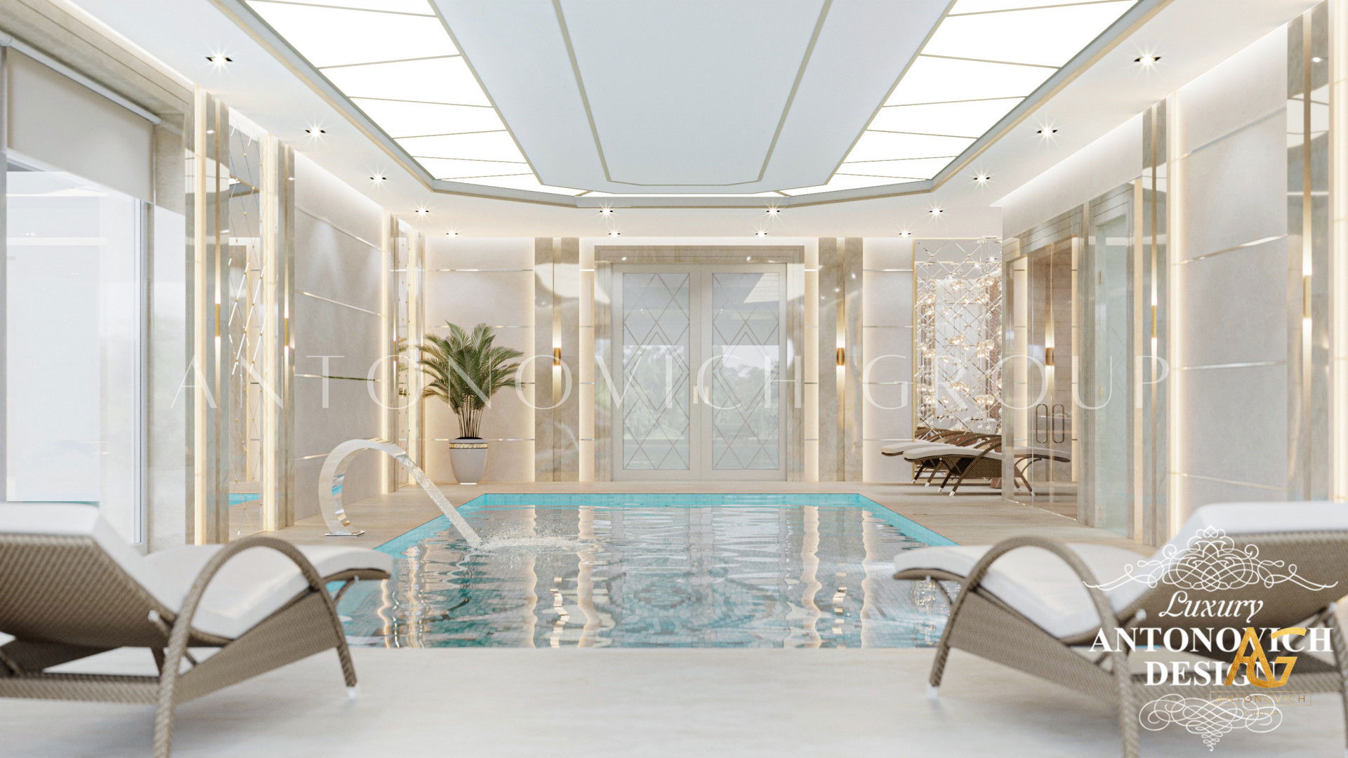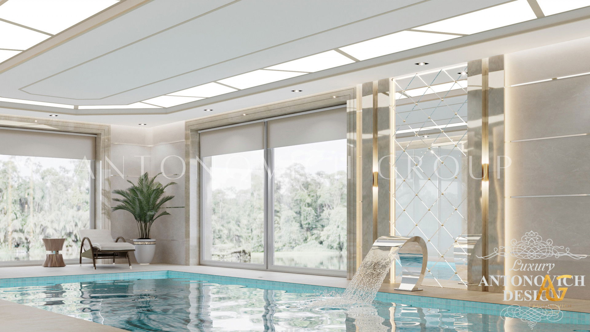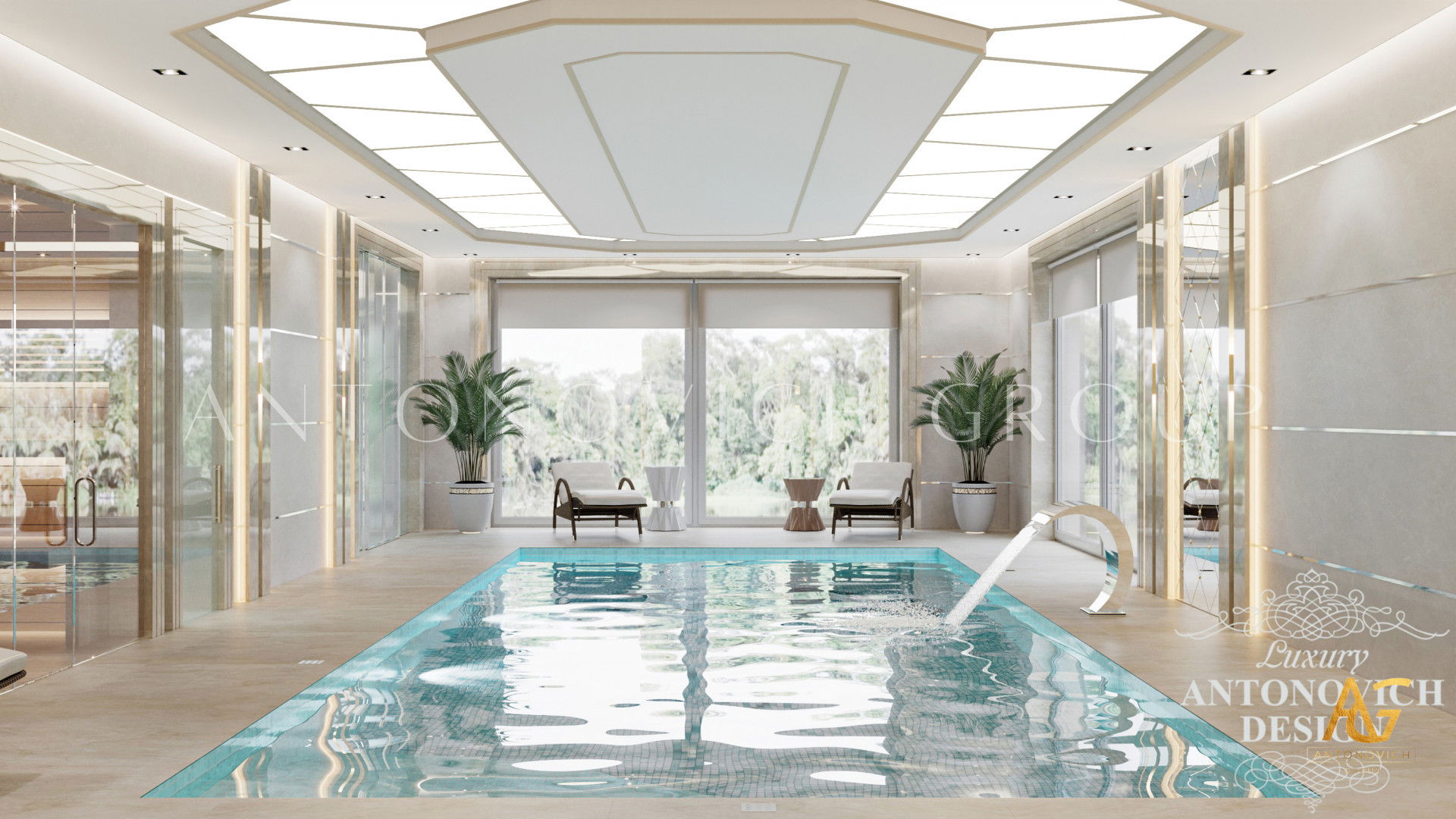 Концепция объединяет роскошный дизайн бассейна, стильный дизайн бассейна, дизайн интерьера бассейна, освещение для бассейна, оформление стен бассейна, мебель для зоны бассейна, текстиль для зоны бассейна, схему расположения бассейна в интерьере и цветовые решения для бассейна.