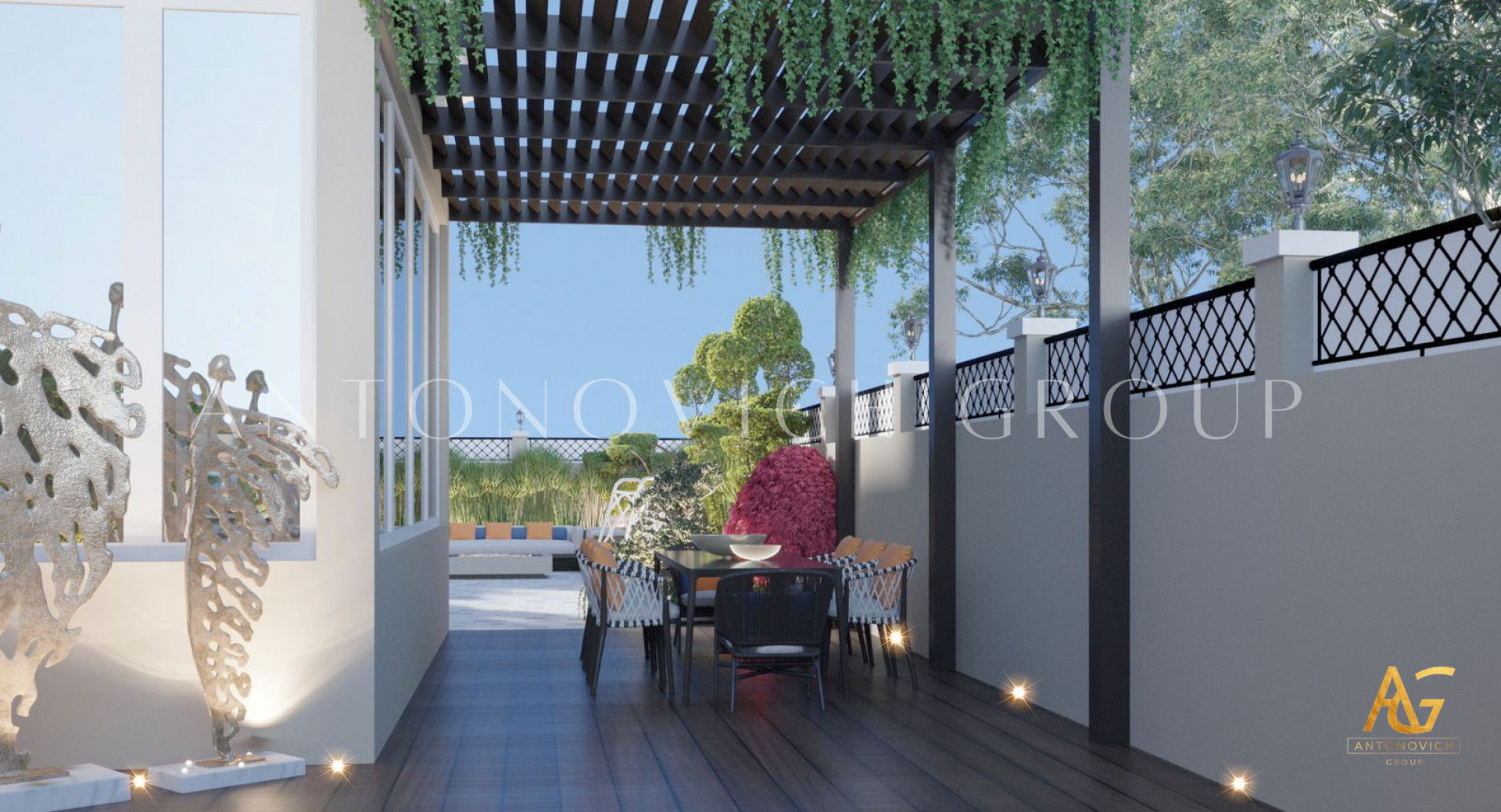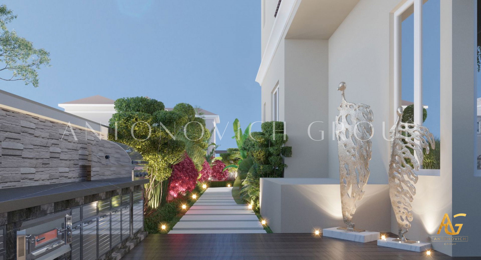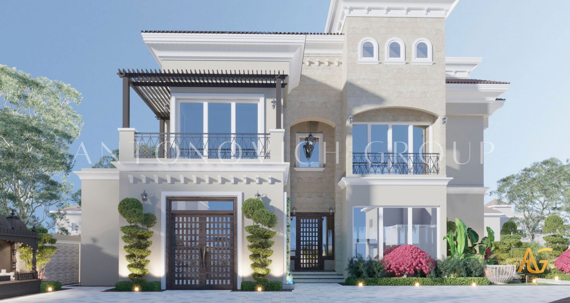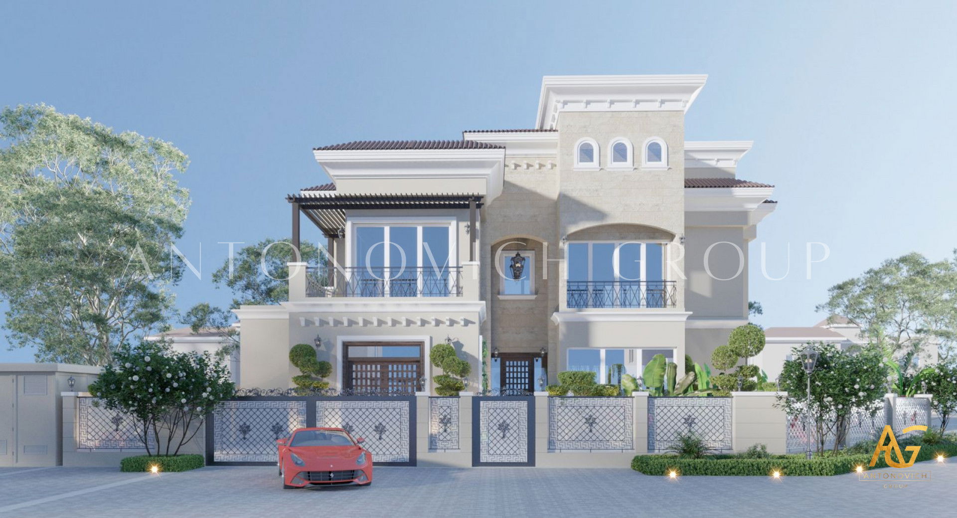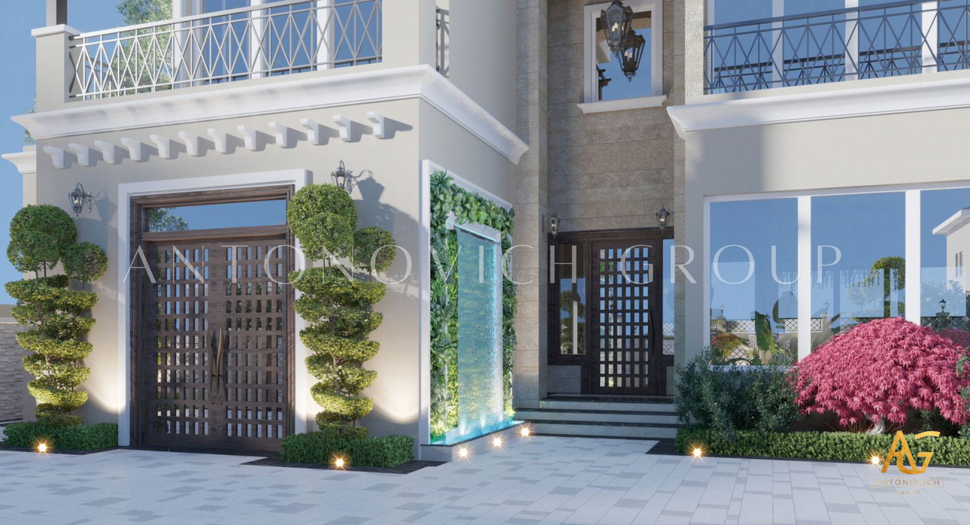 Этот дизайн экстерьера виллы был разработан и реализован Антонович Групп (Antonovich Group), которая вывела обычные внешние формы на новый уровень. Дизайн экстерьера виллы в Дубае подчёркивает просторную испанскую архитектуру на фоне пустынного пейзажа. Наши специалисты выполнили ландшафтный дизайн виллы с зелёными внутренними двориками; экстерьер виллы в испанском стиле органично сочетается с окружающей природой. Мы создали вилла с частным бассейном и садами, а прогулочные дорожки в ландшафте аккуратно пролегают по всей территории, соединяя функциональные зоны.