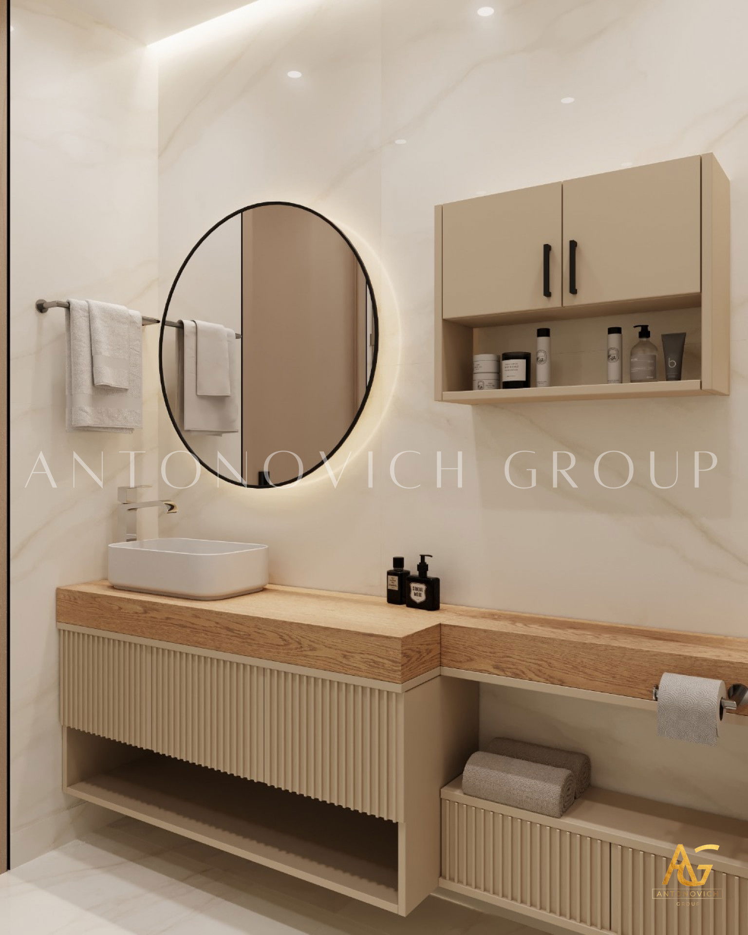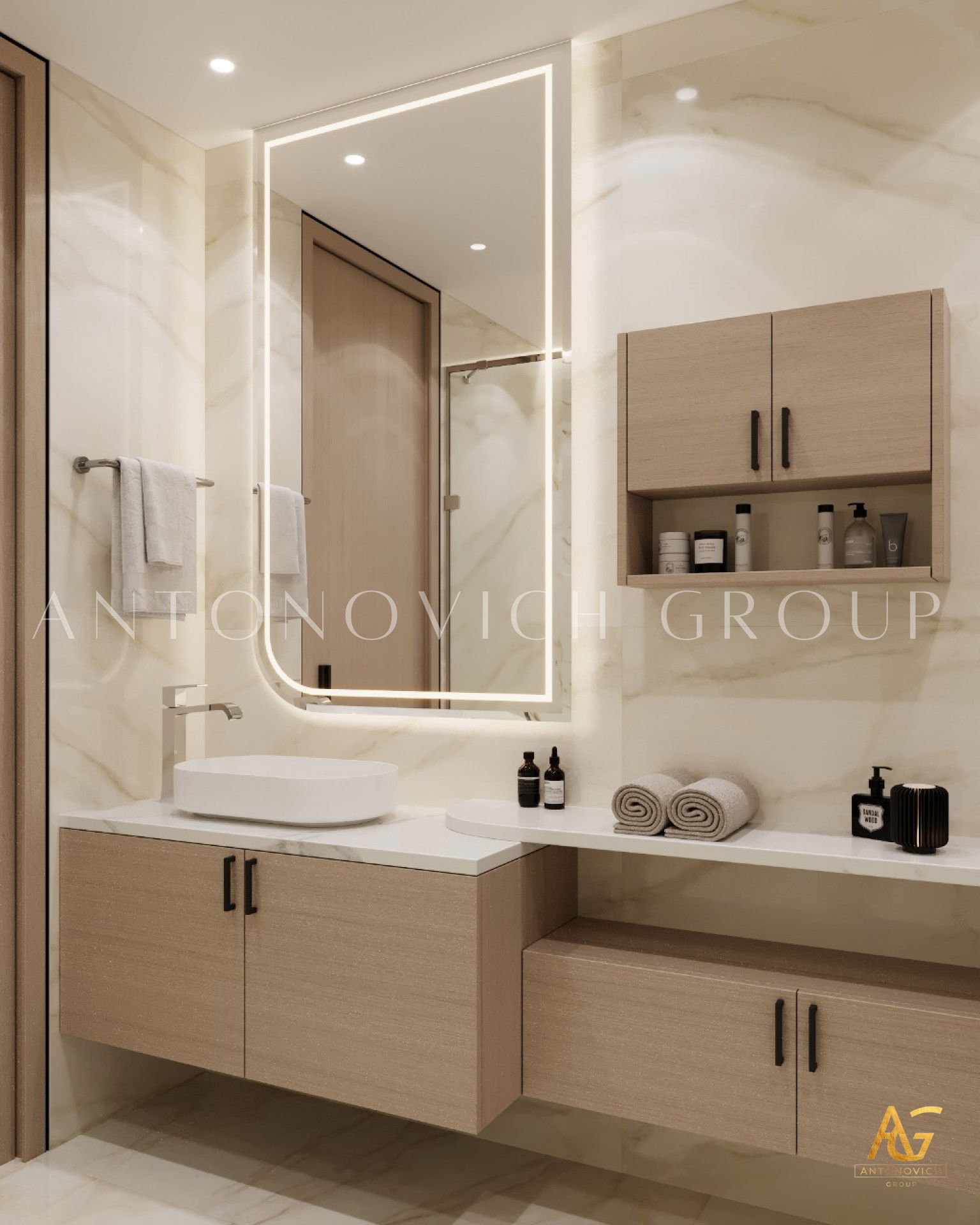 Антонович Групп непрерывно стремится предложить наиболее роскошные решения для каждой ванной комнаты, поскольку она стала одним из ключевых проявлений интерьера дома. Каждая деталь и концепция проекта тщательно собраны и реализованы в точных дизайнерских решениях. Интерьеры ванной комнаты разрабатываются в соответствии с общей концепцией дома, чтобы обеспечить максимальную согласованность стиля. Команда превосходно воплотила современное минималистичное настроение интерьера ванной комнаты, которое полностью отвечает требованиям владельца. Роскошный дизайн ванной комнаты в Дубае особенно ценит баланс между эстетикой и функциональностью.
