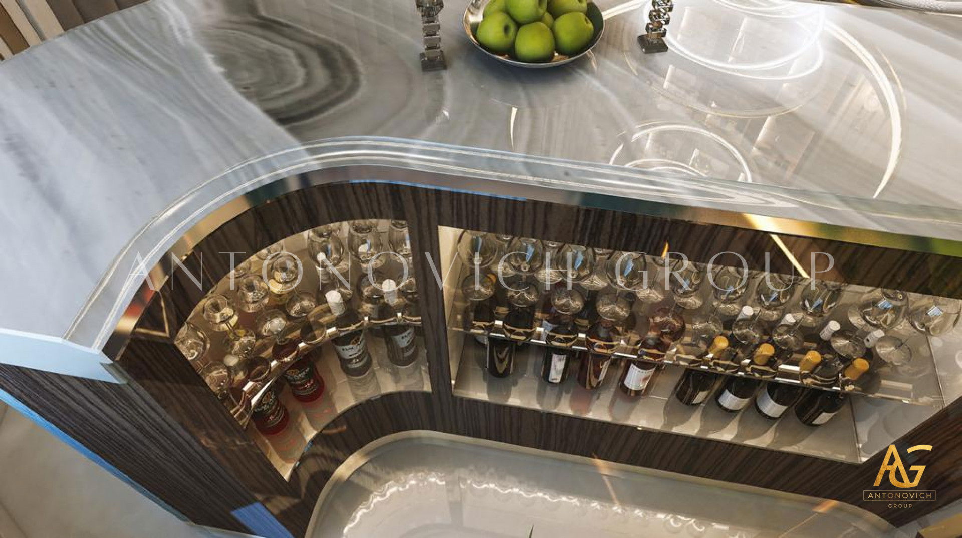 Если вы стремитесь к спокойной, но величественной атмосфере, это роскошный дом для вас. Проект задуман для состоятельных клиентов. Для многих ценителей роскоши подобные интерьеры — очевидный выбор: при знакомстве с работами Антонович Дизайн (Antonovich Design) и проектами, реализованными в стране, всегда ощущается грандиозность и элегантность. Превосходная мебель и прекрасный интерьер — здесь обычное дело. Вы захотите оставаться в таком доме, вдохновляясь каждой деталью.
