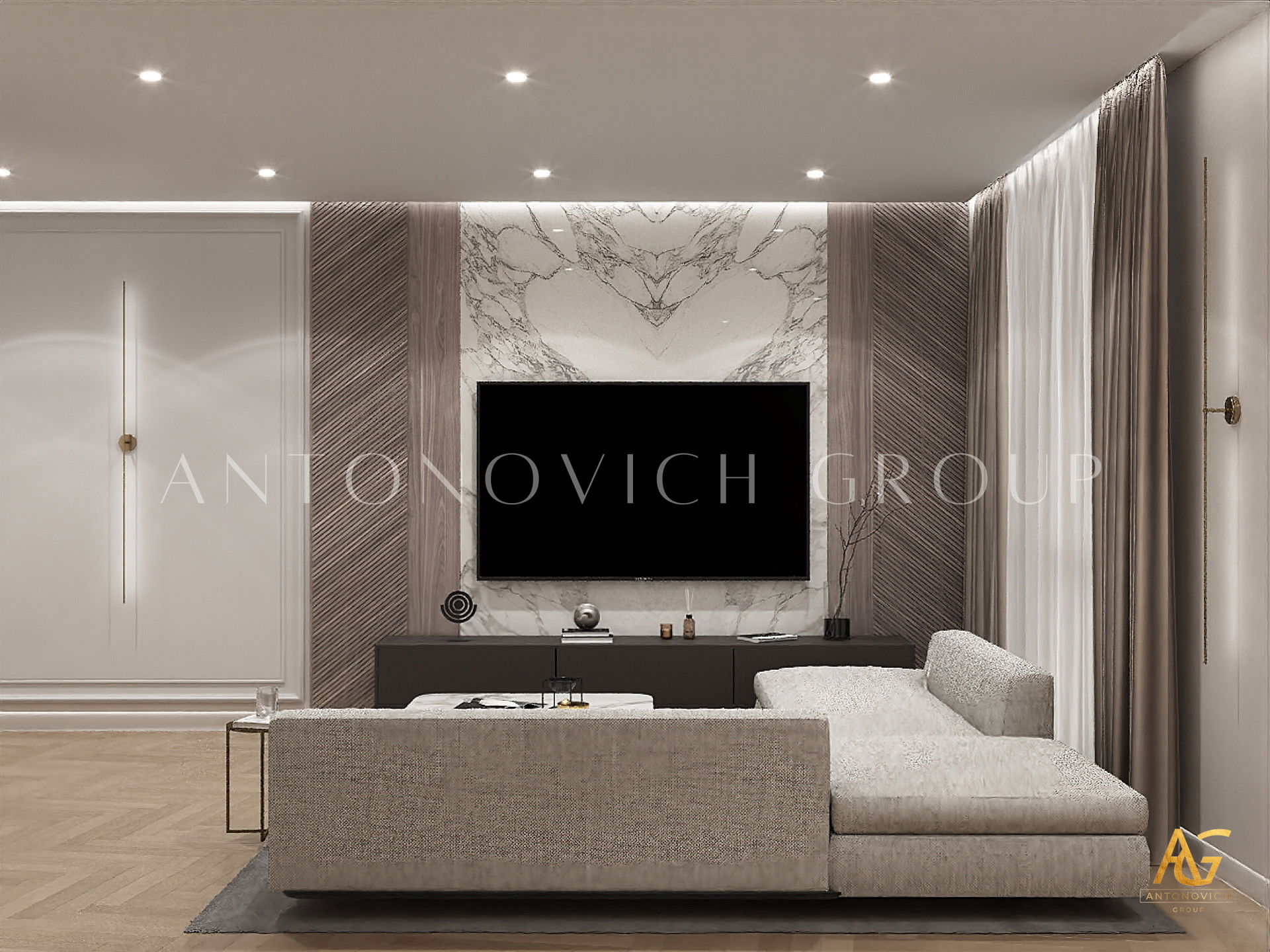 В результате Антонович Дизайн спроектировал и реализовал наиболее утончённую схему оформления и современную мебель на заказ, создав исключительно стильную и выразительную атмосферу интерьера.