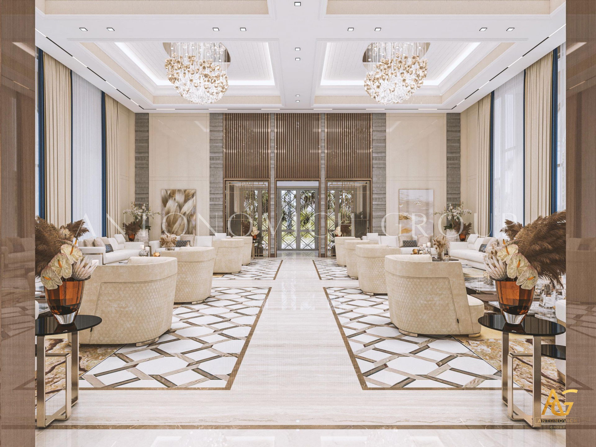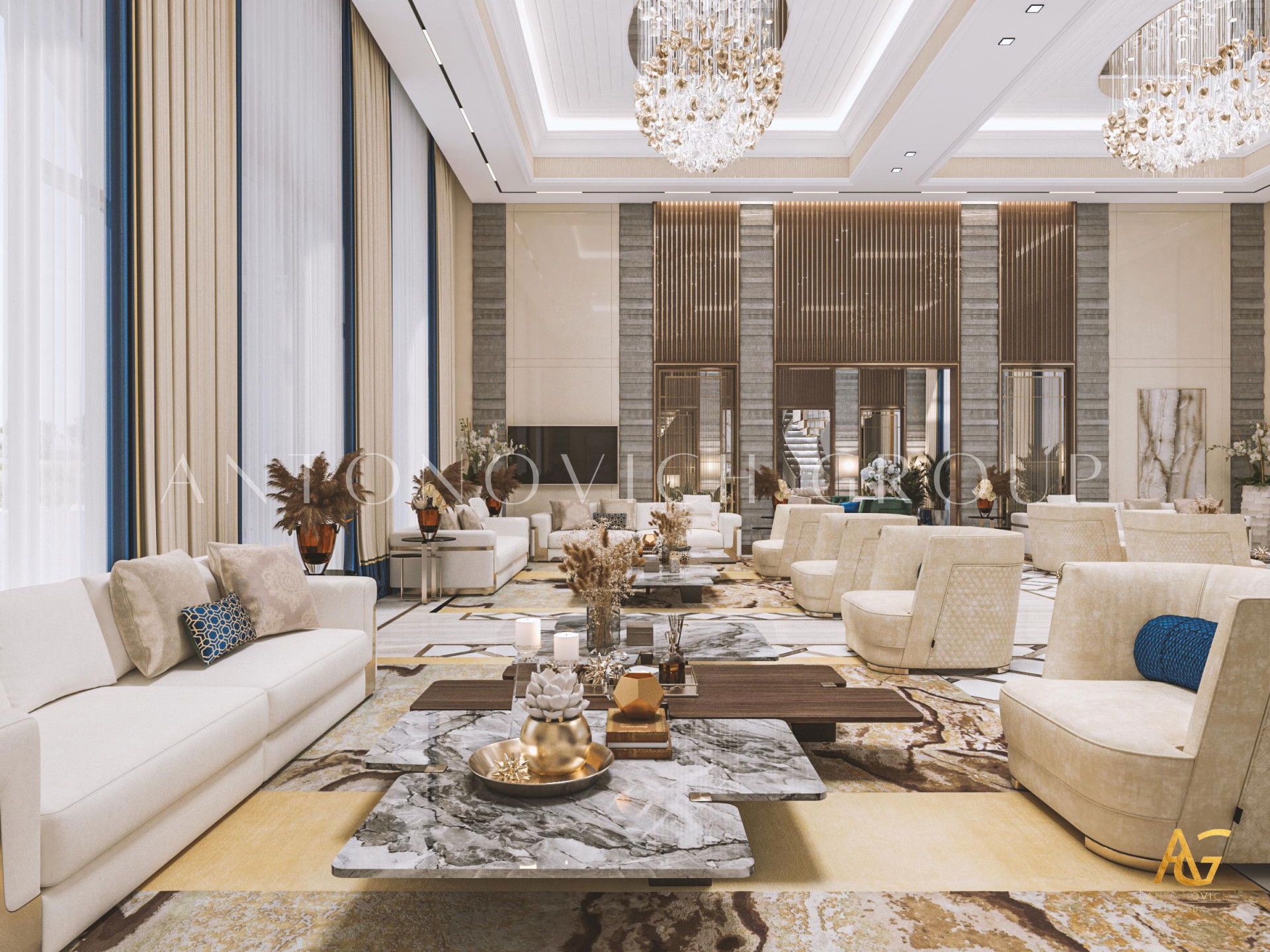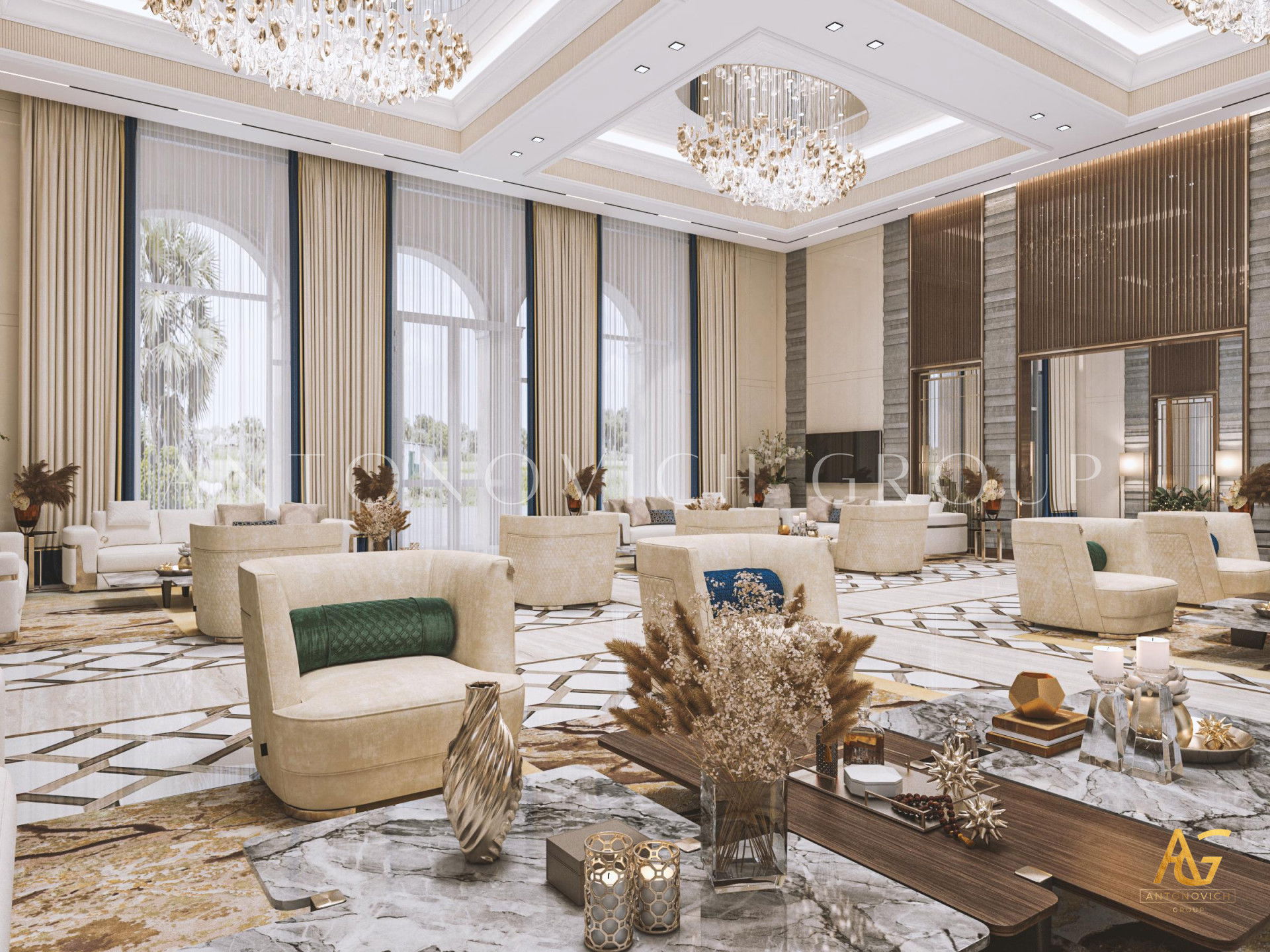 Опыт Антонович Дизайн в проекте семейной гостиной для виллы в Дубае обеспечивает гармоничное сочетание величия и функциональности. Авторские решения и мастерство исполнителей делают их выбором владельцев элитной недвижимости.