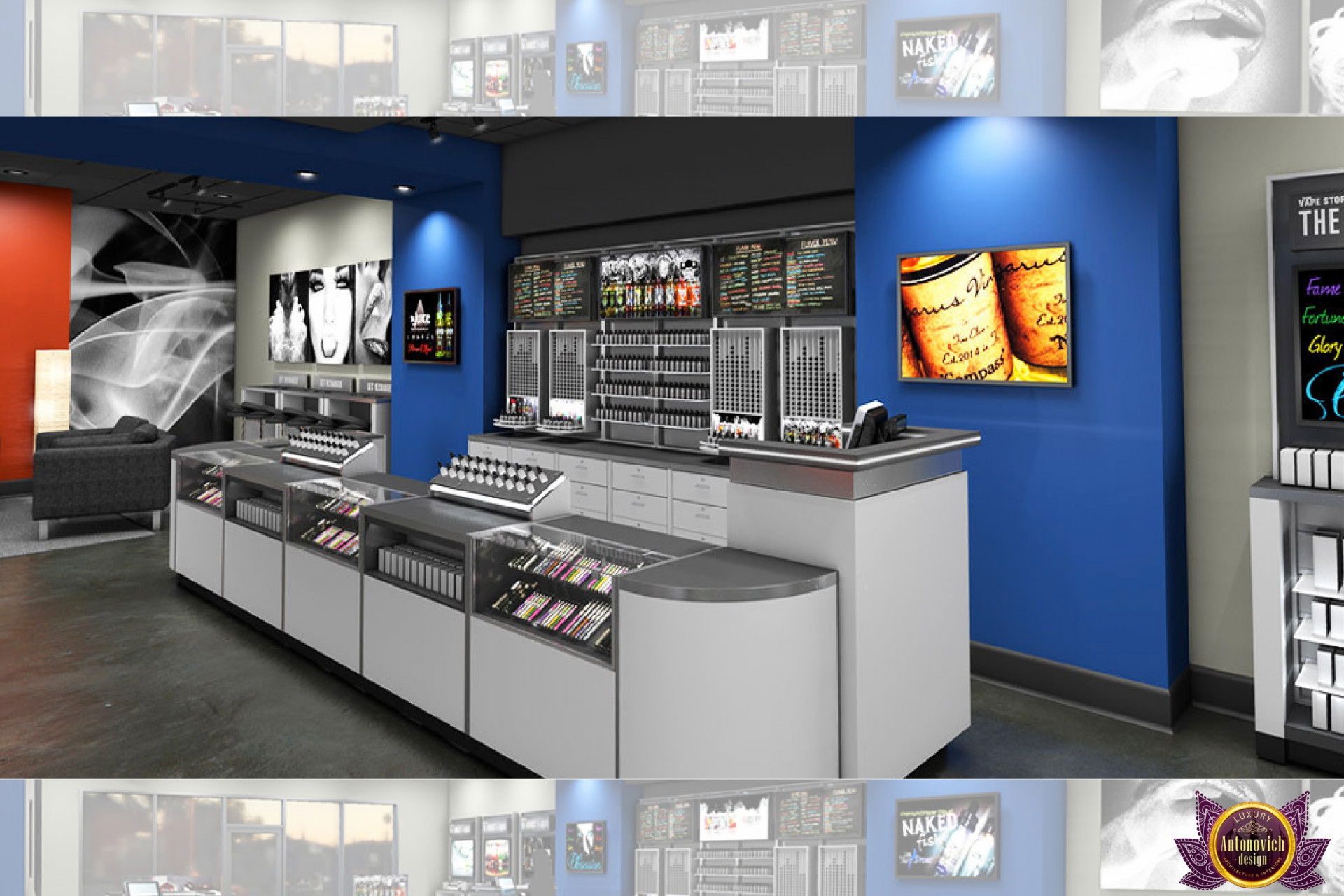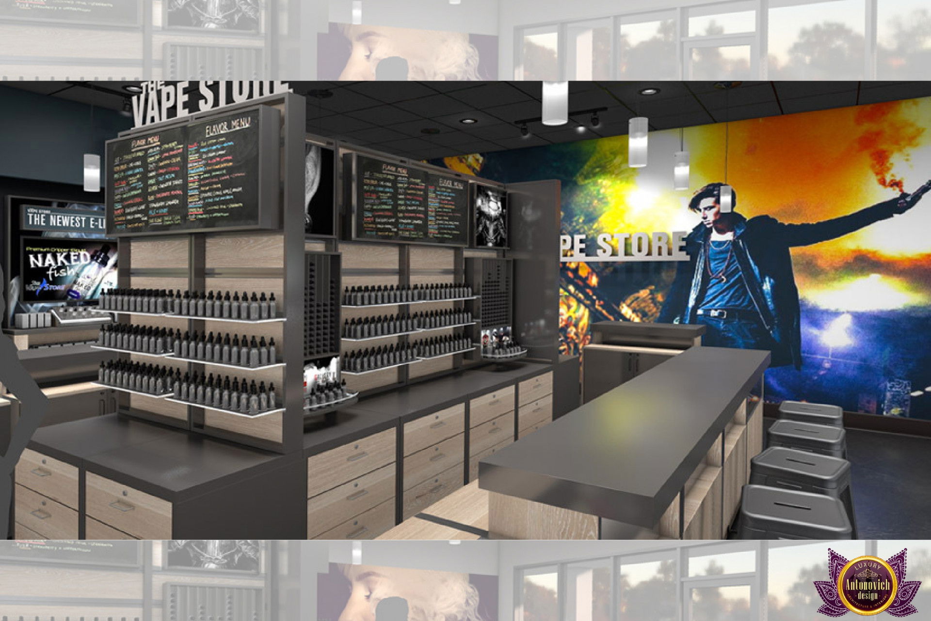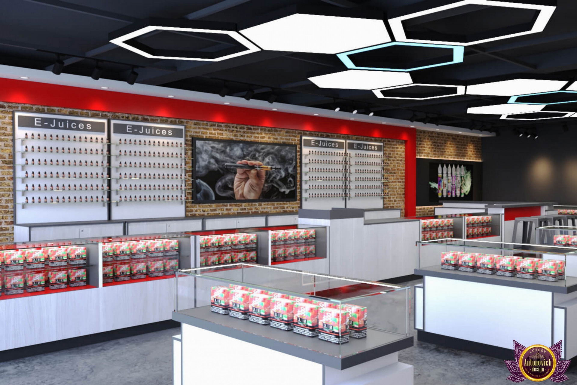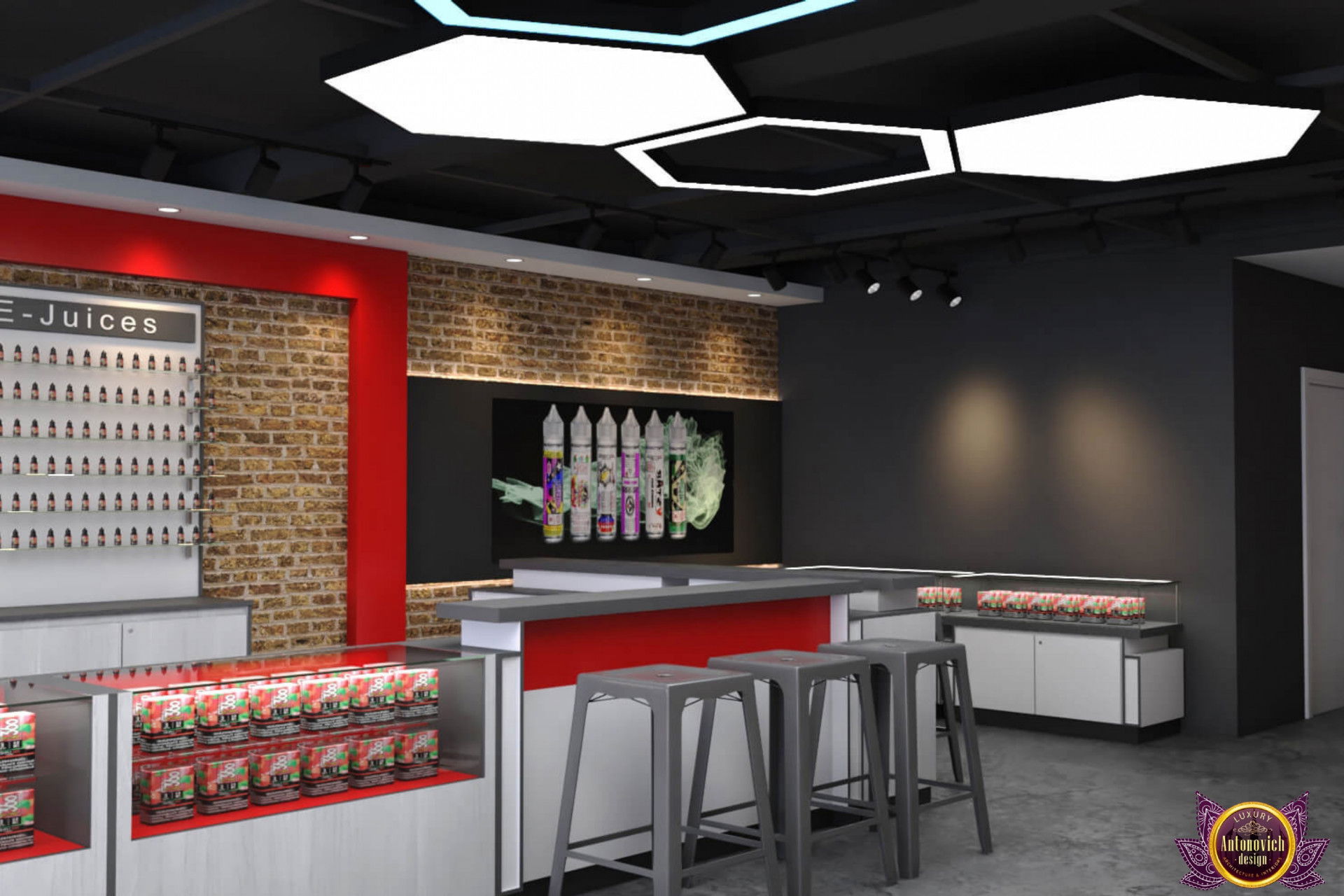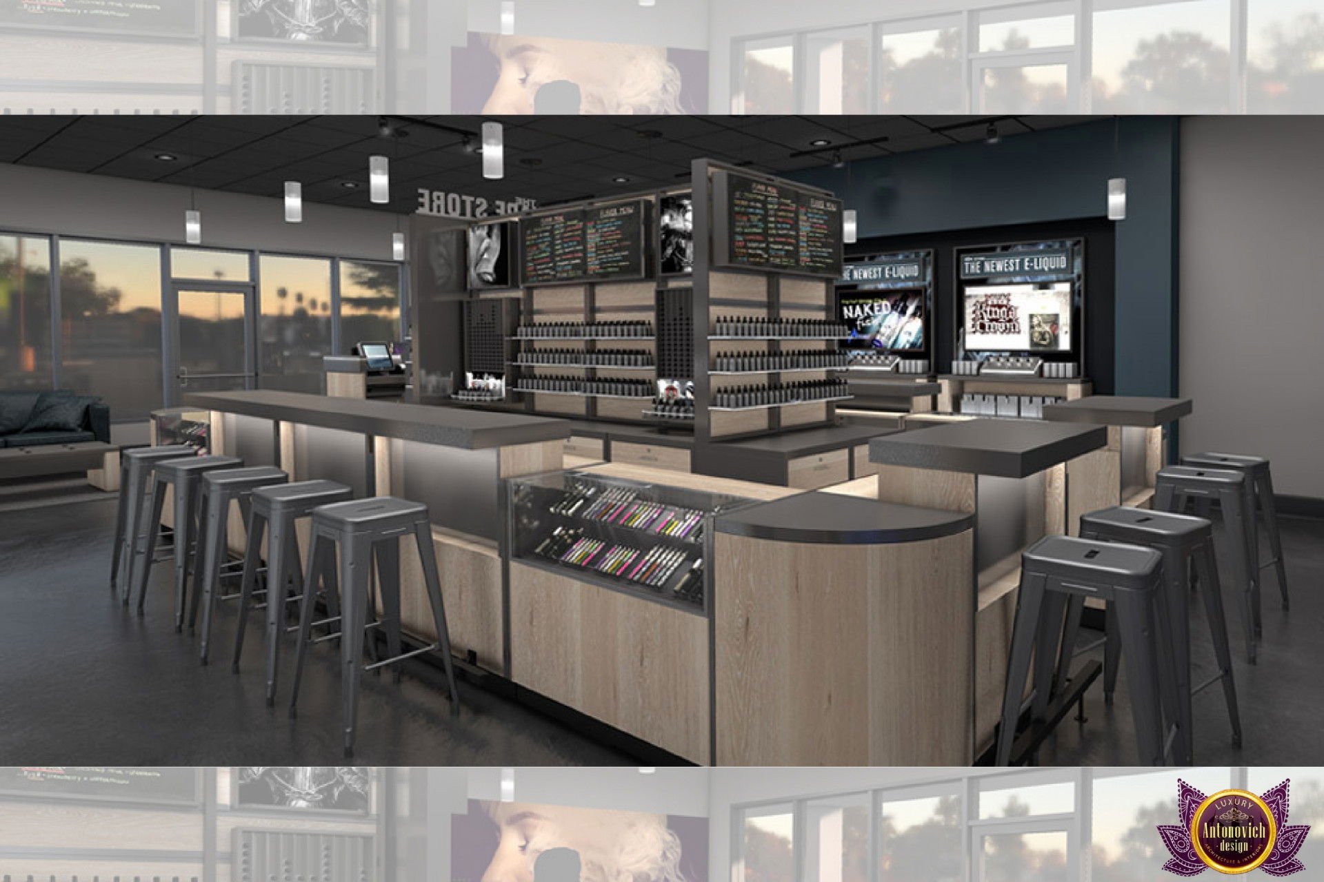 От концепции до завершения мы предоставляем широкий спектр услуг по фит-ауту для розничных магазинов. В этой статье Antonovich Group (Антонович Групп) с гордостью представляет вдохновляющий дизайн интерьера вейп-шопа. Мы предлагаем как пакетные решения, так и отдельные услуги; наиболее экономичным вариантом выступает ремонт под ключ вейп-шопа, когда стоимость материалов и работ оптимизирована за счёт комплексного подхода.