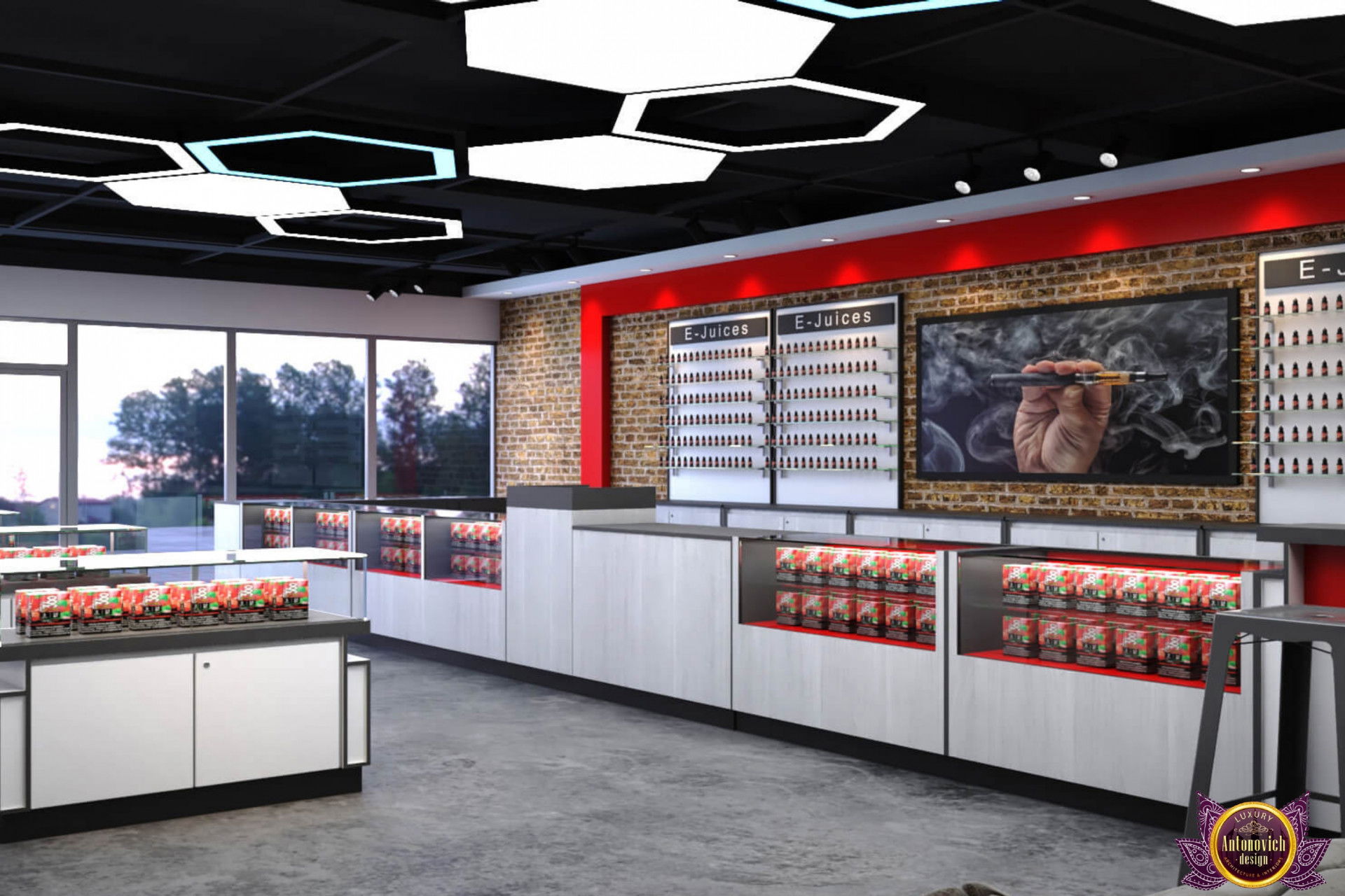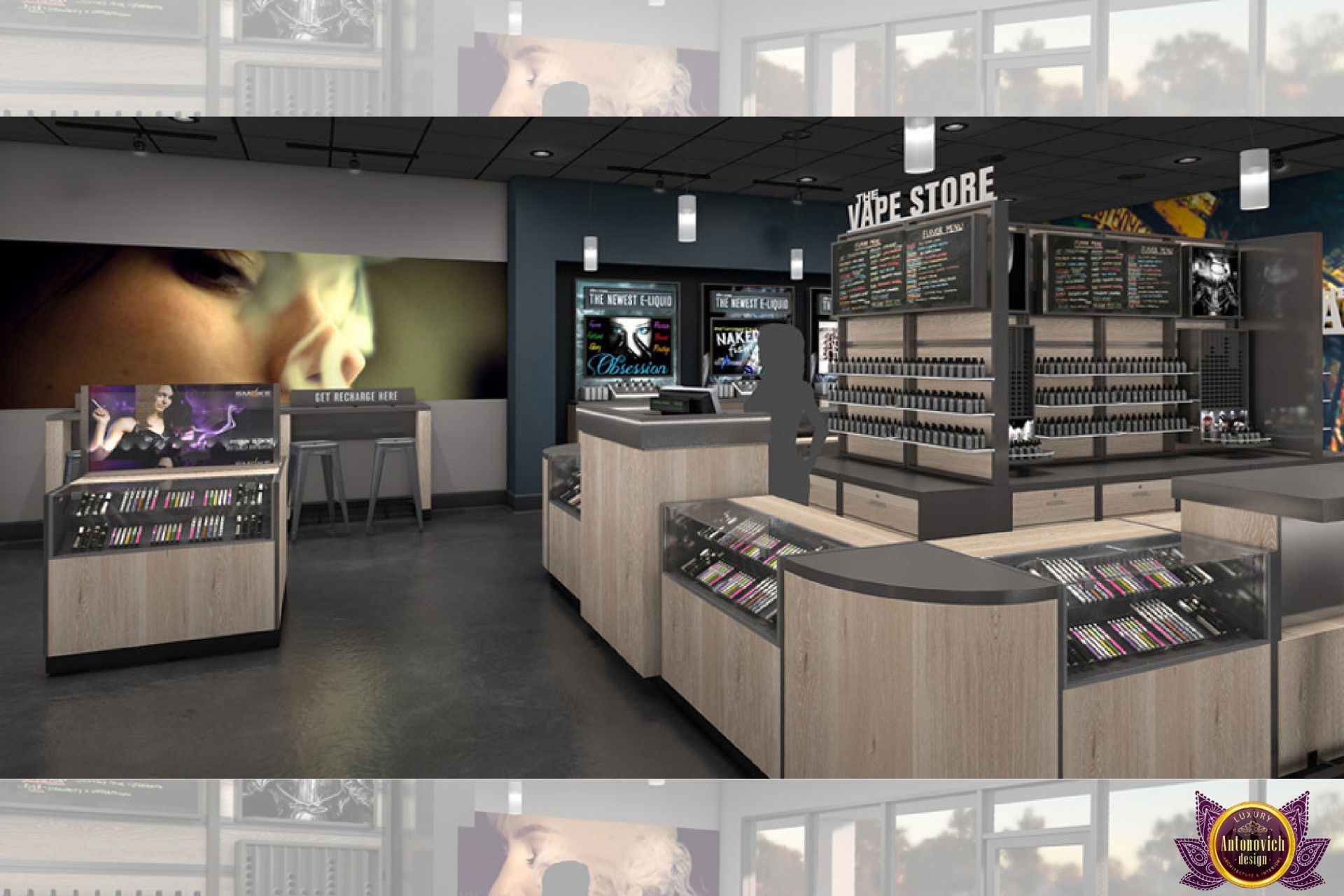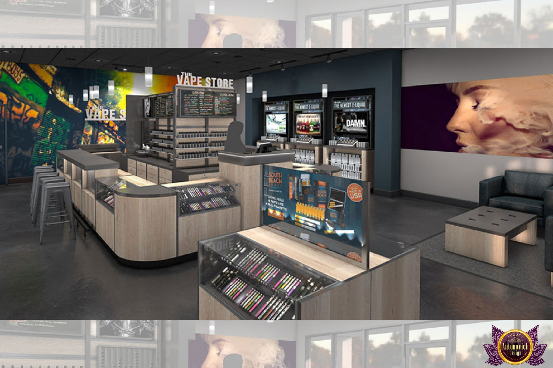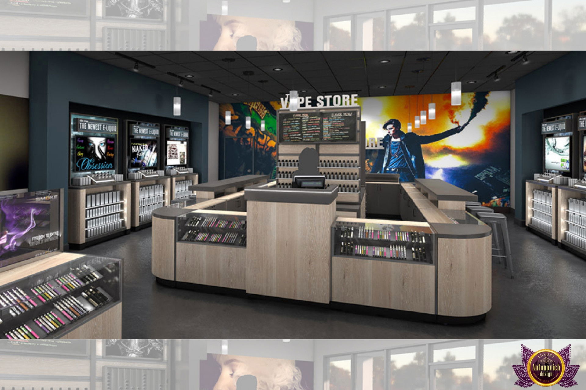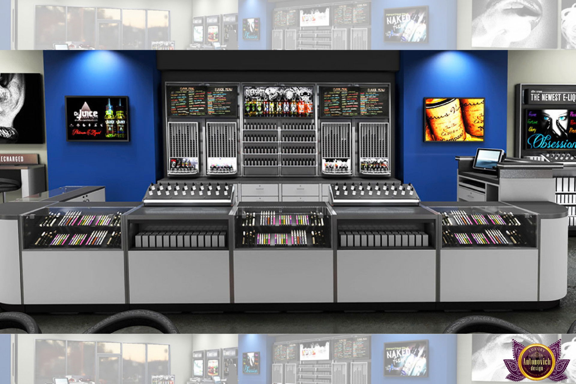От концепции до завершения мы предоставляем широкий спектр услуг по фит-ауту для розничных магазинов. В этой статье Antonovich Group (Антонович Групп) с гордостью представляет вдохновляющий дизайн интерьера вейп-шопа. Мы предлагаем как пакетные решения, так и отдельные услуги; наиболее экономичным вариантом выступает ремонт под ключ вейп-шопа, когда стоимость материалов и работ оптимизирована за счёт комплексного подхода.