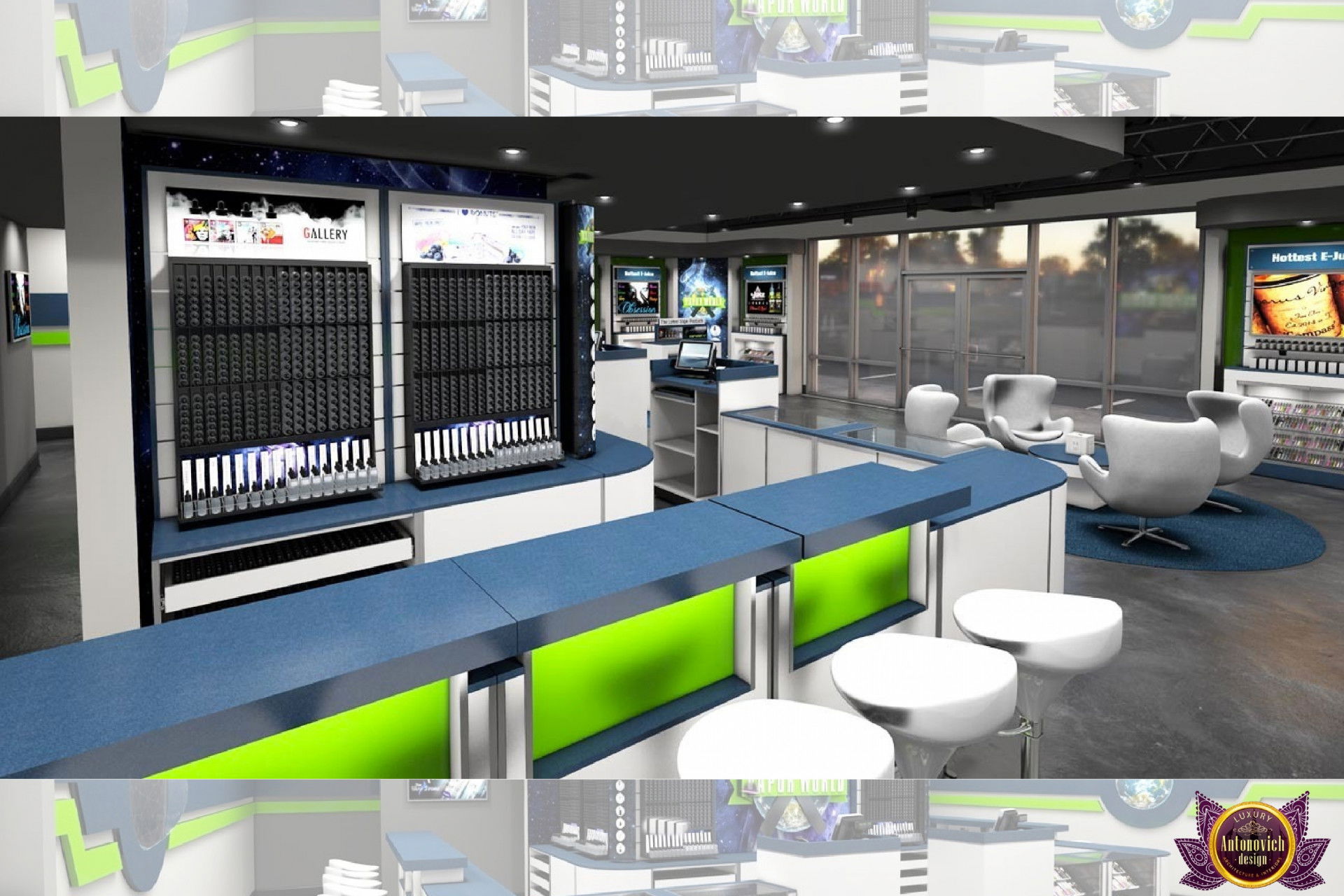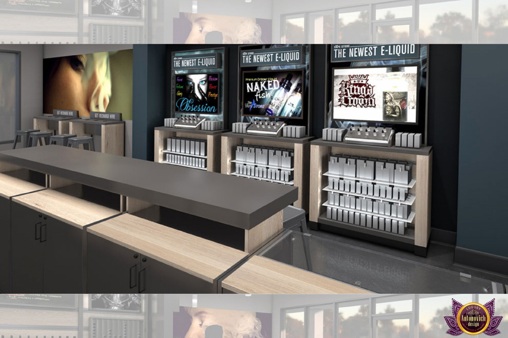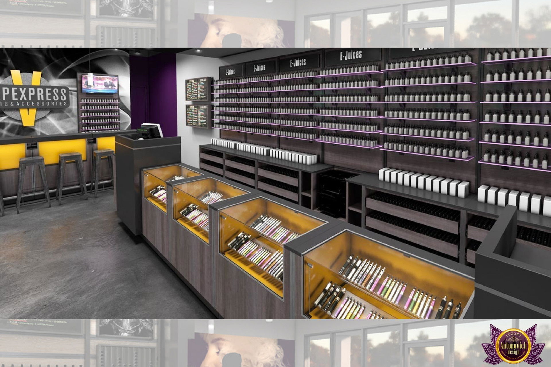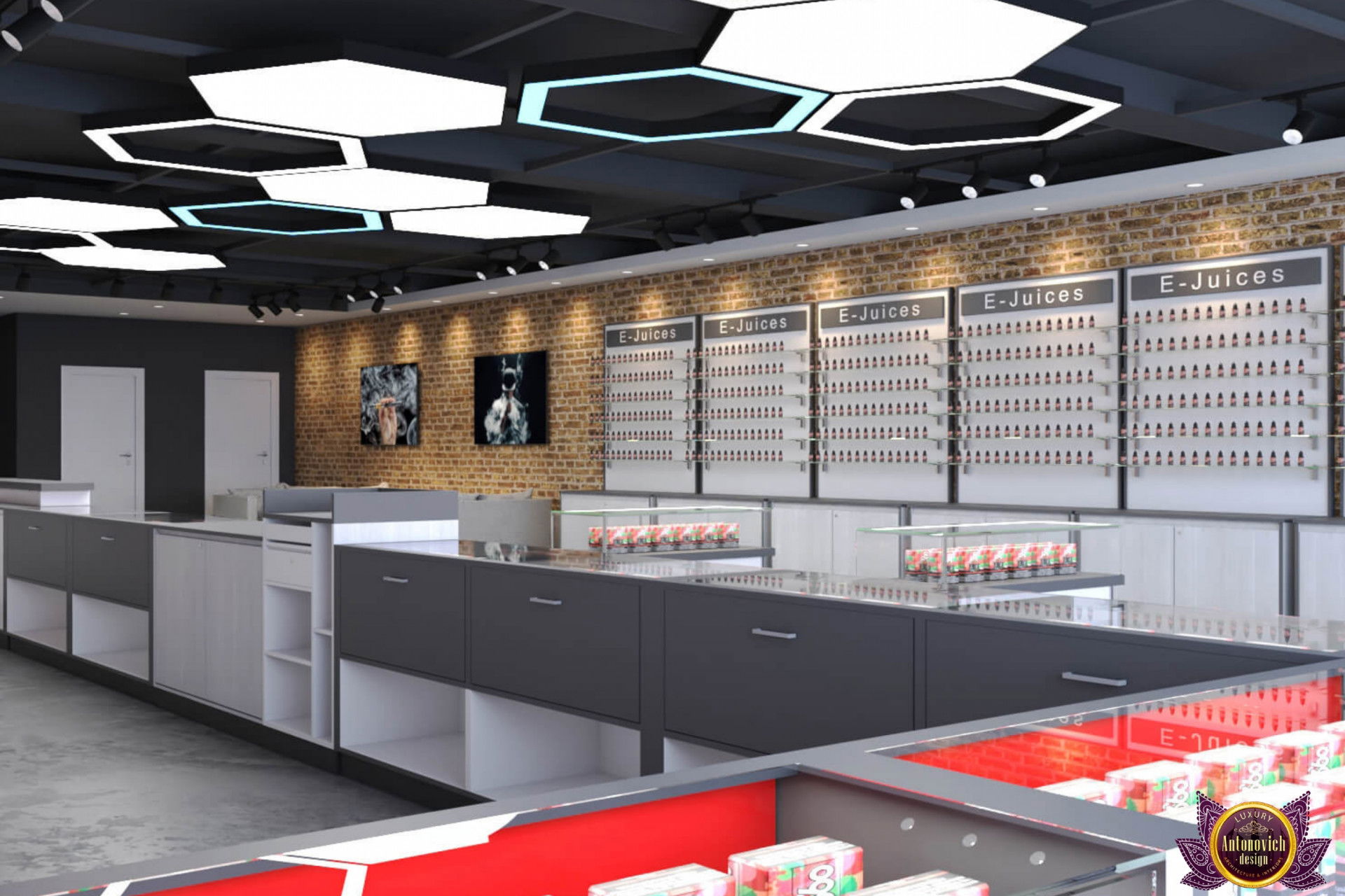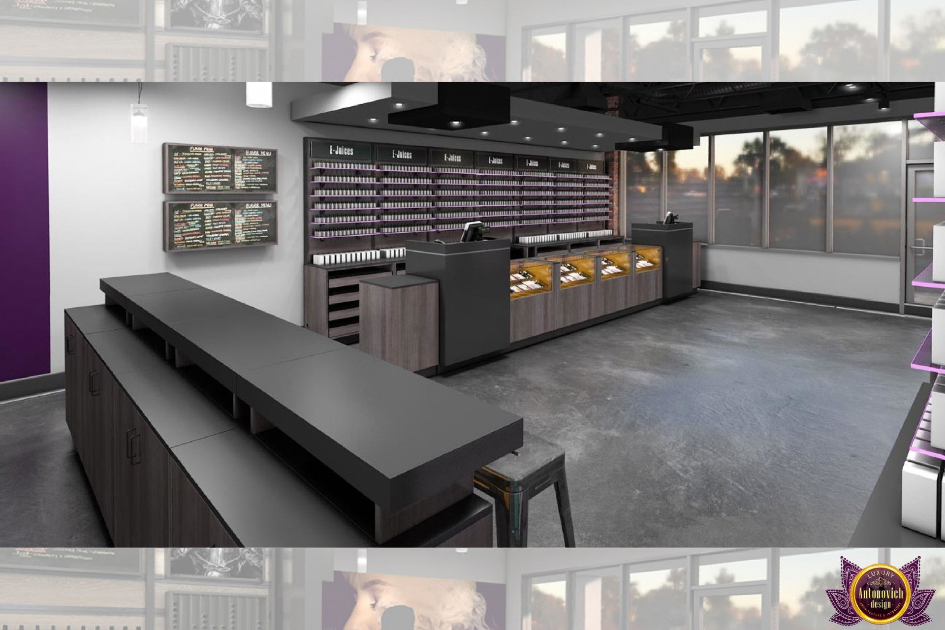 От концепции до завершения мы предоставляем широкий спектр услуг по фит-ауту для розничных магазинов. В этой статье Antonovich Group (Антонович Групп) с гордостью представляет вдохновляющий дизайн интерьера вейп-шопа. Мы предлагаем как пакетные решения, так и отдельные услуги; наиболее экономичным вариантом выступает ремонт под ключ вейп-шопа, когда стоимость материалов и работ оптимизирована за счёт комплексного подхода.