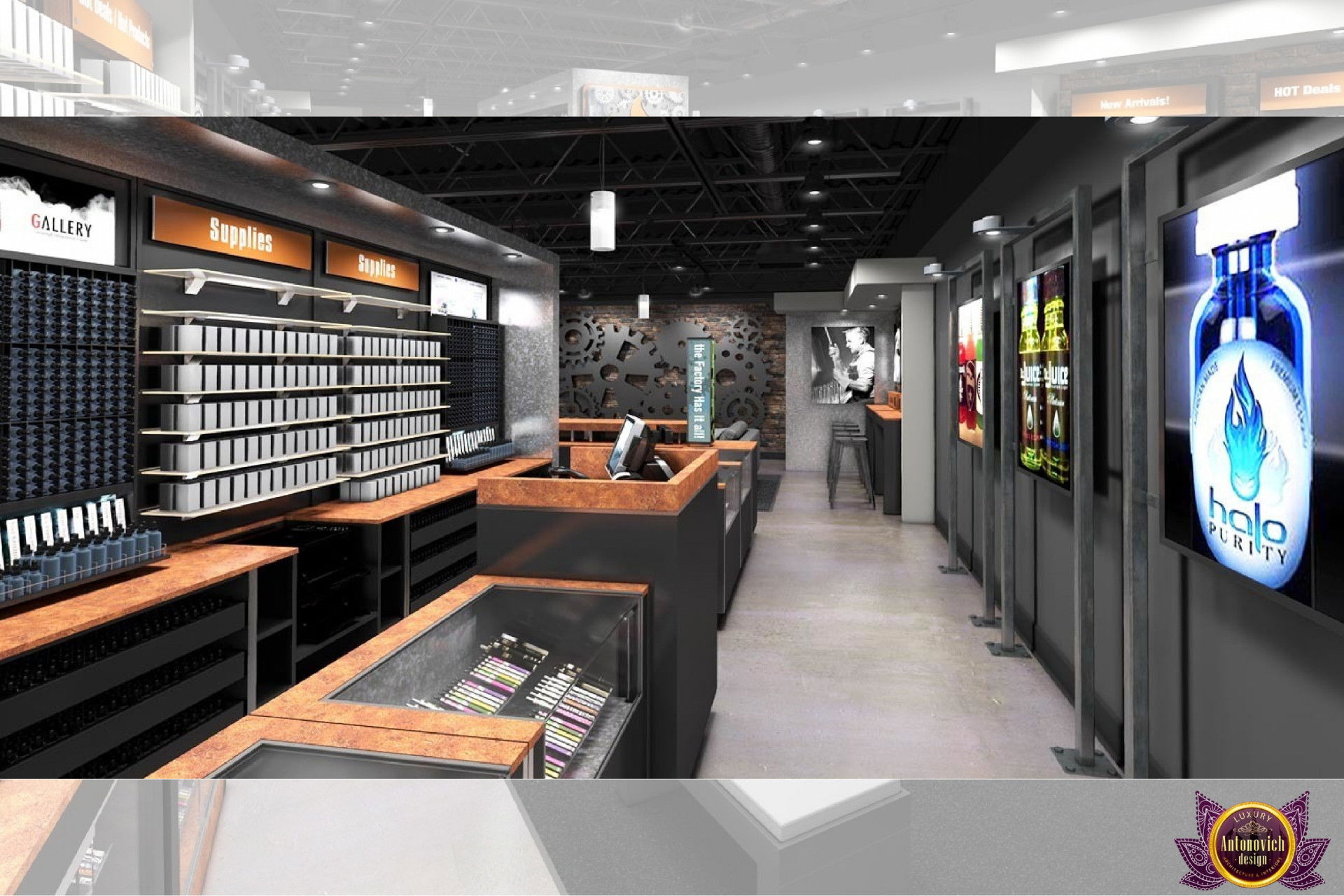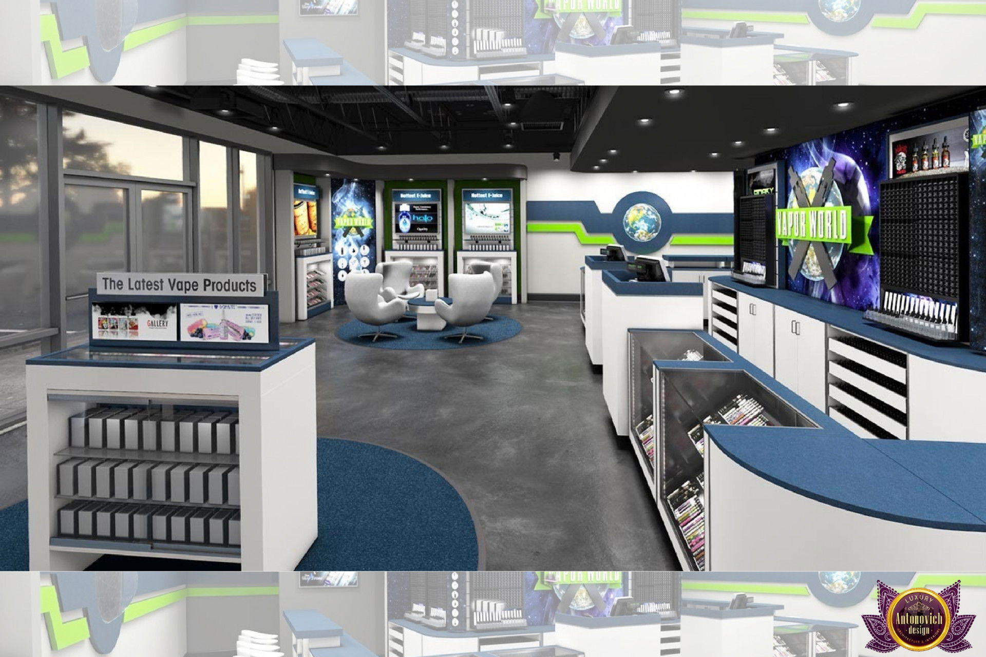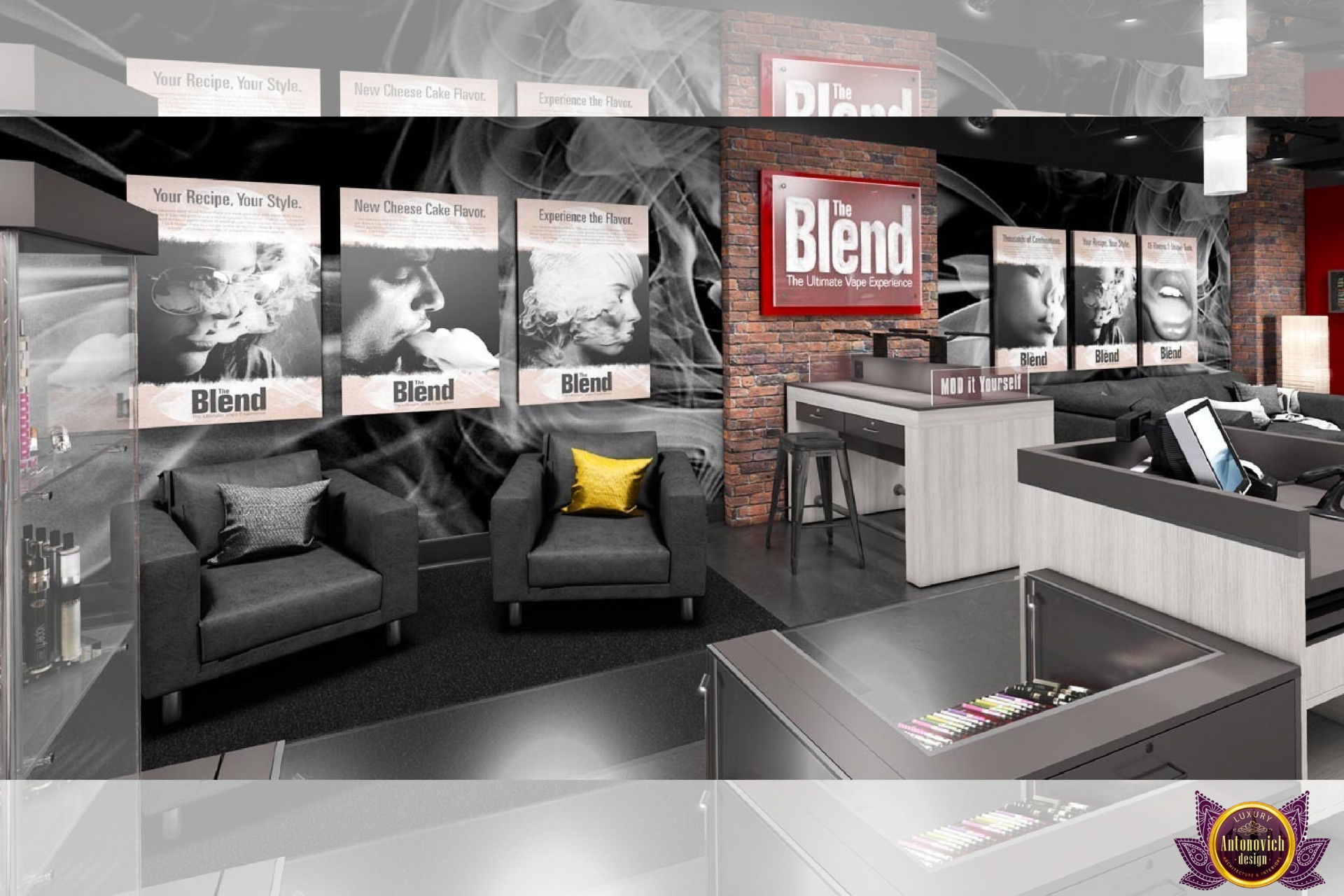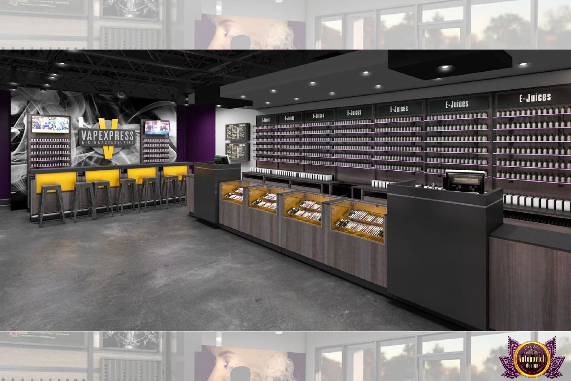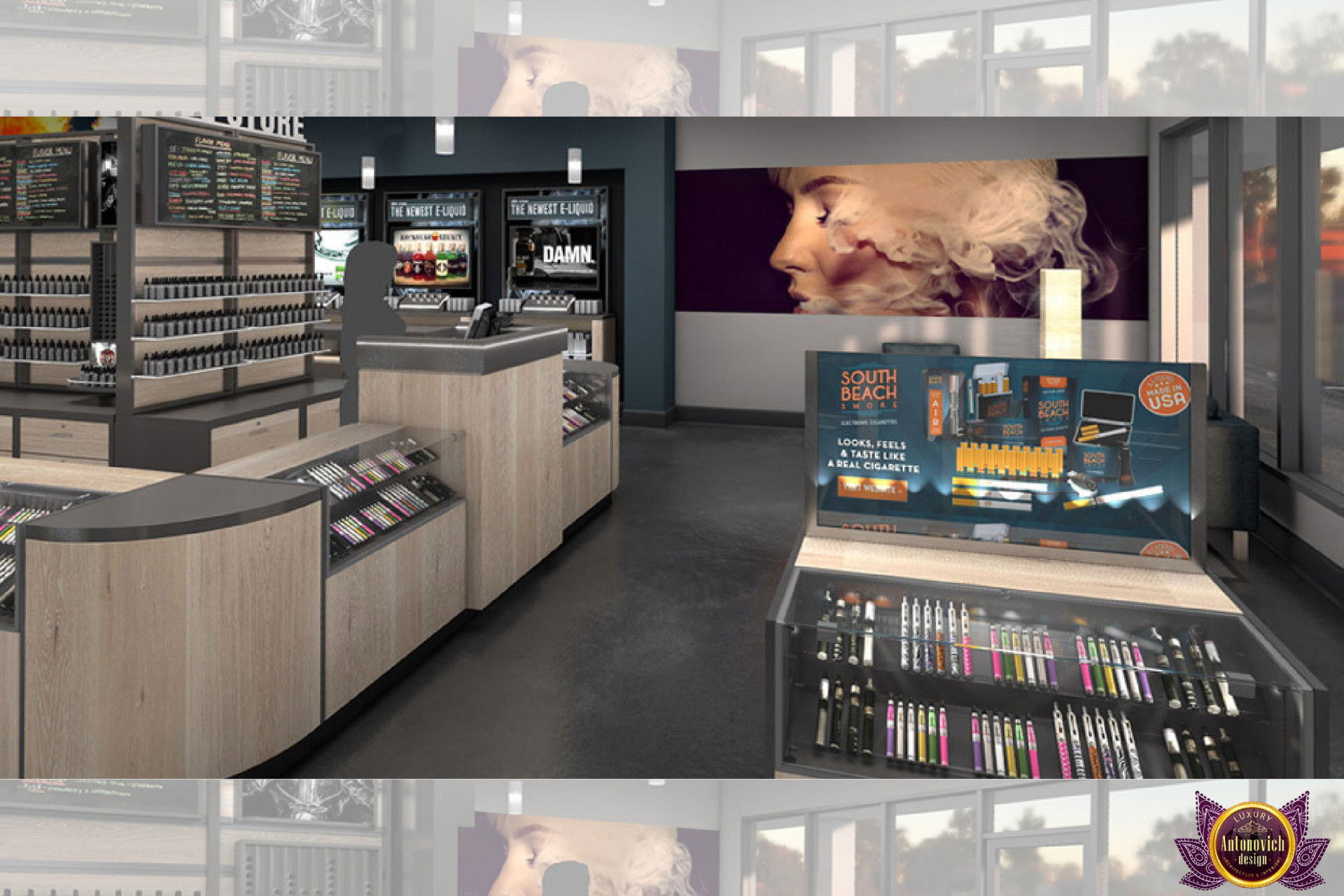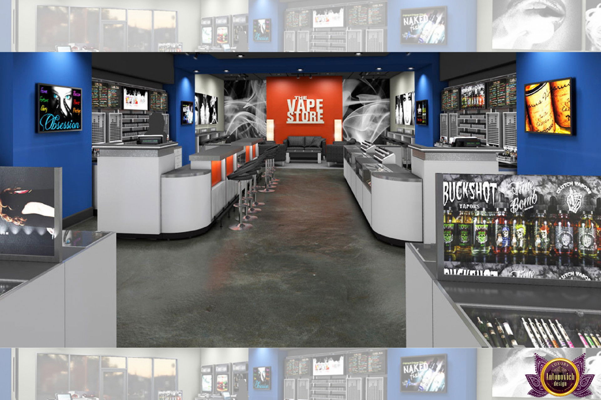 От концепции до завершения мы предоставляем широкий спектр услуг по фит-ауту для розничных магазинов. В этой статье Antonovich Group (Антонович Групп) с гордостью представляет вдохновляющий дизайн интерьера вейп-шопа. Мы предлагаем как пакетные решения, так и отдельные услуги; наиболее экономичным вариантом выступает ремонт под ключ вейп-шопа, когда стоимость материалов и работ оптимизирована за счёт комплексного подхода.
