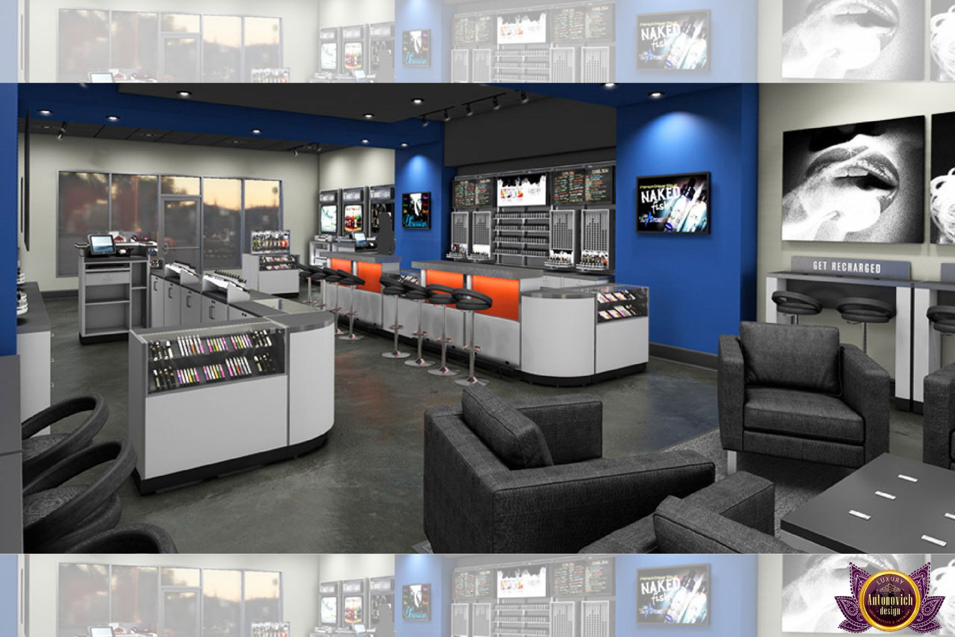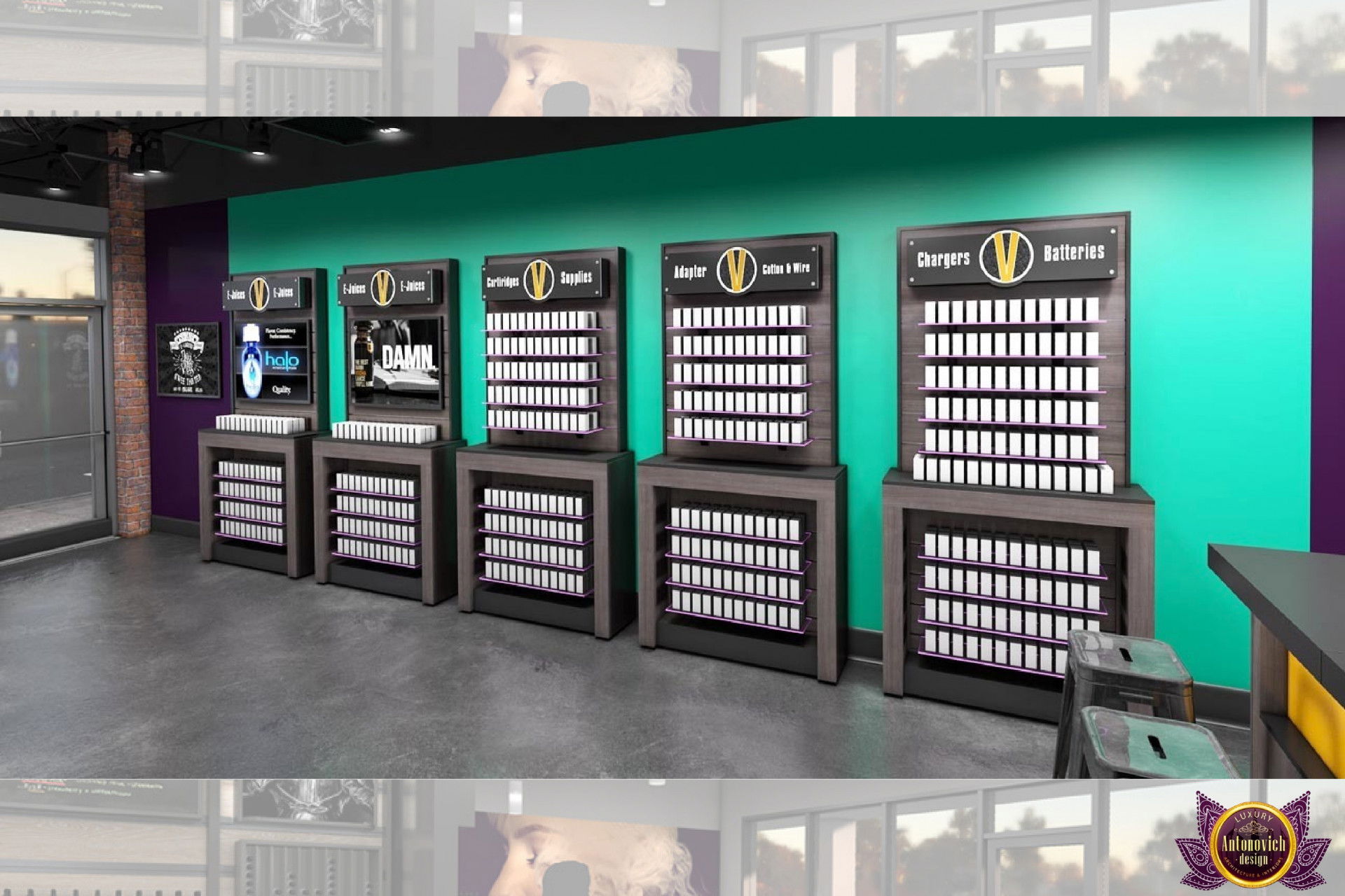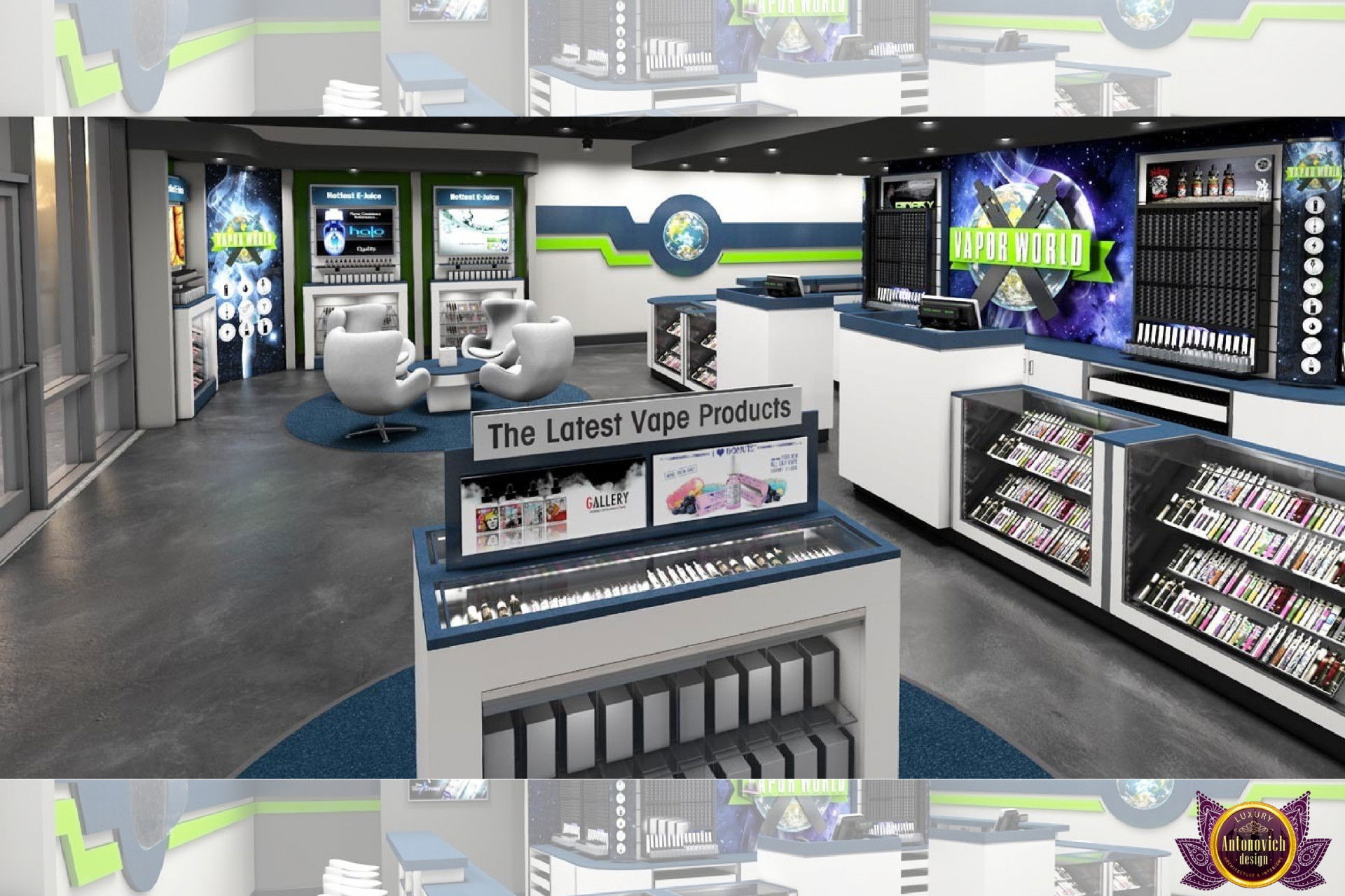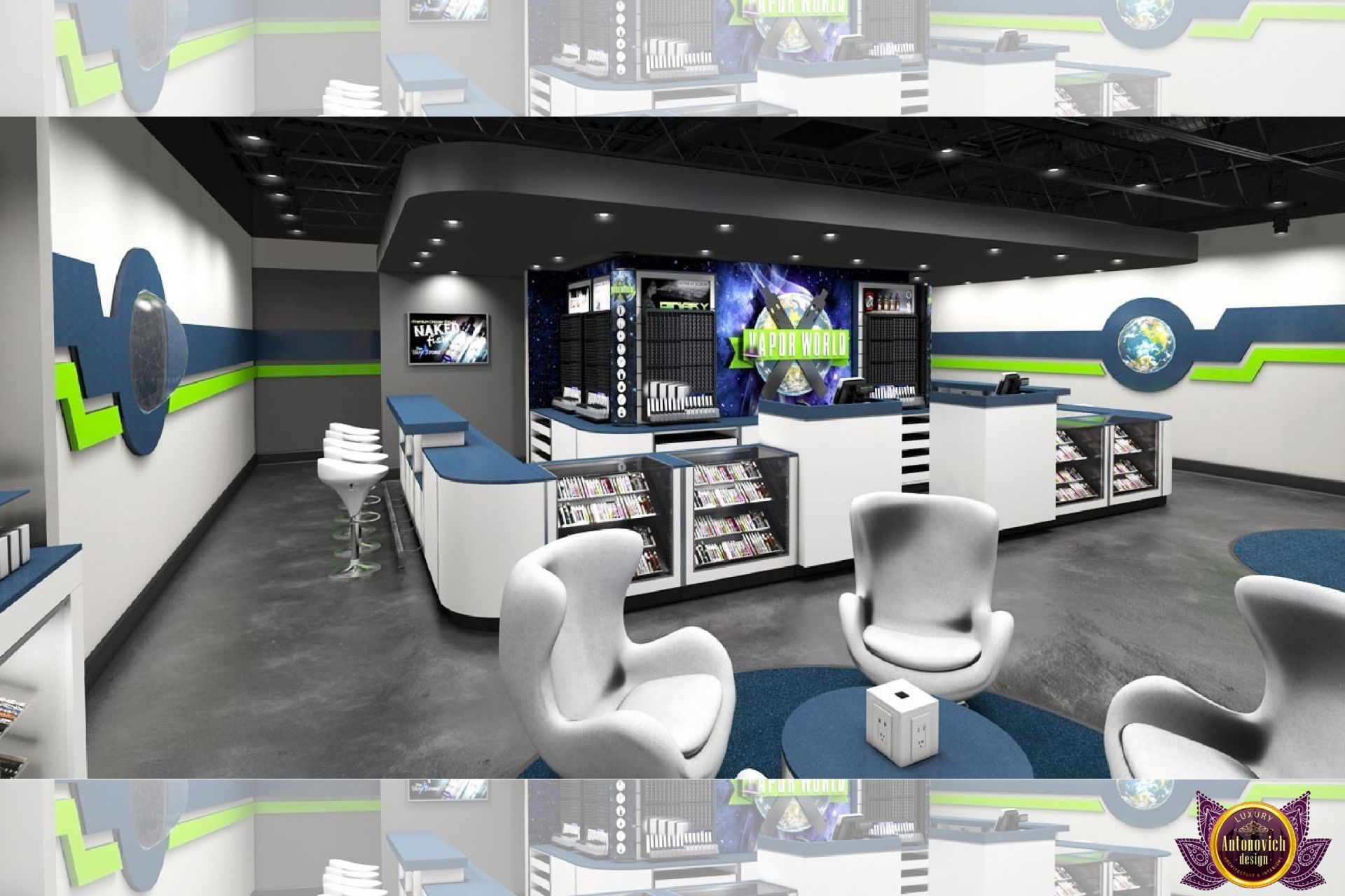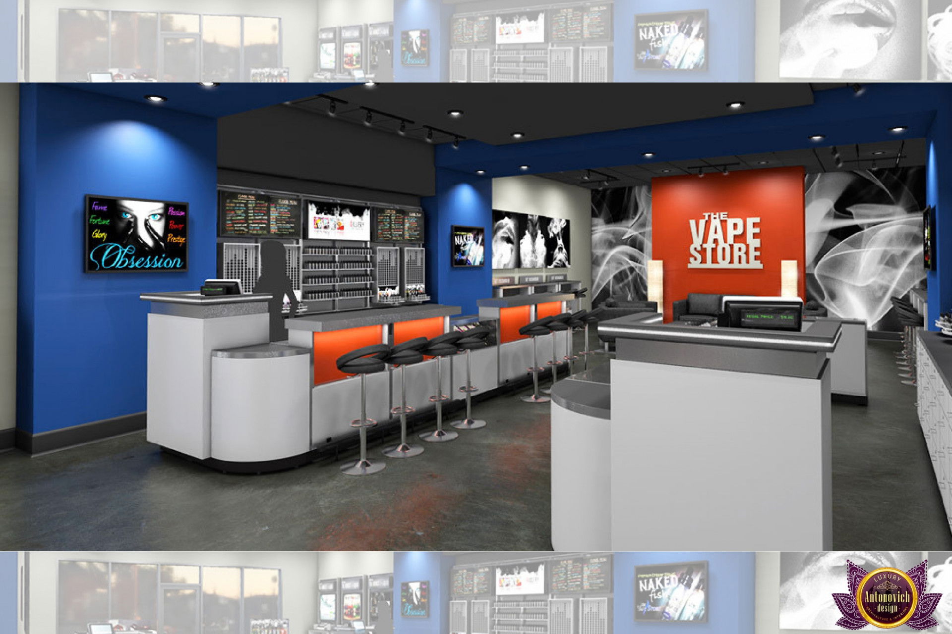От концепции до завершения мы предоставляем широкий спектр услуг по фит-ауту для розничных магазинов. В этой статье Antonovich Group (Антонович Групп) с гордостью представляет вдохновляющий дизайн интерьера вейп-шопа. Мы предлагаем как пакетные решения, так и отдельные услуги; наиболее экономичным вариантом выступает ремонт под ключ вейп-шопа, когда стоимость материалов и работ оптимизирована за счёт комплексного подхода.