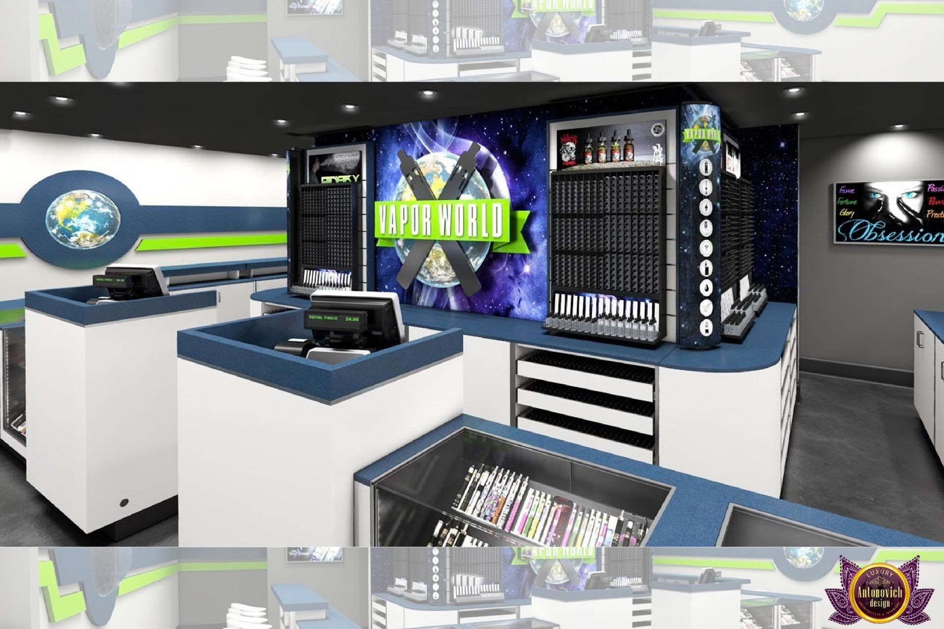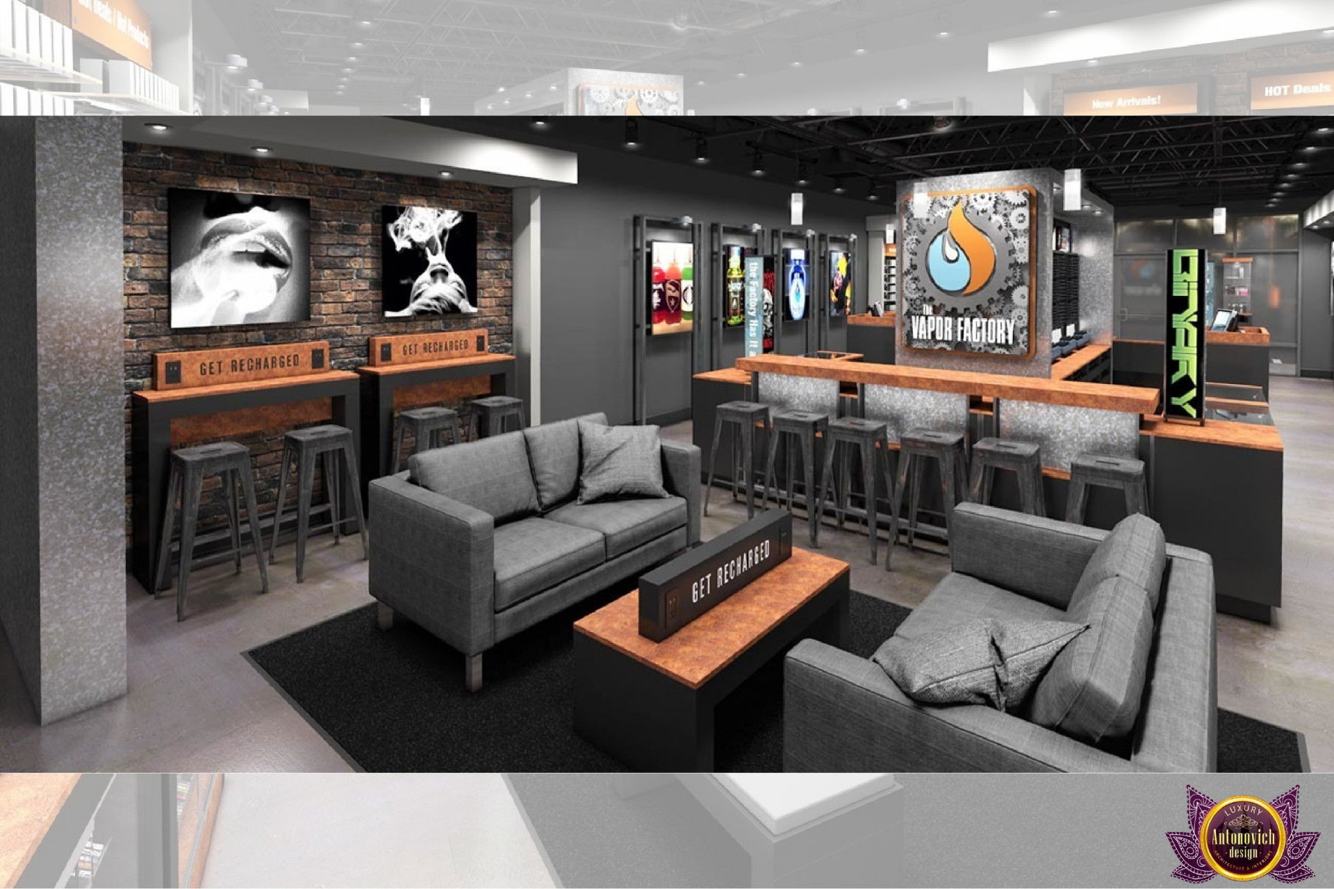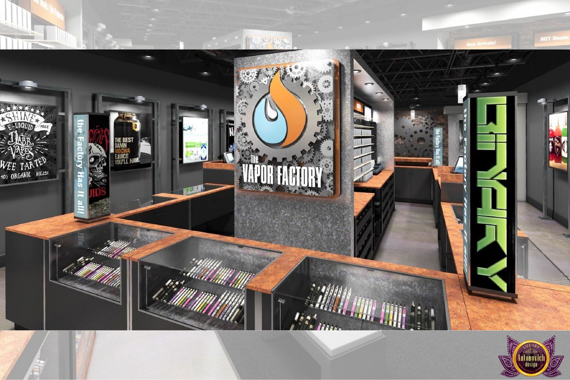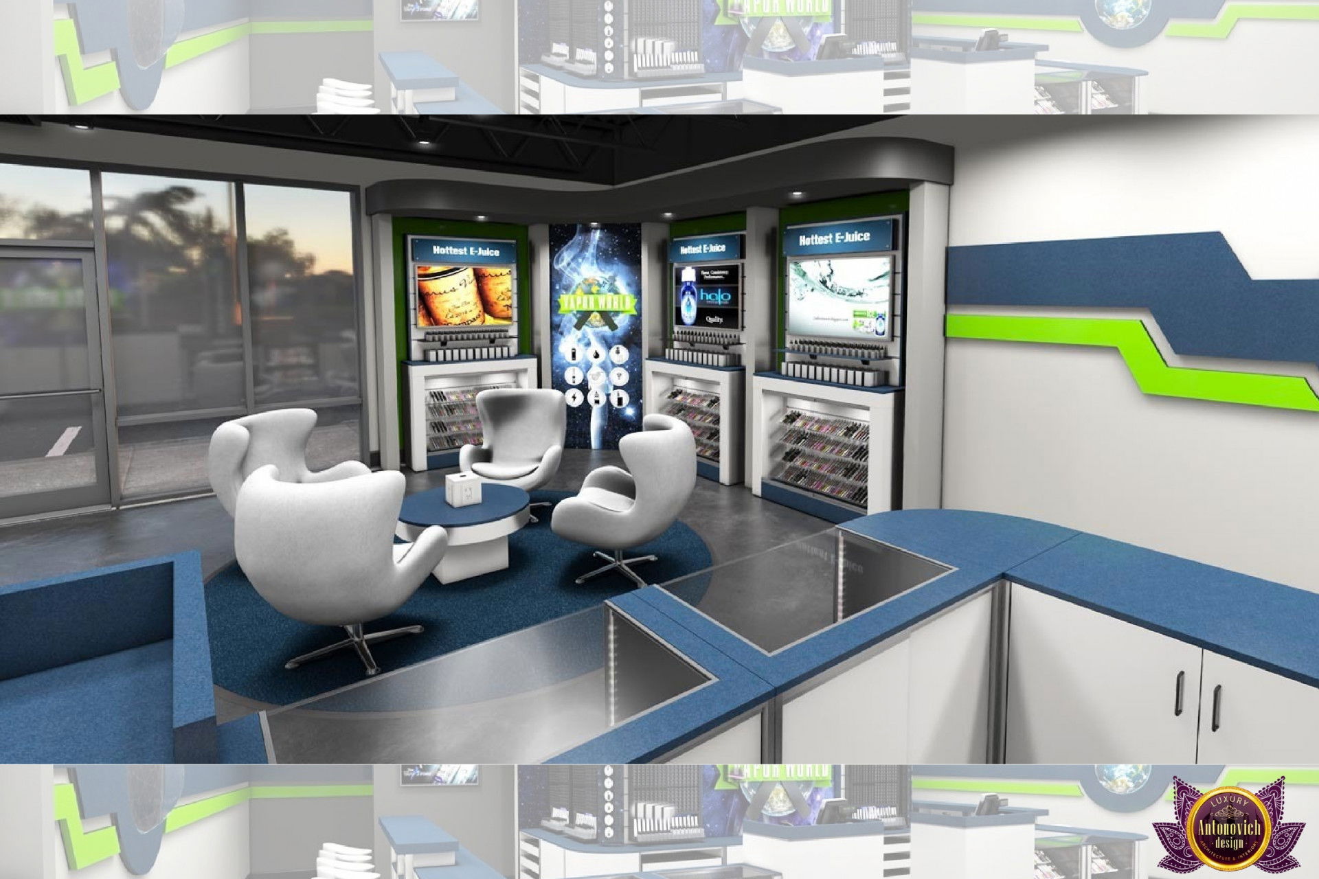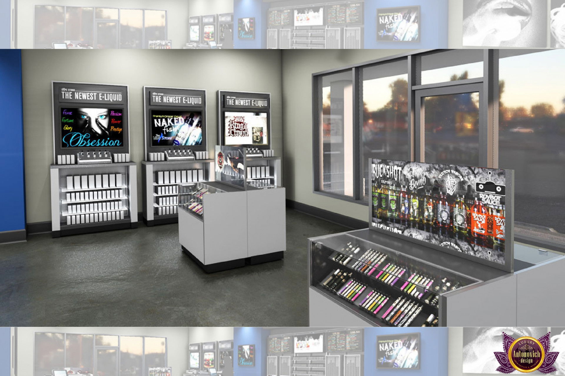 От концепции до завершения мы предоставляем широкий спектр услуг по фит-ауту для розничных магазинов. В этой статье Antonovich Group (Антонович Групп) с гордостью представляет вдохновляющий дизайн интерьера вейп-шопа. Мы предлагаем как пакетные решения, так и отдельные услуги; наиболее экономичным вариантом выступает ремонт под ключ вейп-шопа, когда стоимость материалов и работ оптимизирована за счёт комплексного подхода.