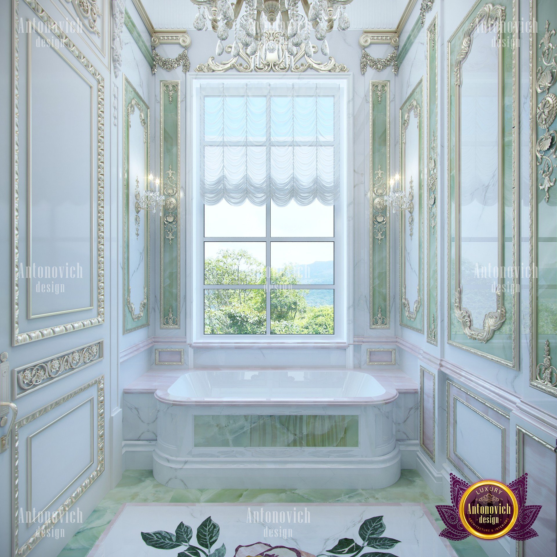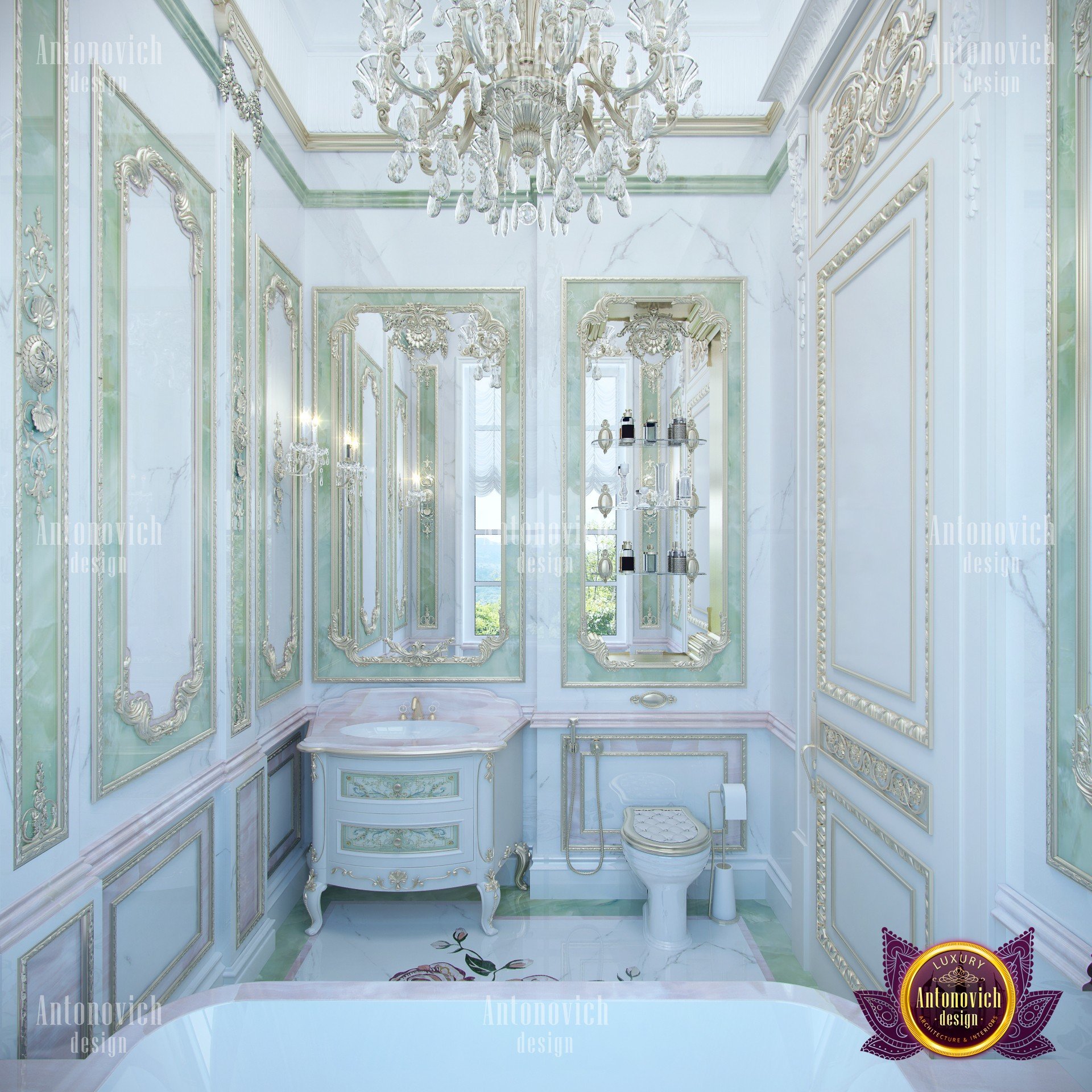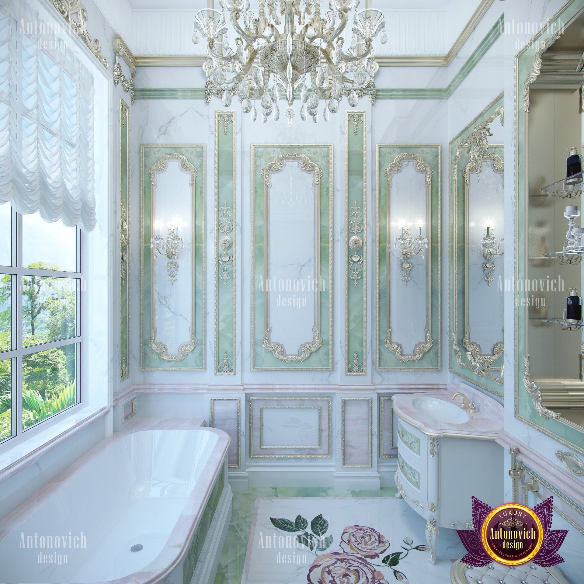 The luxury bathroom interior design also includes enough lighting. The wall lights, as well as the chandelier, are highly unusual, making this luxury bathroom interior design absolutely noteworthy in terms of style, arrangement, and design. Overall, the luxury bathroom interior design is really attractive, especially with the addition of the plants that the firm has included.