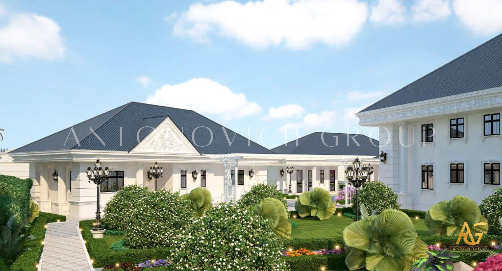 The architecture of a palace in Brunei occupies a very large area of the site, so it requires a very detailed design, from the planning, organization of the work to the implementation of each project. The details of the exterior are shaped with the greatest artistic creativity and style, which comes from the most detailed carving and plaster design. Luxury Antonovich Design always ensures systematic planning and execution to achieve the most luxurious architectural design. Luxury Antonovich Design always brings to life the majestic design of the exterior, especially the entrance area and main doors. Every column, pillar and exterior plaster work is filled with the most artistic design by the most skilled and professional artists with all the capabilities to create the most outstanding finish. As with the interiors of the villas and palaces in Brunei, the architectural design and landscaping is done with the utmost care, which is the responsibility of the most experienced and professional team.