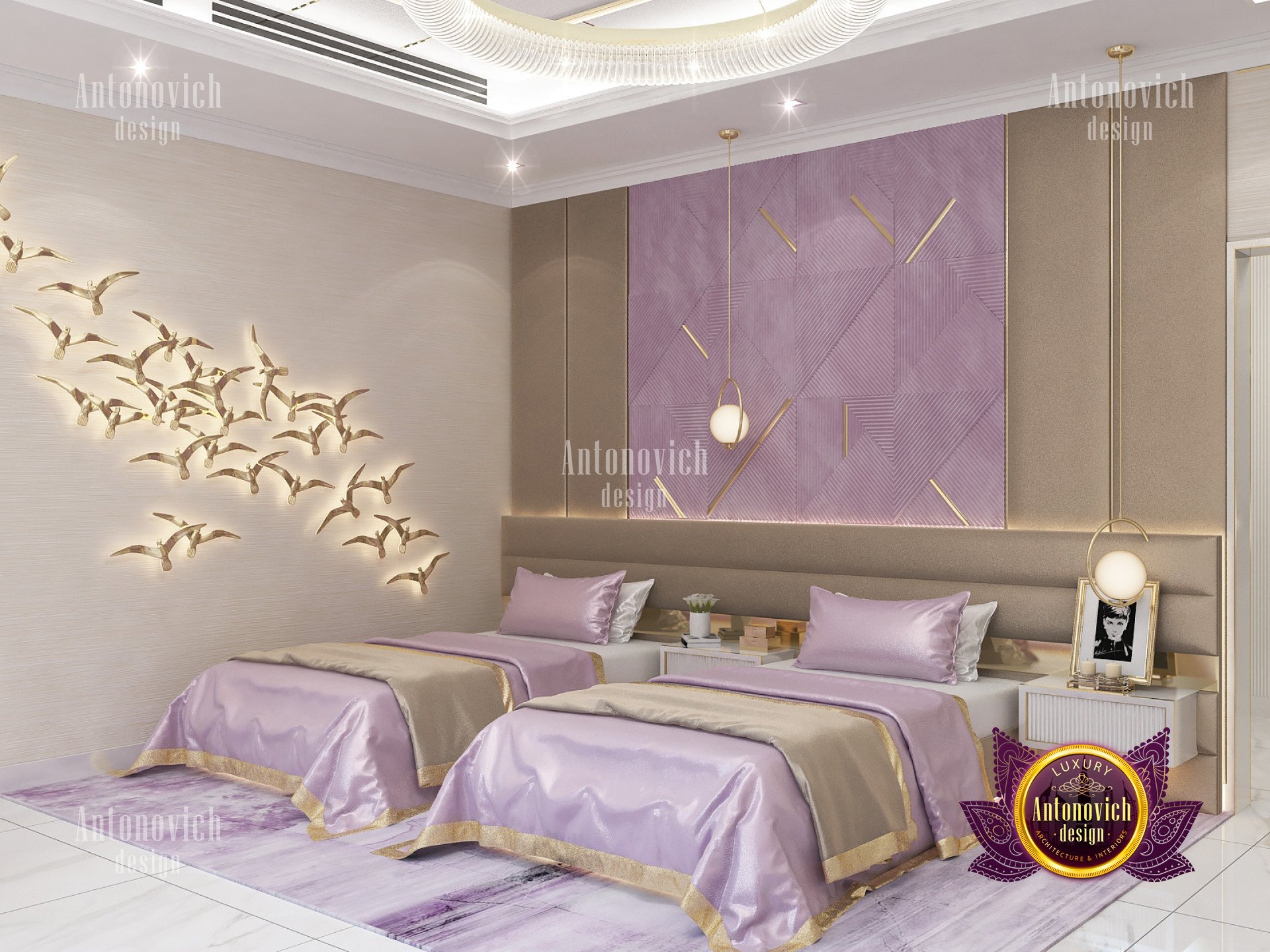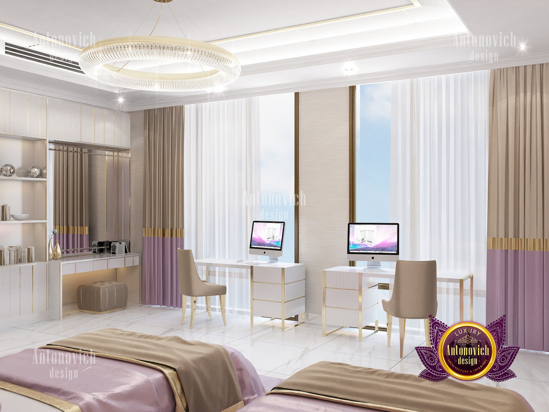 Setting up a twin-style bedroom is usually being conducted for guest bedrooms. Setting up twin beds is such an ideal choice to perform for the sibling’s fairytale interior design concept. Aside from having the most functional interior setting, The bedroom achieves the most desirable fairy tale theme as it has a very spacious and calming atmosphere. With great professionalism and creativity, Luxury Antonovich Design always succeeds in bring every dream interior design to reality. And since that this bedroom interior design is for siblings, they will surely enjoy the great times together that will surely preserve their closeness together.