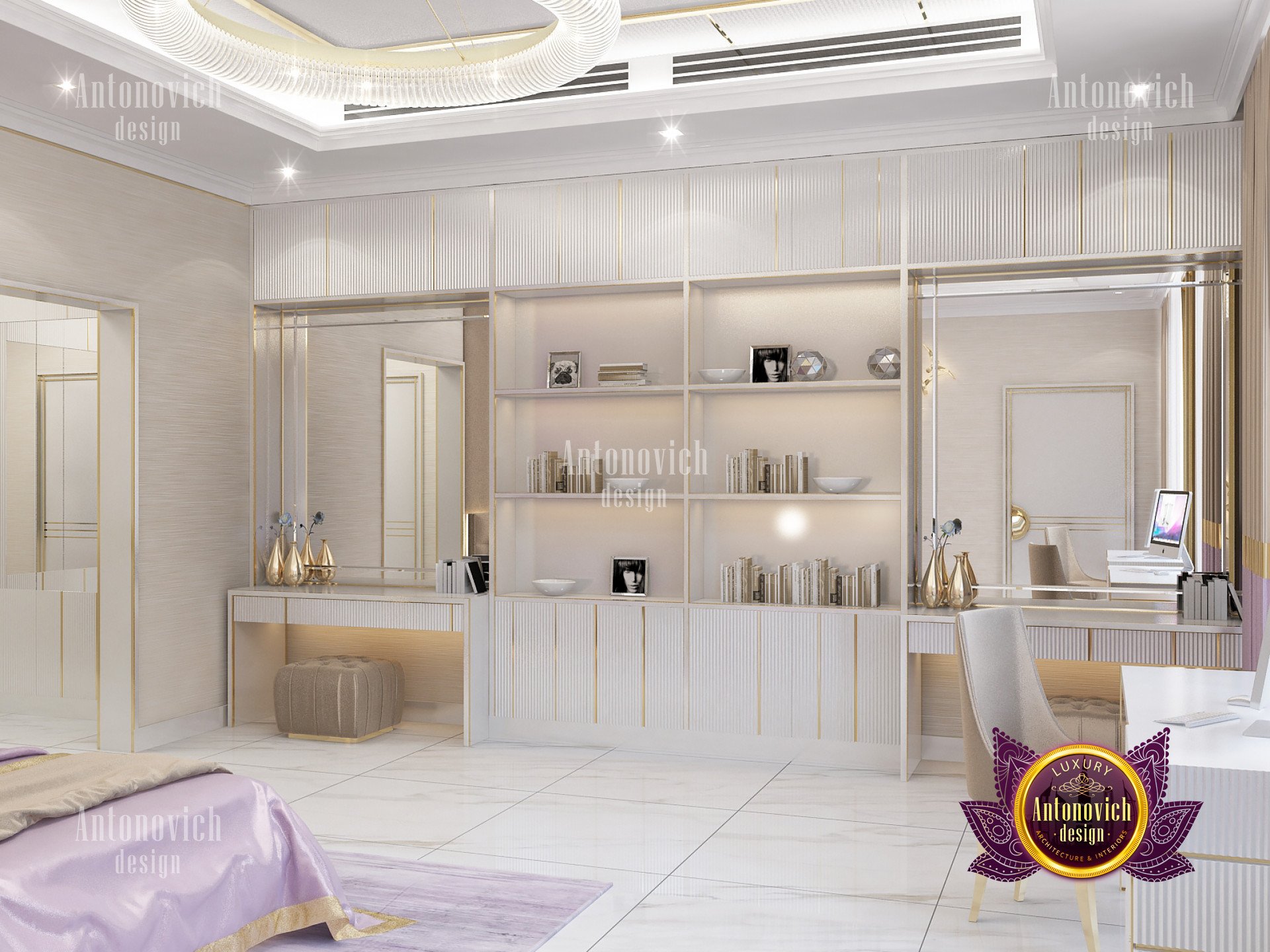 Luxury Girls’ Bedroom Design with Dressing Room and Bathroom Interior by Antonovich Group Creating a luxurious and functional bedroom for young women requires a...