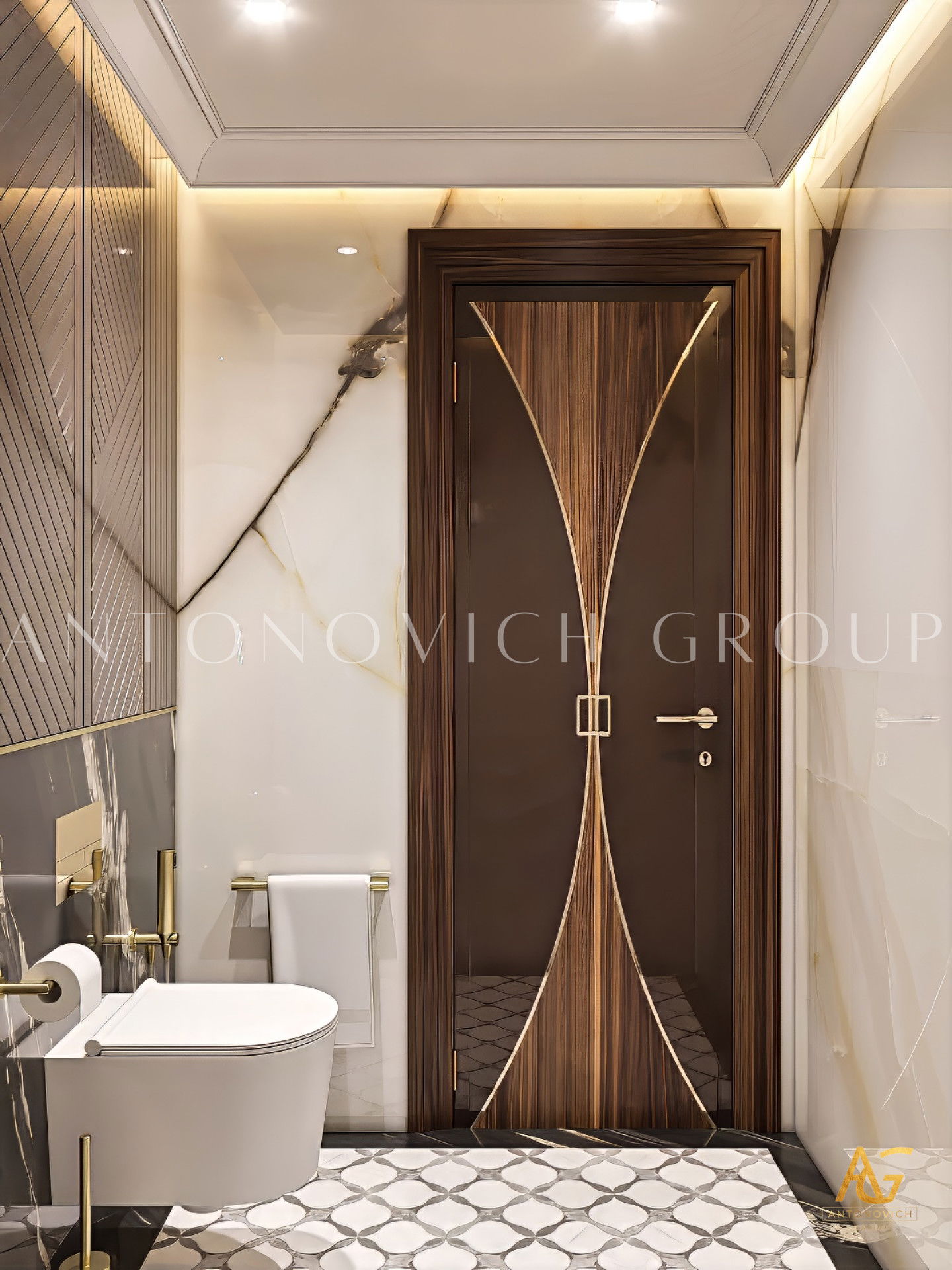 Luxury villa bathrooms deserve exceptional material selections. Antonovich Group uses top-quality finishes such as natural marble, sleek porcelain, brushed metal accents, and custom cabinetry. These materials bring a modern yet warm character, elevating the entire ambiance.