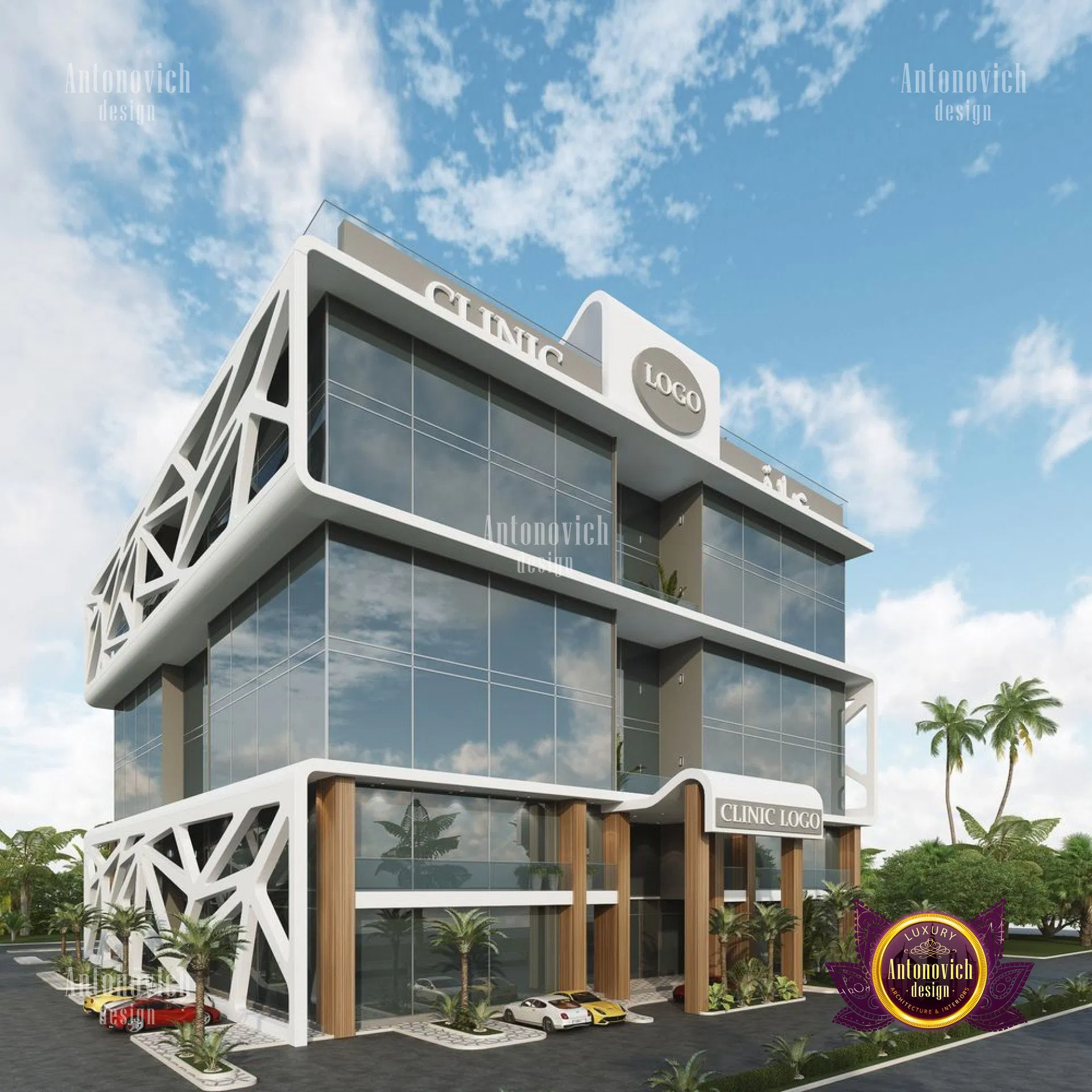 Clinical buildings don’t have to be too serious and boring. In Luxury Antonovich Design, we take every project, be it a retail building, a luxury home, or a medical facade, to a magnificent work of art. This new venture by our company is seen as a bold move with its exterior design. To start off, the shape of the overall exterior isn’t the normal ones you see in the city. We took a different approach and created a masterpiece of the modern and contemporary style of buildings. If you are into the minamalism yet creative way of style then you will surely love our design. You can feel like you are in an extravagant hotel with the magnificent exterior design of this clinic. The clinic has an “S” shaped form with patterns that are very modern and trendy. It is perfect for luxury check-ups and high-class medications. Be amazed by its dazzling window display as it sets the mood of the building. You wouldn’t feel like you are in a clinic because of its magnificence and loveliness.MODERN EXTERIOR DESIGN