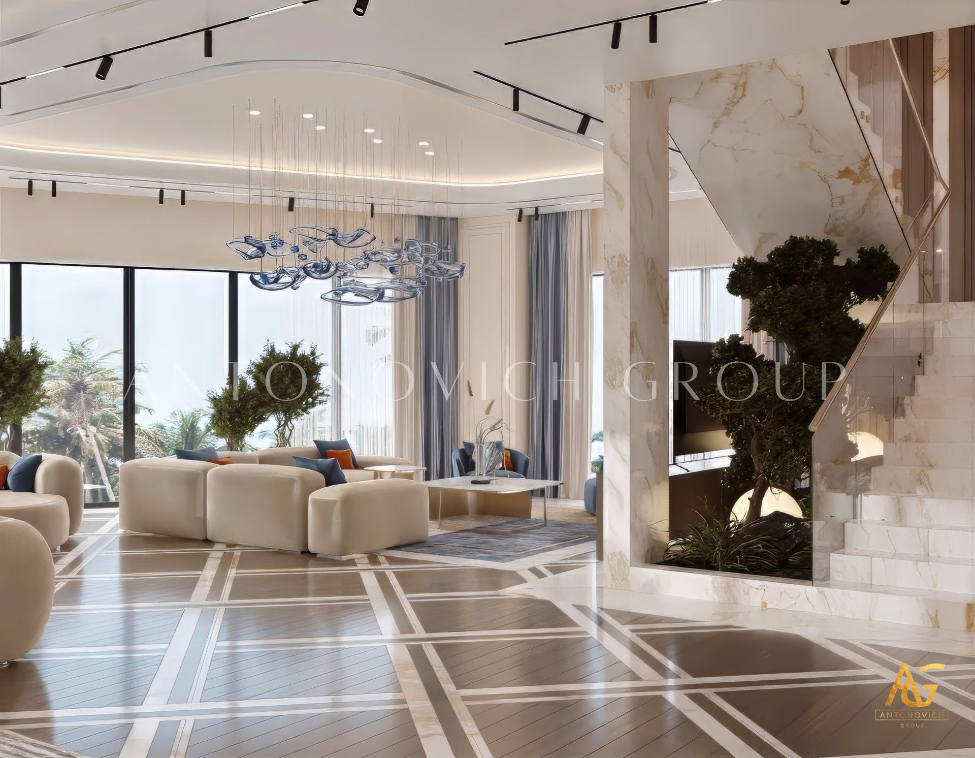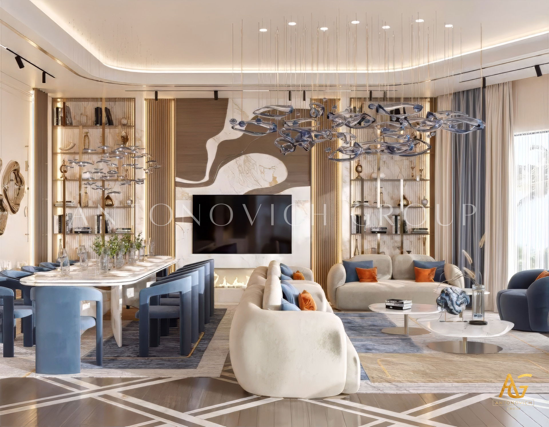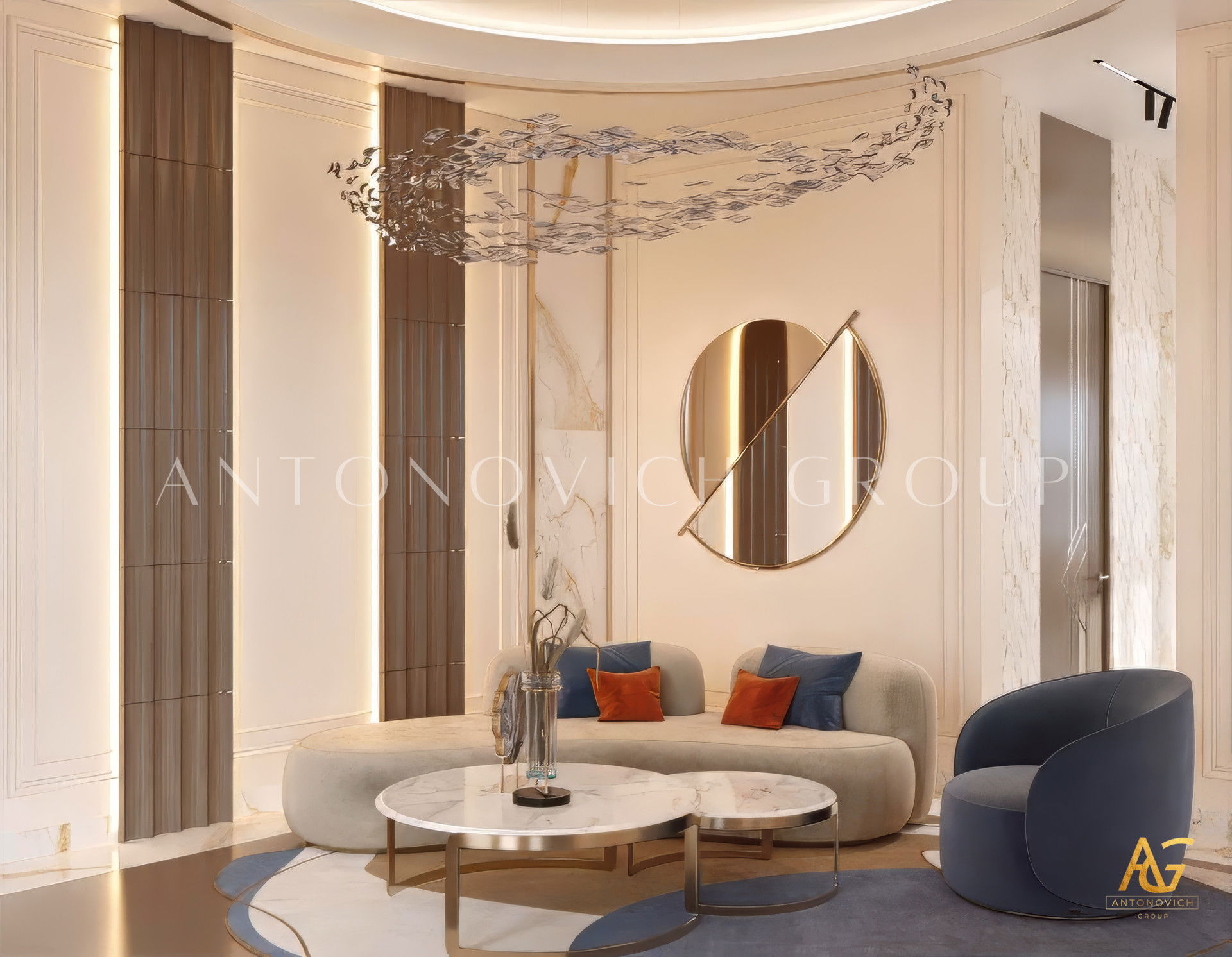 Spacious Gold and White Luxury Sitting Interior Design