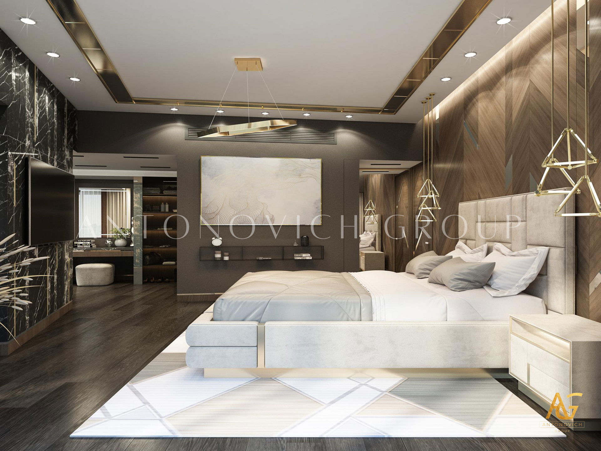 Luxury bedroom interiors by Antonovich Group feature only the finest materials and finishes. From Italian marble flooring and handcrafted wooden furniture to plush velvet upholstery and crystal chandeliers, every detail is carefully selected to enhance the elegance of the space. Whether designing a lavish master suite or a stylish guest bedroom, Antonovich Group ensures that every material used reflects opulence and durability. Maximizing space without compromising on style is a key aspect of Antonovich Group’s approach. Their expert designers create smart layouts that optimize storage, enhance natural light, and maintain a clutter-free environment. Walk-in wardrobes, built-in shelving, and multifunctional furniture are seamlessly integrated to provide both convenience and luxury.