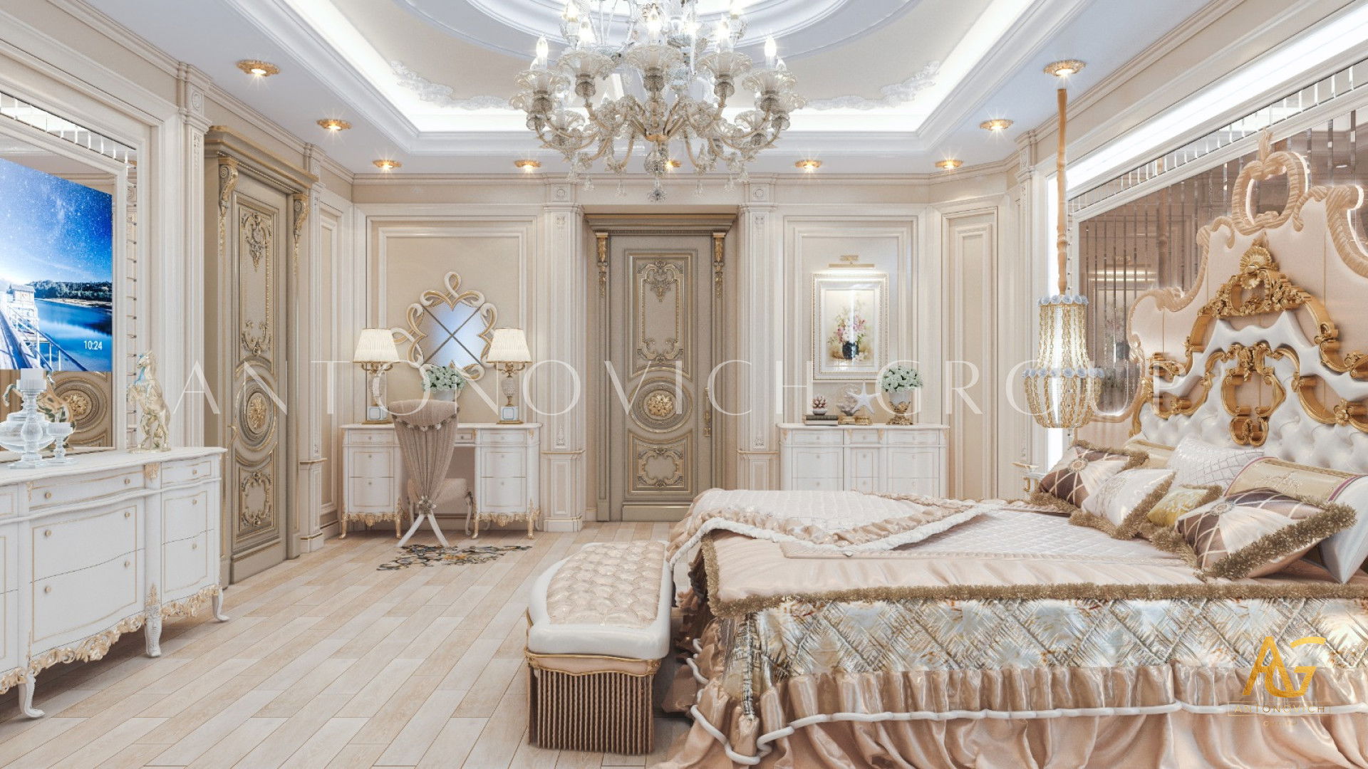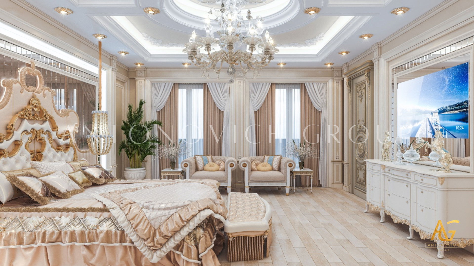 You will surely love the furniture we put in this design! For the furnishings; great examples and subtleties over current inside components to give only the perfect measure of that lavish customary feel. The dividers have embellished brilliant examples that are many-sided and very much organized. The designed dividers go past the whole room, giving a 360-degree extravagance feel for the property holders. The tremendous space can't be overlooked as it likewise has the most useful subtleties. Seats and tables are put into utilization giving the room every one of the things that are required for a couple. This cooperates with immense draperies that can without much of a stretch be independent. It is two-hued and with layers that are lovely and captivating. This technique is what makes Luxury Antonovich Design the most world class in the matter of inside structure. This headboard is intended to be a perfect work of art all alone. A solid shading and sensitive bend settle on this headboard an incredible decision, while studded catch unobtrusive components to shield it from looking excessively plain.