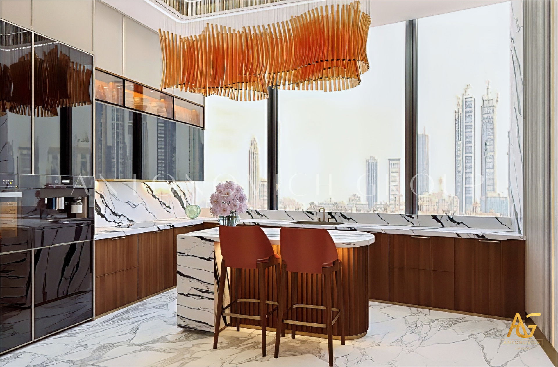 The walls in this luxury kitchen interior design are also superbly beautiful. They are not left unnoticed as Luxury Antonovich Design has made sure that the entire walls will have its own characteristics and personality. The luxury kitchen interior design also has a huge flooring which has an amazing pattern. The overall finish of the luxury kitchen interior design is beyond beautiful.