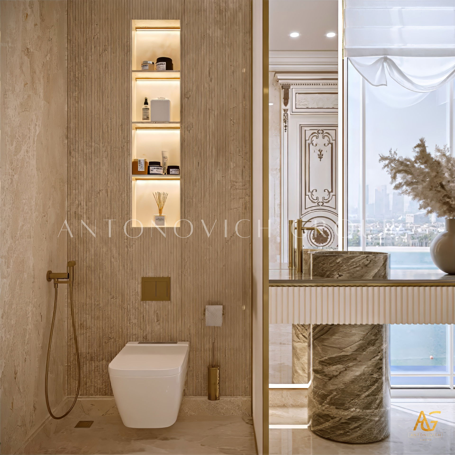 With the perfect calm of neutral hues, this stylish bedroom design for an amazing villa in Dubai has been very well executed which is indeed an execution with the best interior design in Dubai. Every furniture design, decoration, and bedroom accessories have the finest touches of elegance representing the owner’s favorite luxury brand. Even in every wall detail, bedsheets, cushion, carpet, and bed bench have a great presence of luxuriousness and sophisticated style. This stylish bedroom design for an amazing villa in Dubai was indeed another remarkable design that the Luxury Antonovich Design has been executed. Luxury Antonovich Design was truly the best company that will consistently bring out the best interior design in Dubai and all over the world.