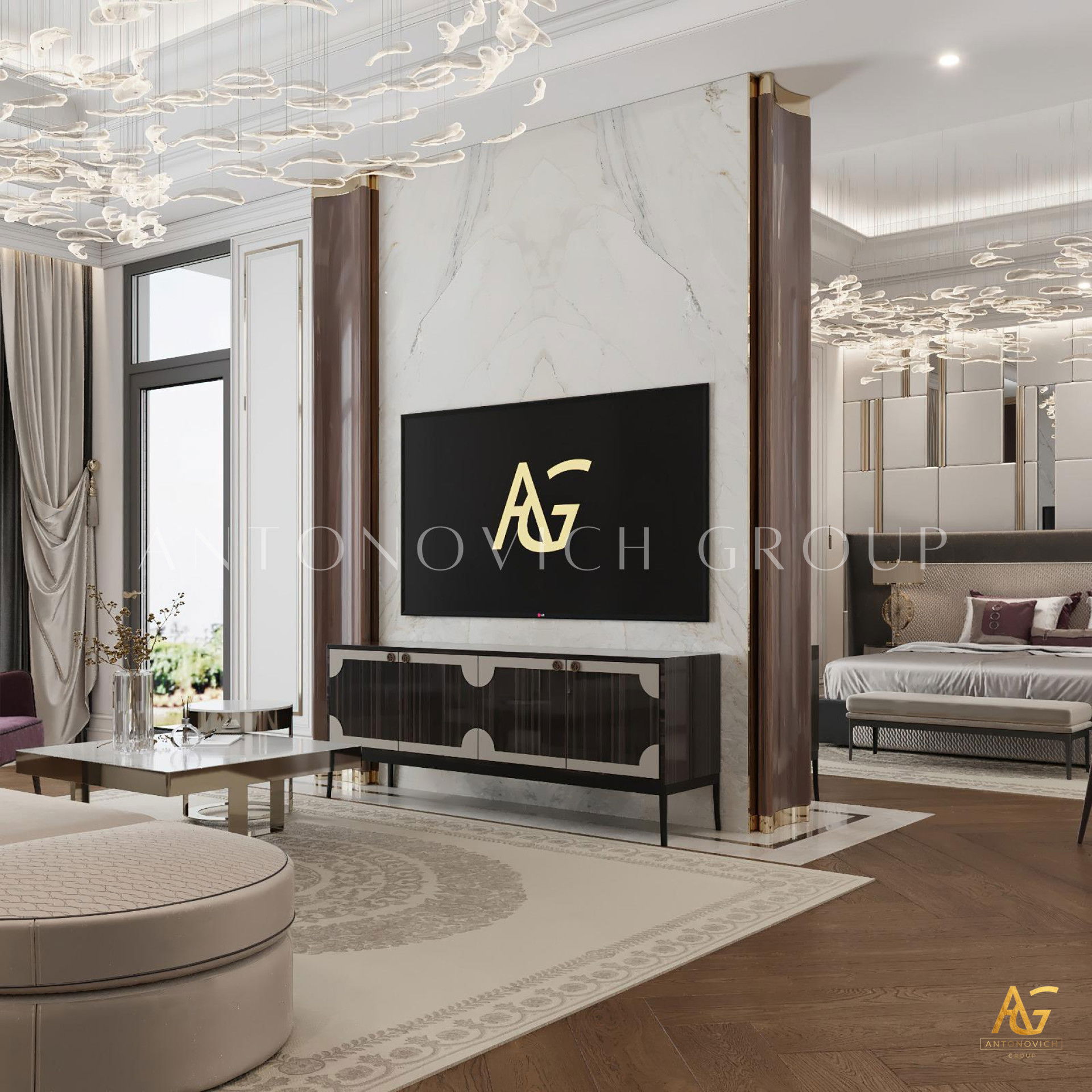 Antonovich Group seamlessly blends modern design principles with luxurious detailing, resulting in bedrooms that exude sophistication without compromising on comfort.