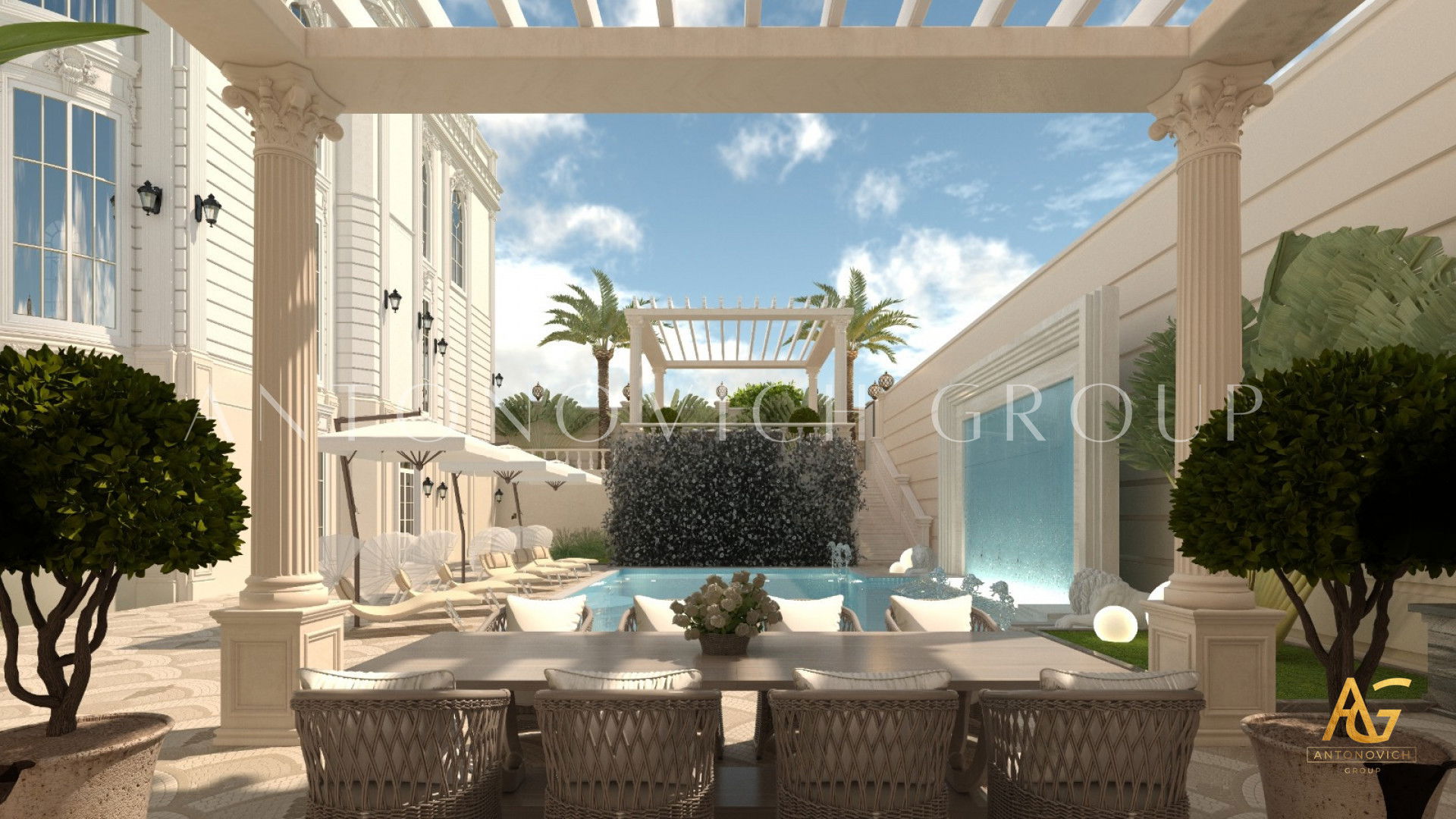 Antonovich Group’s approach to classic villa exterior design embodies a perfect fusion of traditional architectural elements and modern innovations. The meticulous attention to detail can be seen in every facade, column, and balcony. This is achieved through expert coordination between their construction and fit-out contractors, who work seamlessly to ensure that every project meets the highest standards of luxury.