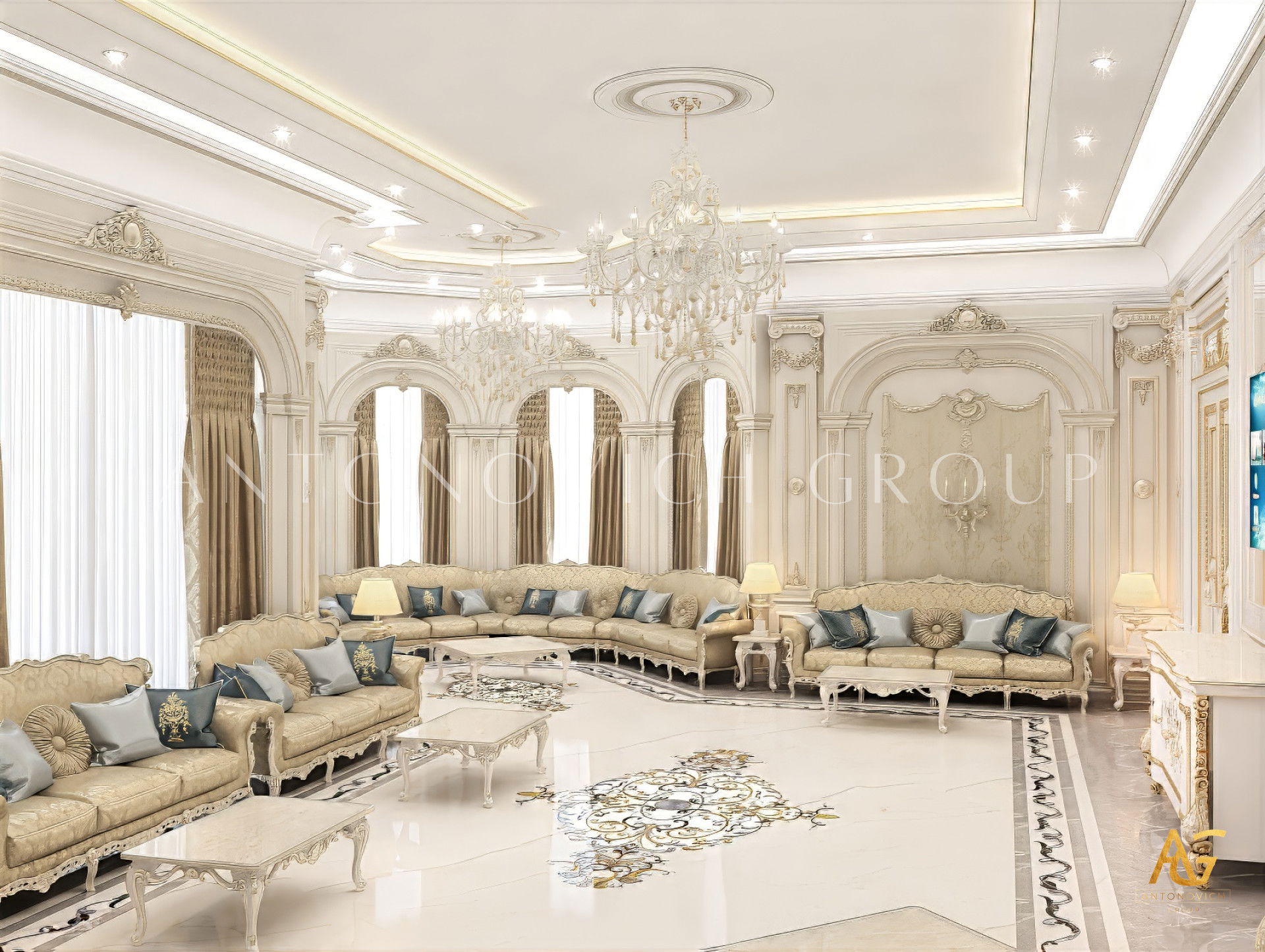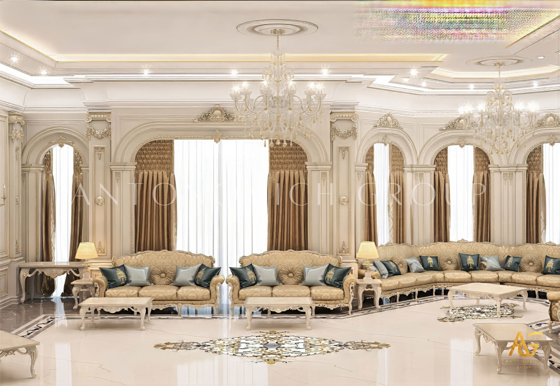 - Custom-made sofas and seating layouts, designed for both comfort and grandeur.