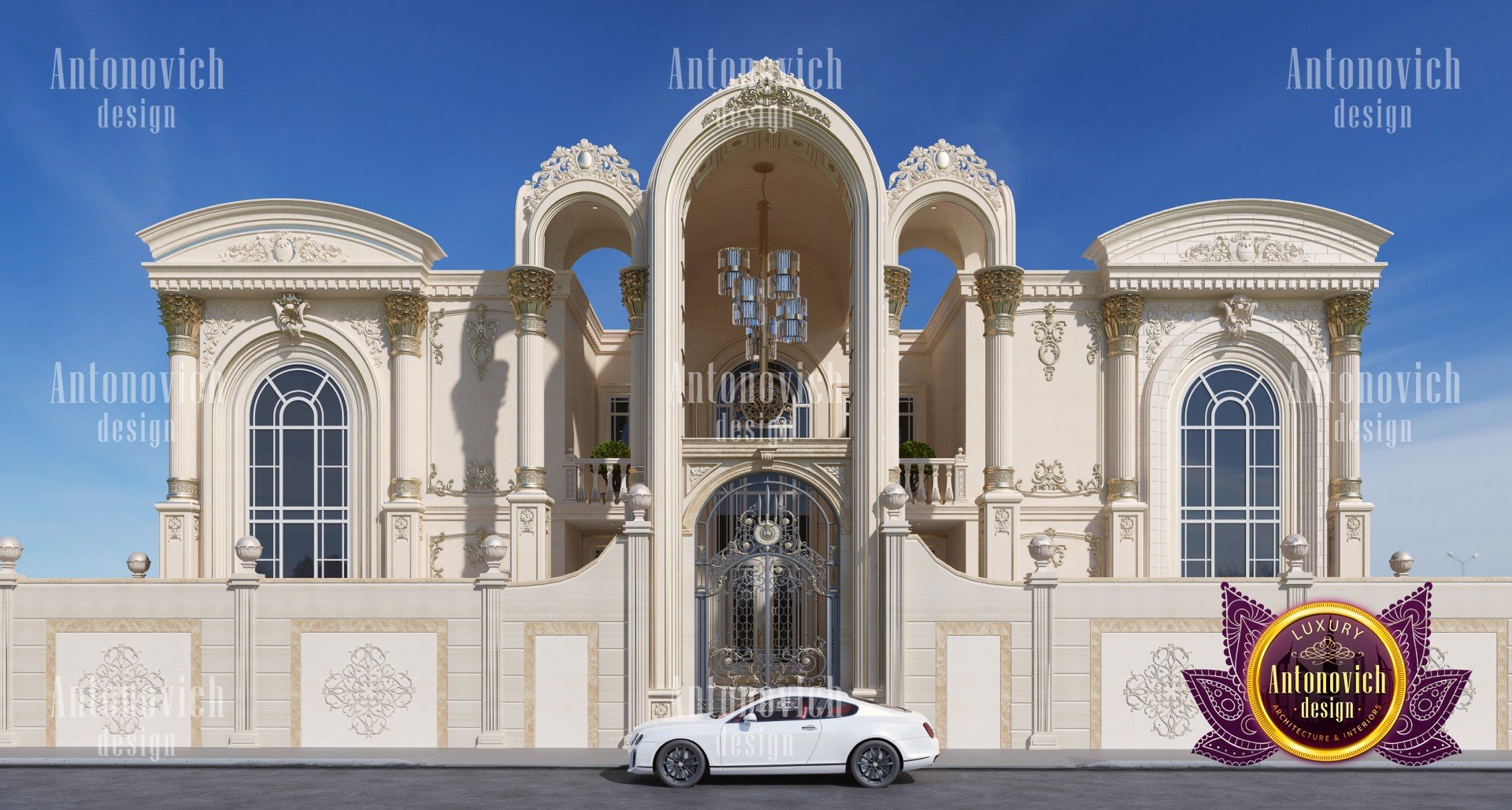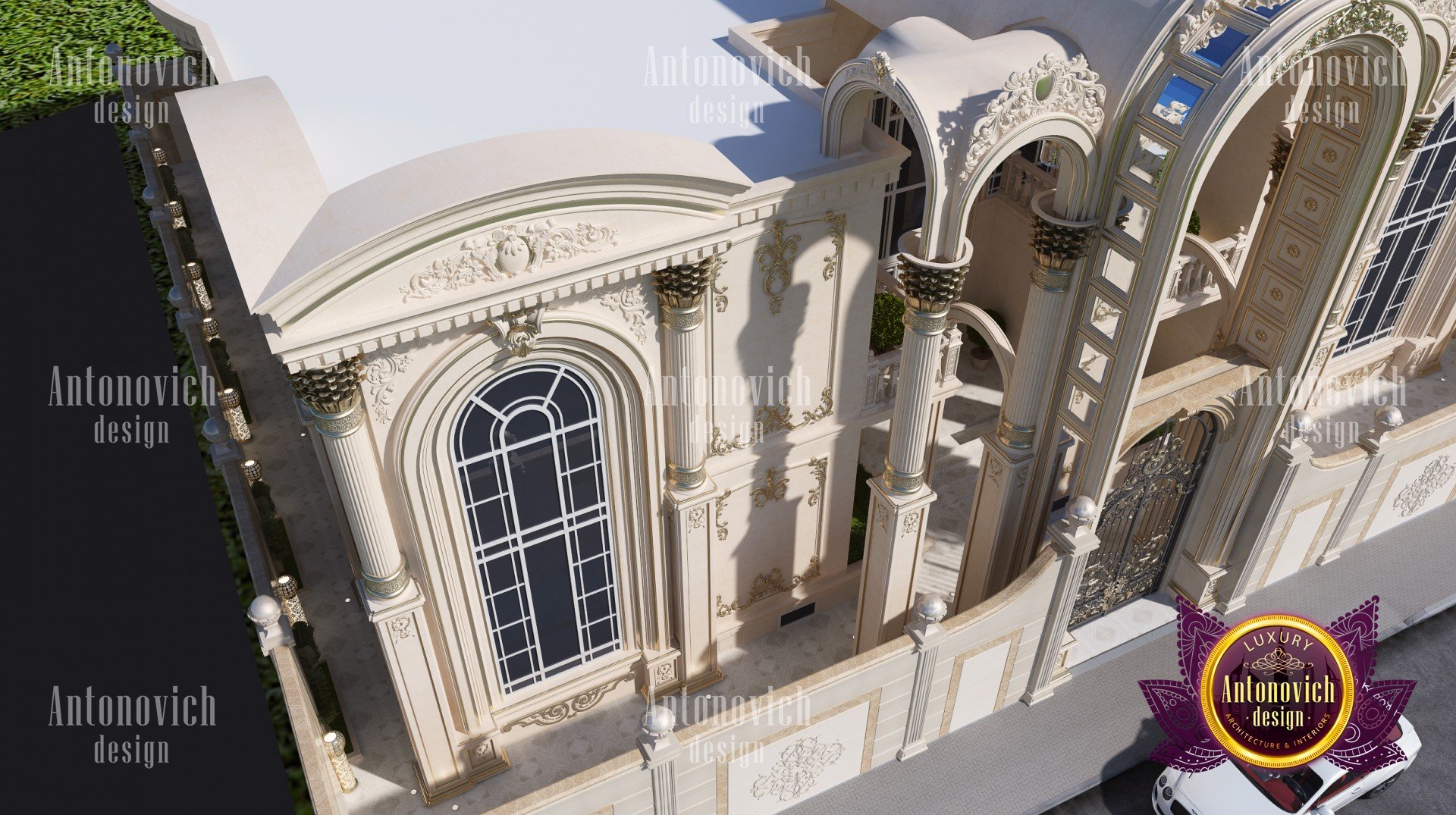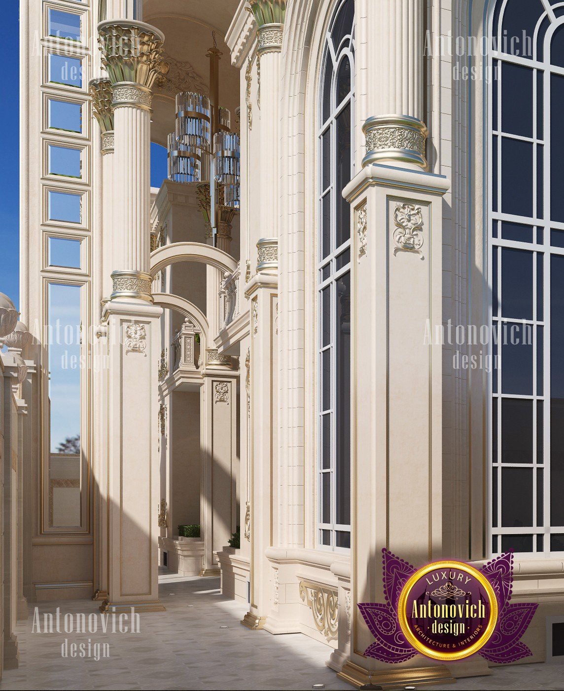 Contemporary architecture in each country assumes its own characteristics, in accordance with the culture and fashion trends. This villa exterior in Abuja, Nigeria reflects a spirit of colonial classics. Architectural designs by Luxury Antonovich Design Studio becomes a reflection of global trends. And a classic style is still the best way to emphasize aristocracy of the house owners. This architectural design became a creation of a modern palace with a luxurious landscaping. An expressiveness of the building is based on a harmonious combination of architectural elements, as well as a stylish contrast of a black roof and light facades. The exterior was decorated with pilasters, moldings, elegant columns, balustrades, and other charming details, just In the best traditions of the classic style with elements of Baroque. Entrance portals of the building are decorated with open terraces with marble staircases. The architecture design impresses with luxurious forms, composition, expressiveness and modern luxury. A laconic continuation of the exquisite exterior is the landscaping. Small architectural forms and sculptures became a big part of the landscape design. Luxury gazebos near artificial ponds are designed in the same style as the building itself. The main part of the building exterior is an entrance gate. This part of the project has a special meaning, setting the tone of respectability and gentility.