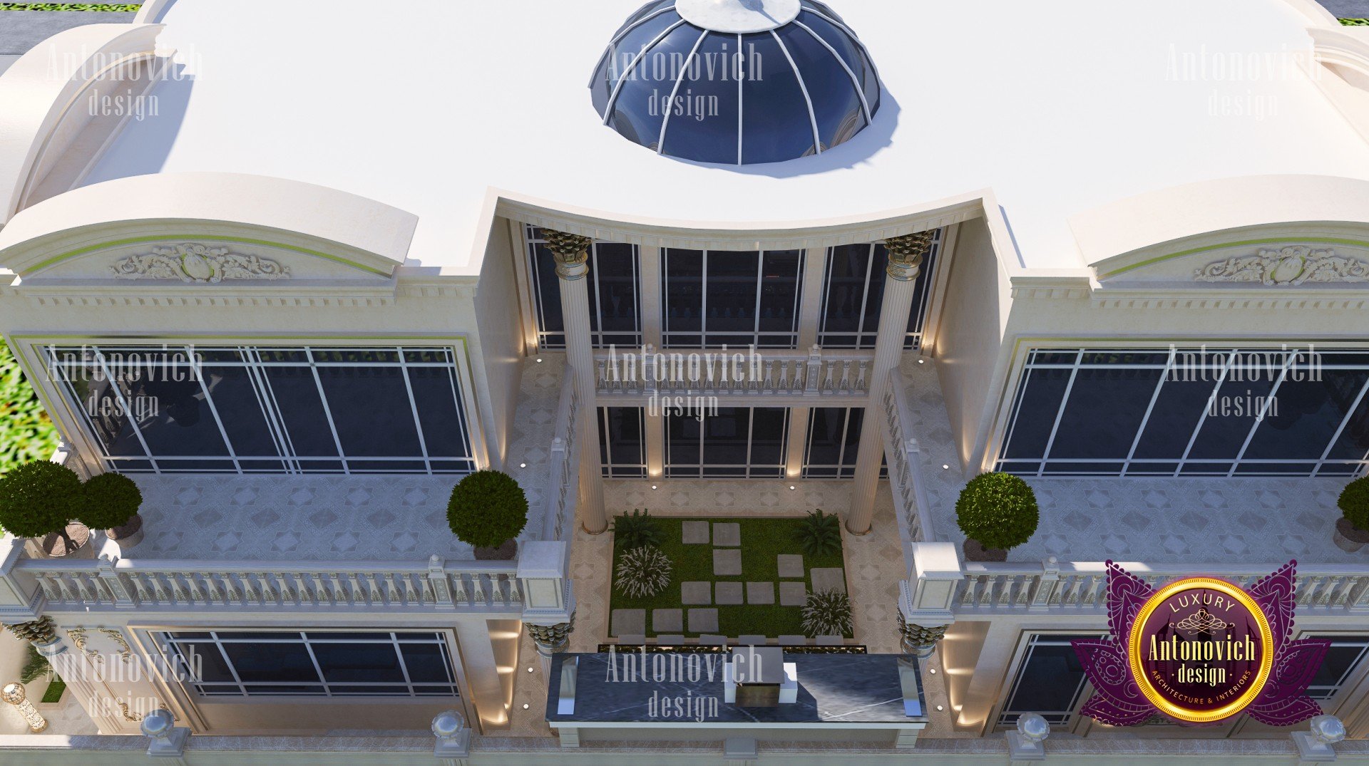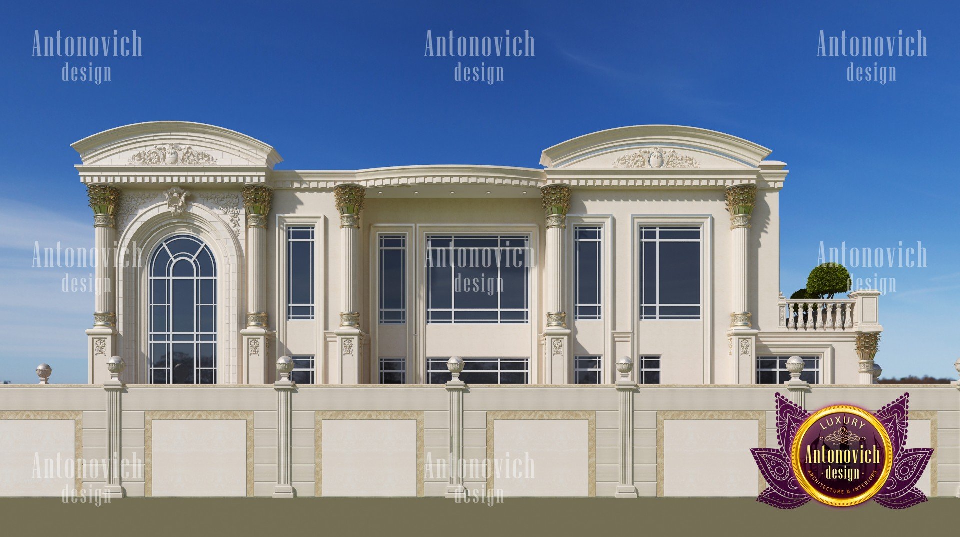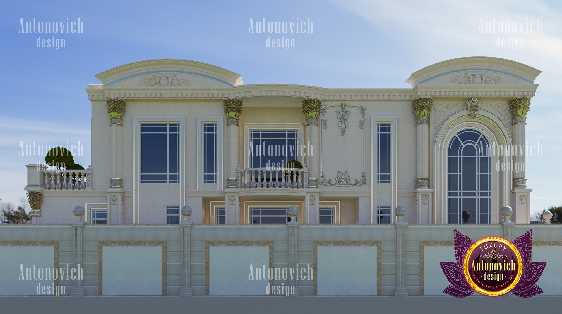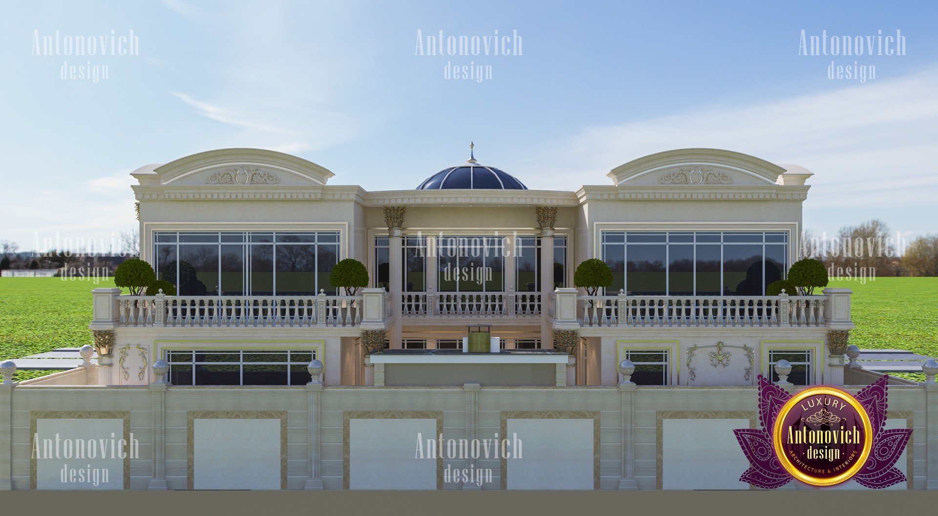 Contemporary architecture in each country assumes its own characteristics, in accordance with the culture and fashion trends. This villa exterior in Abuja, Nigeria reflects a spirit of colonial classics. Architectural designs by Luxury Antonovich Design Studio becomes a reflection of global trends. And a classic style is still the best way to emphasize aristocracy of the house owners. This architectural design became a creation of a modern palace with a luxurious landscaping. An expressiveness of the building is based on a harmonious combination of architectural elements, as well as a stylish contrast of a black roof and light facades. The exterior was decorated with pilasters, moldings, elegant columns, balustrades, and other charming details, just In the best traditions of the classic style with elements of Baroque. Entrance portals of the building are decorated with open terraces with marble staircases. The architecture design impresses with luxurious forms, composition, expressiveness and modern luxury. A laconic continuation of the exquisite exterior is the landscaping. Small architectural forms and sculptures became a big part of the landscape design. Luxury gazebos near artificial ponds are designed in the same style as the building itself. The main part of the building exterior is an entrance gate. This part of the project has a special meaning, setting the tone of respectability and gentility.
