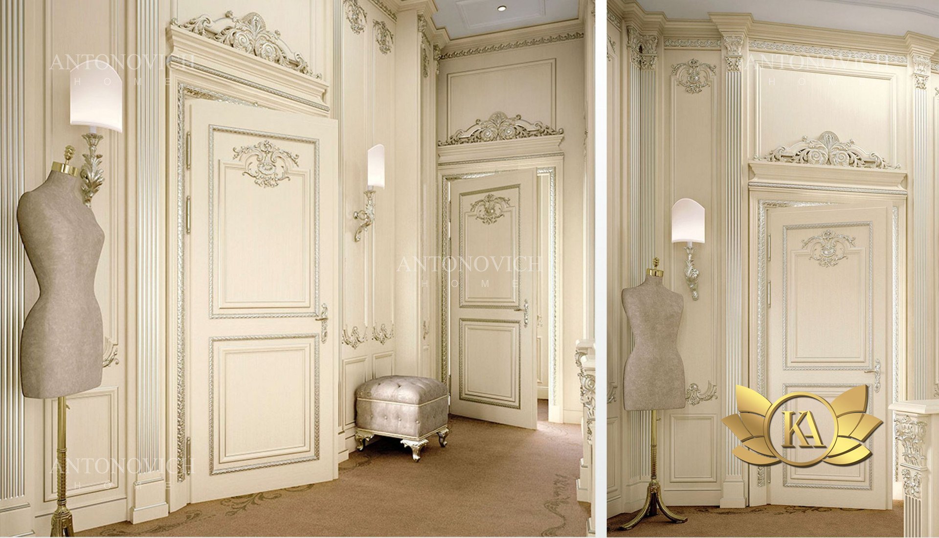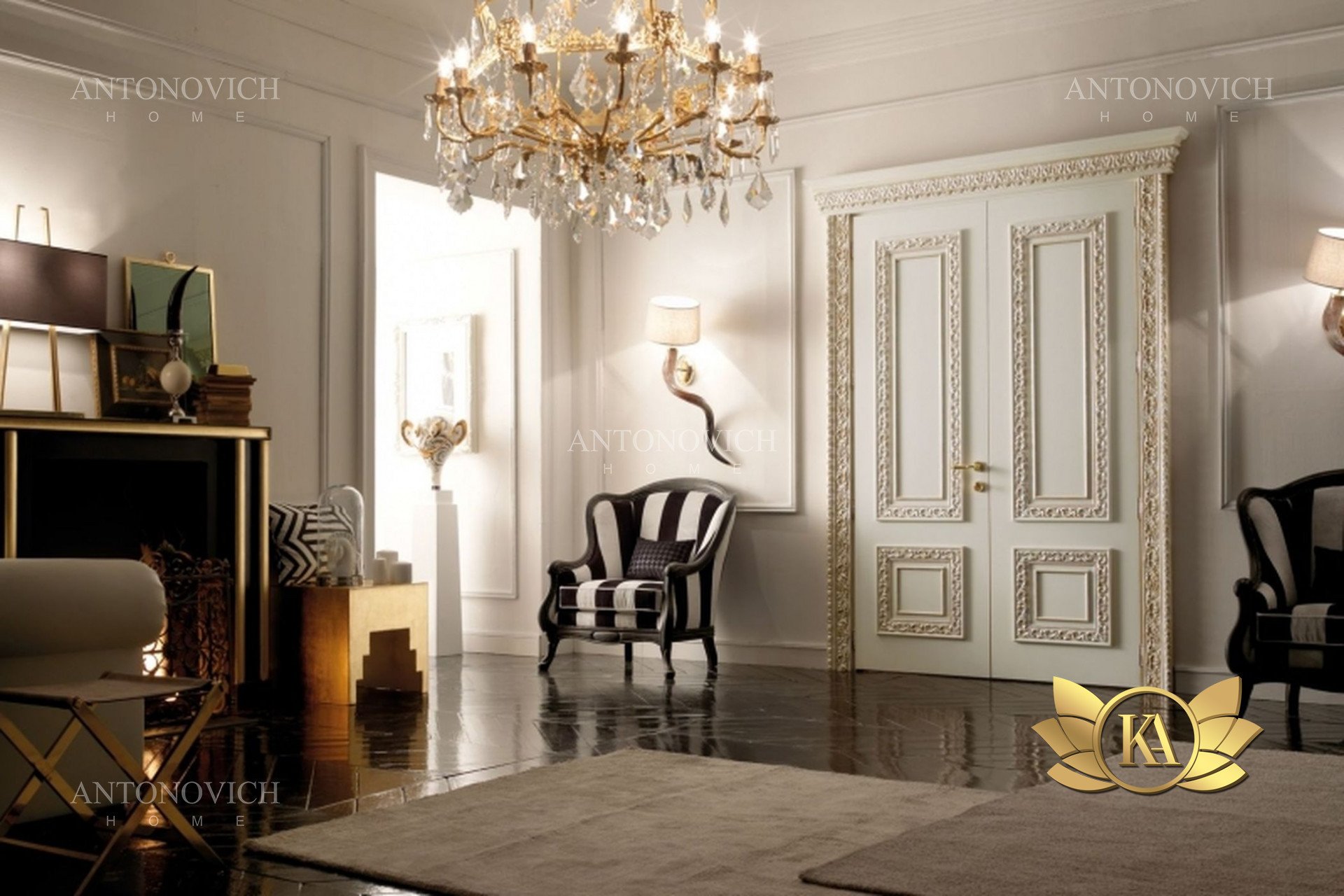 Exclusive wooden door models from Luxury Antonovich Home are flawless in everything. They are made exclusively of natural wood, have the highest performance characteristics and give a luxurious design that you can not resist. Stylish wooden interior doors will tell about your taste, well-being, adding a pleasant impression of your beautiful interior. We offer exclusive original design solutions for any client. Wooden doors of elite class from Luxury Antonovich Design are made only from high-quality wooden material, thoroughly dried in a special way, using high-quality fittings. We make all the necessary measurements, take into account the configuration of the room, carefully select accessories and fasteners. You can order projects of any complexity from us both for new construction and for already existing interiors.